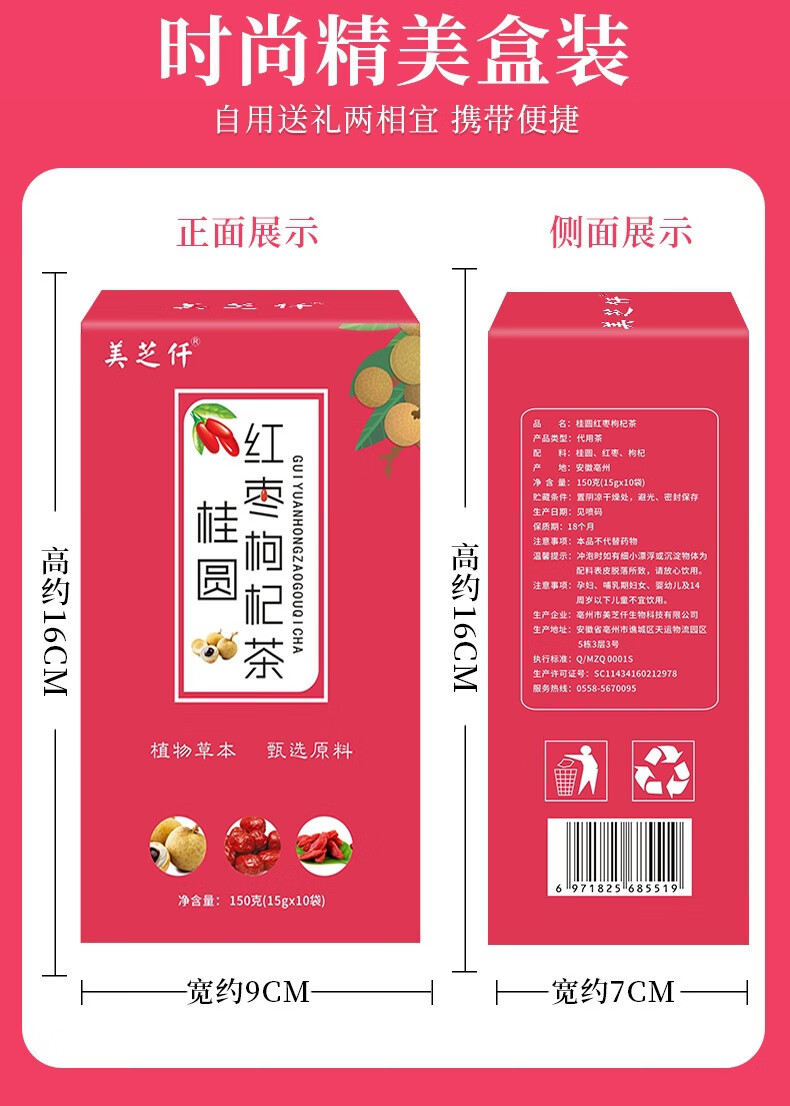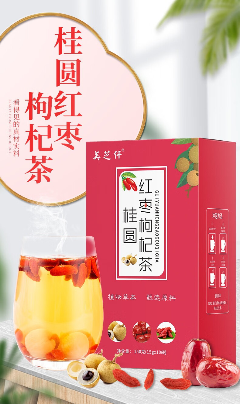 美芝仟独立包装盒装 桂圆红枣枸杞茶 组合茶包 桂圆红枣枸杞茶(15g*10包)盒