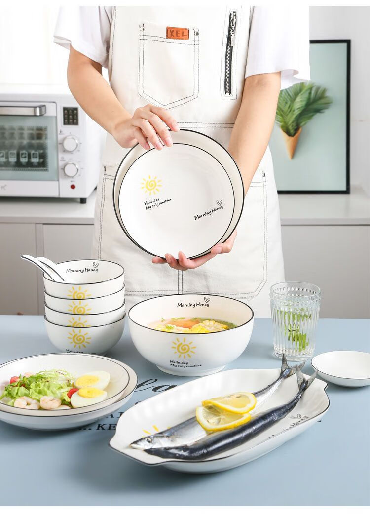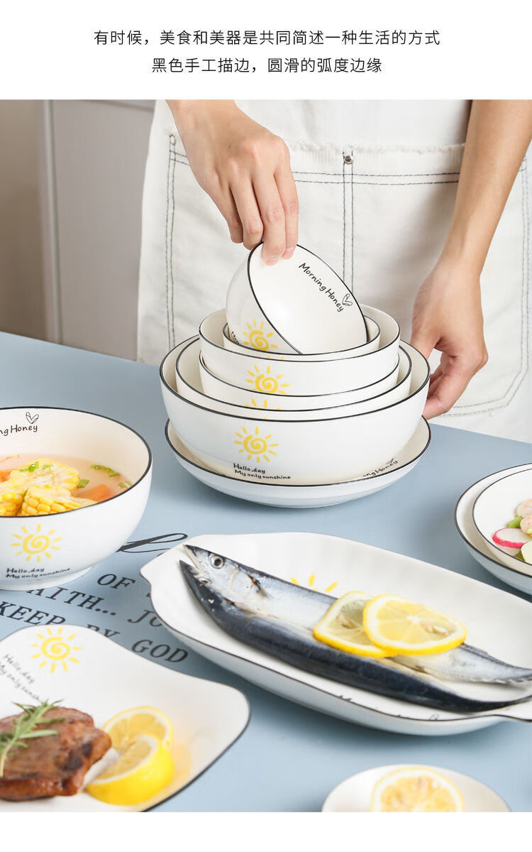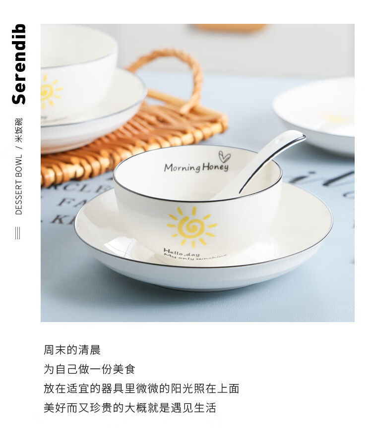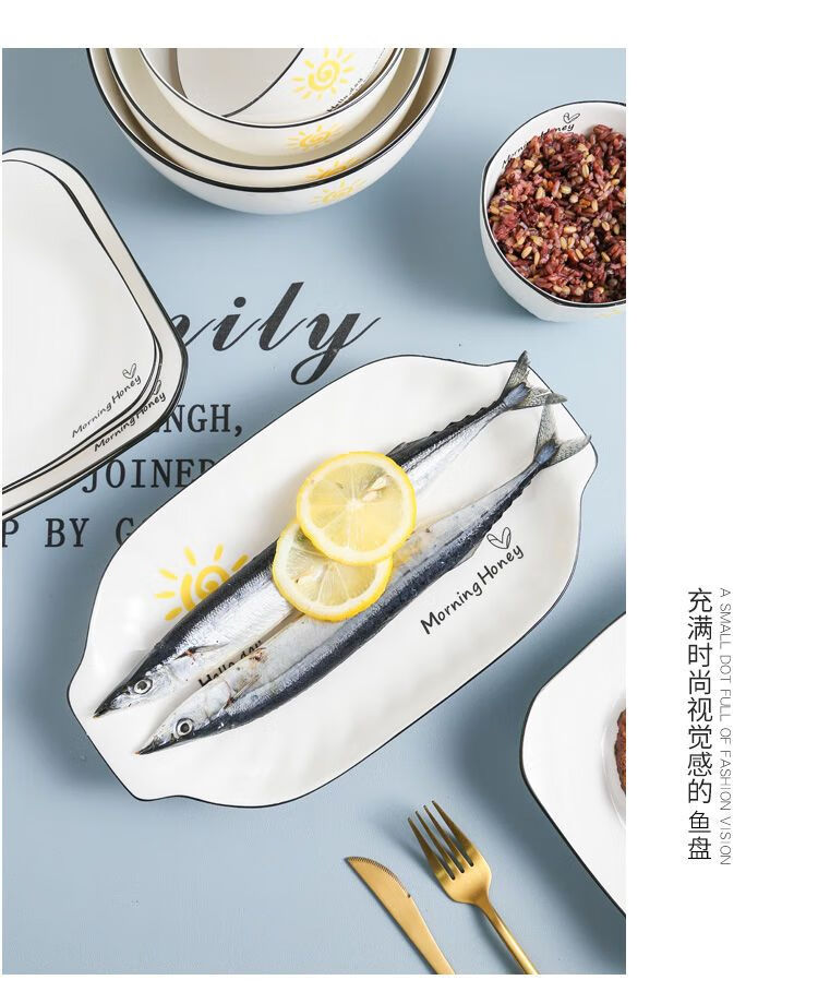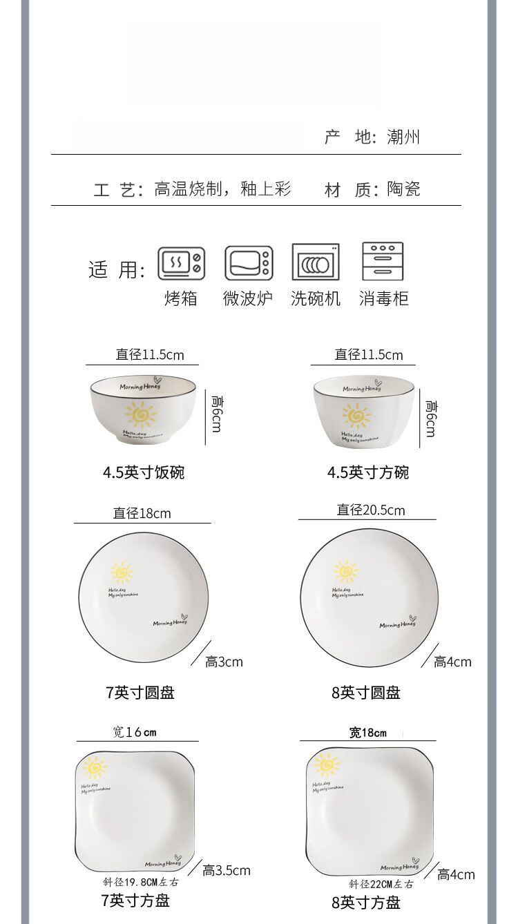LZJV北欧创意餐具家用陶瓷碟子餐盘水果盘方形网红盘子菜盘早餐盘碟子 7英寸阳光圆盘1个装