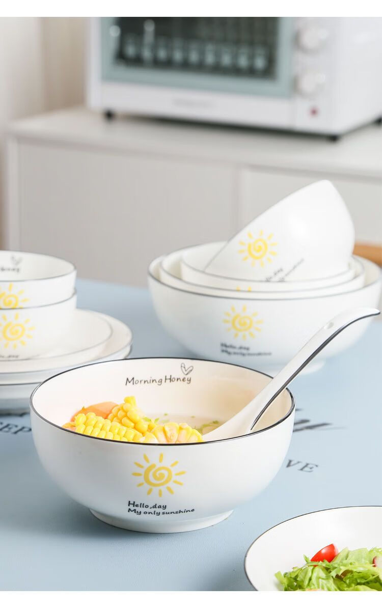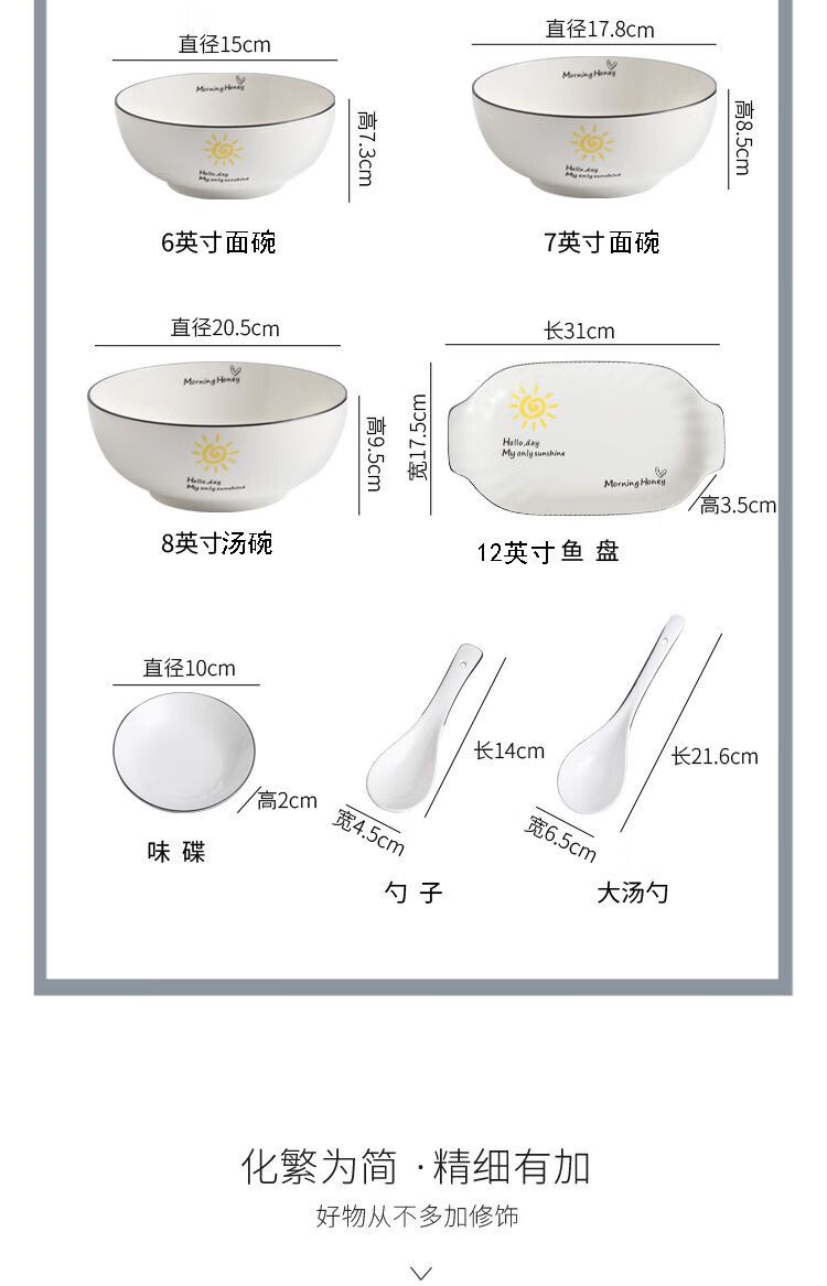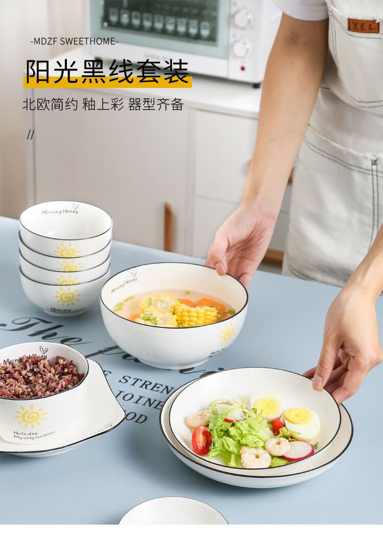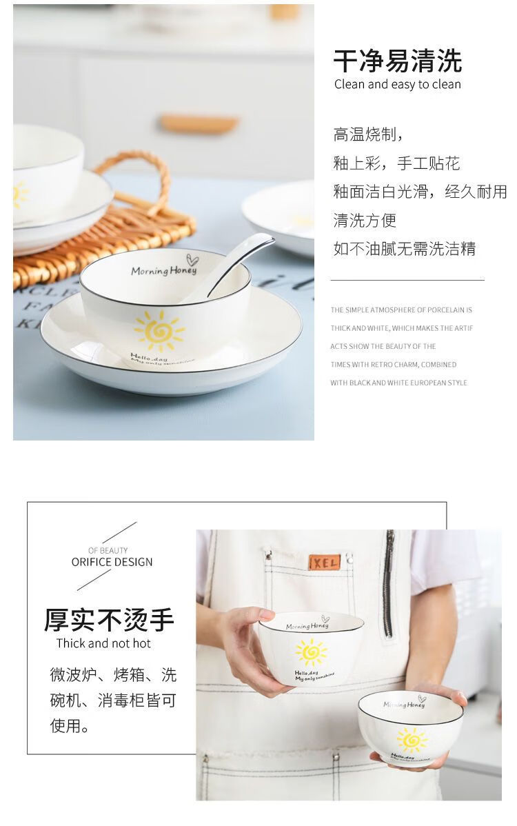 LZJV北欧创意餐具家用陶瓷碟子餐盘水果盘方形网红盘子菜盘早餐盘碟子 7英寸阳光圆盘1个装