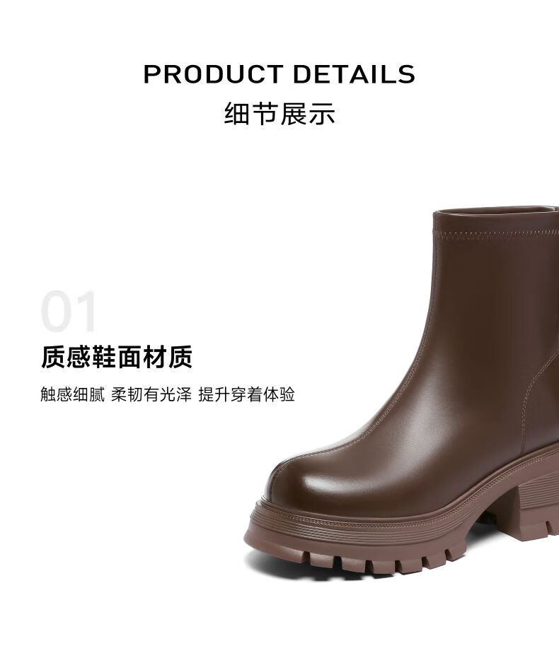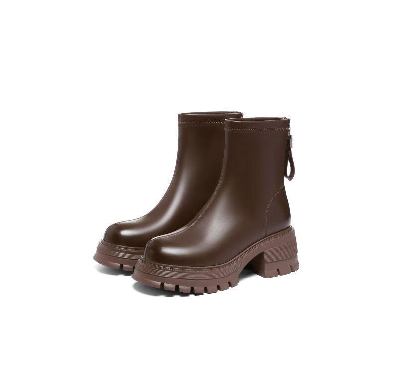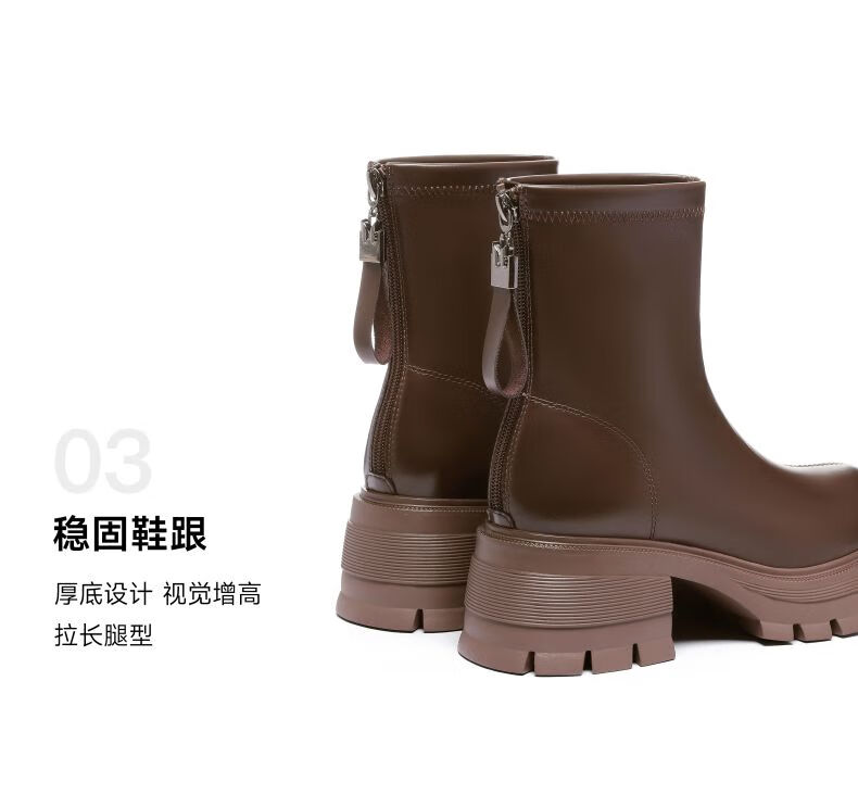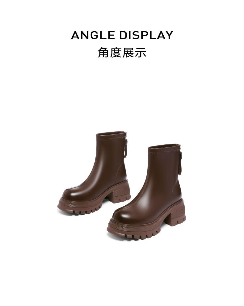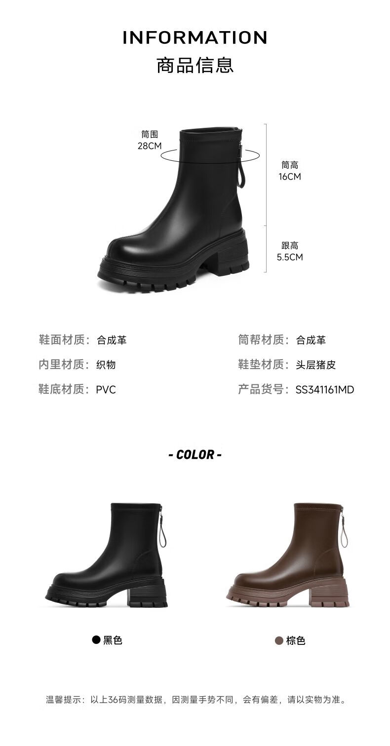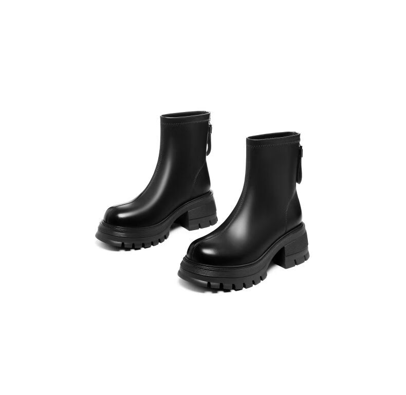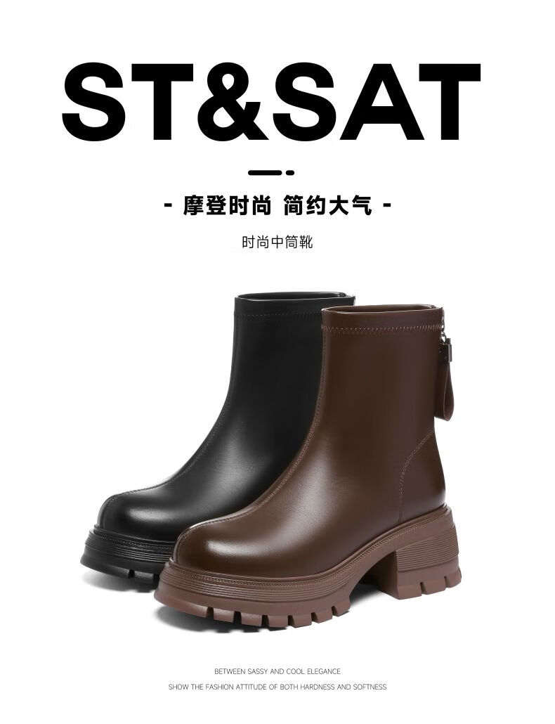 星期六(St&Sat)棕色厚底短靴子女款2025秋冬爆款美拉德英伦风马丁靴工装靴 黑色 36