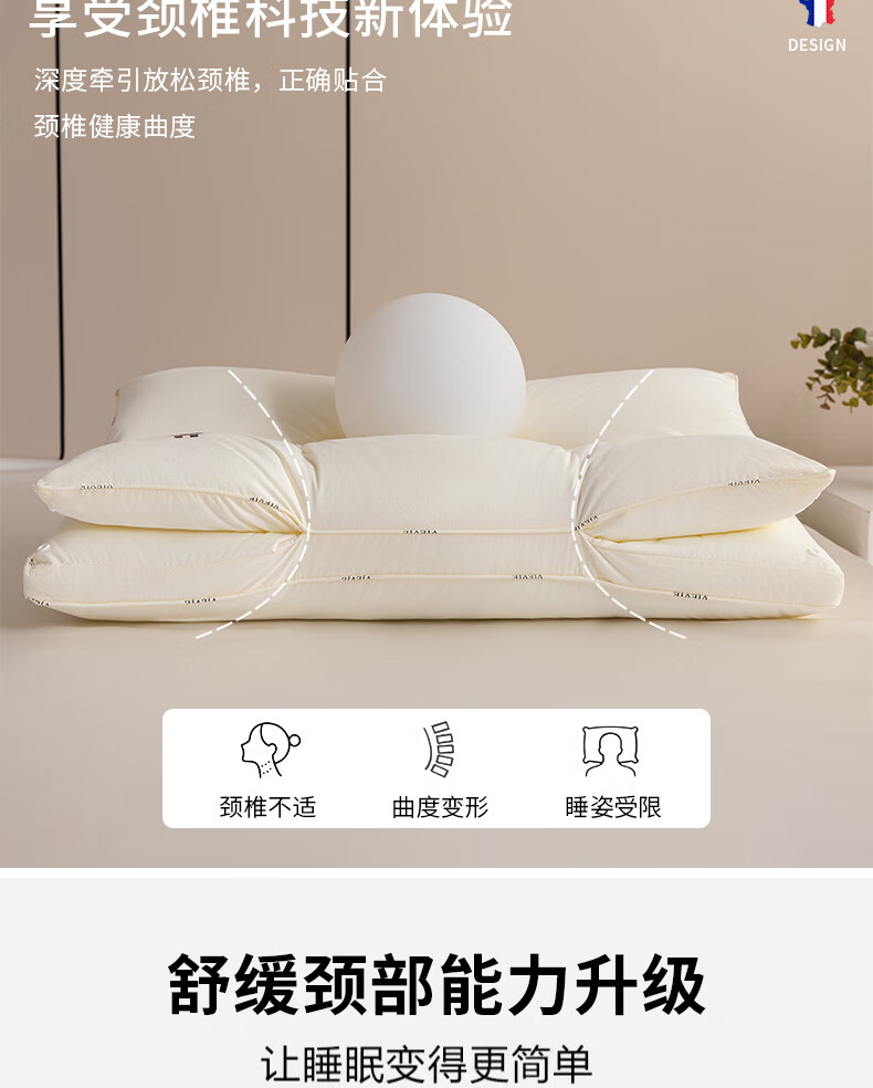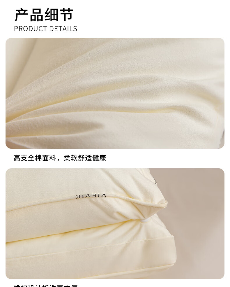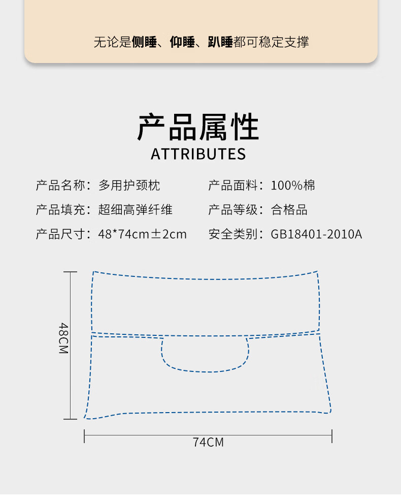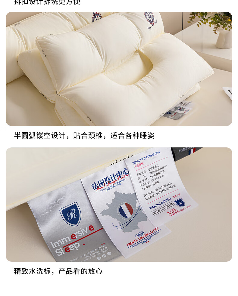 VJE三防护颈枕头全棉颈椎枕pro纯棉深度睡眠枕芯枕套双层拆卸睡眠枕 三防护颈枕-太空灰 【单只装】 48*74cm