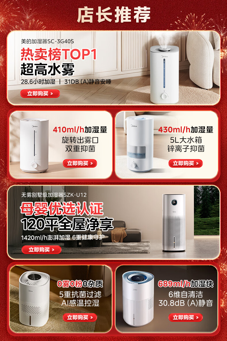 美的(Midea)【UVC杀菌】空气加湿器家用卧室超声波母婴幼儿客厅办公室静音大雾量宿舍桌面雾化器圣诞礼物UV98K