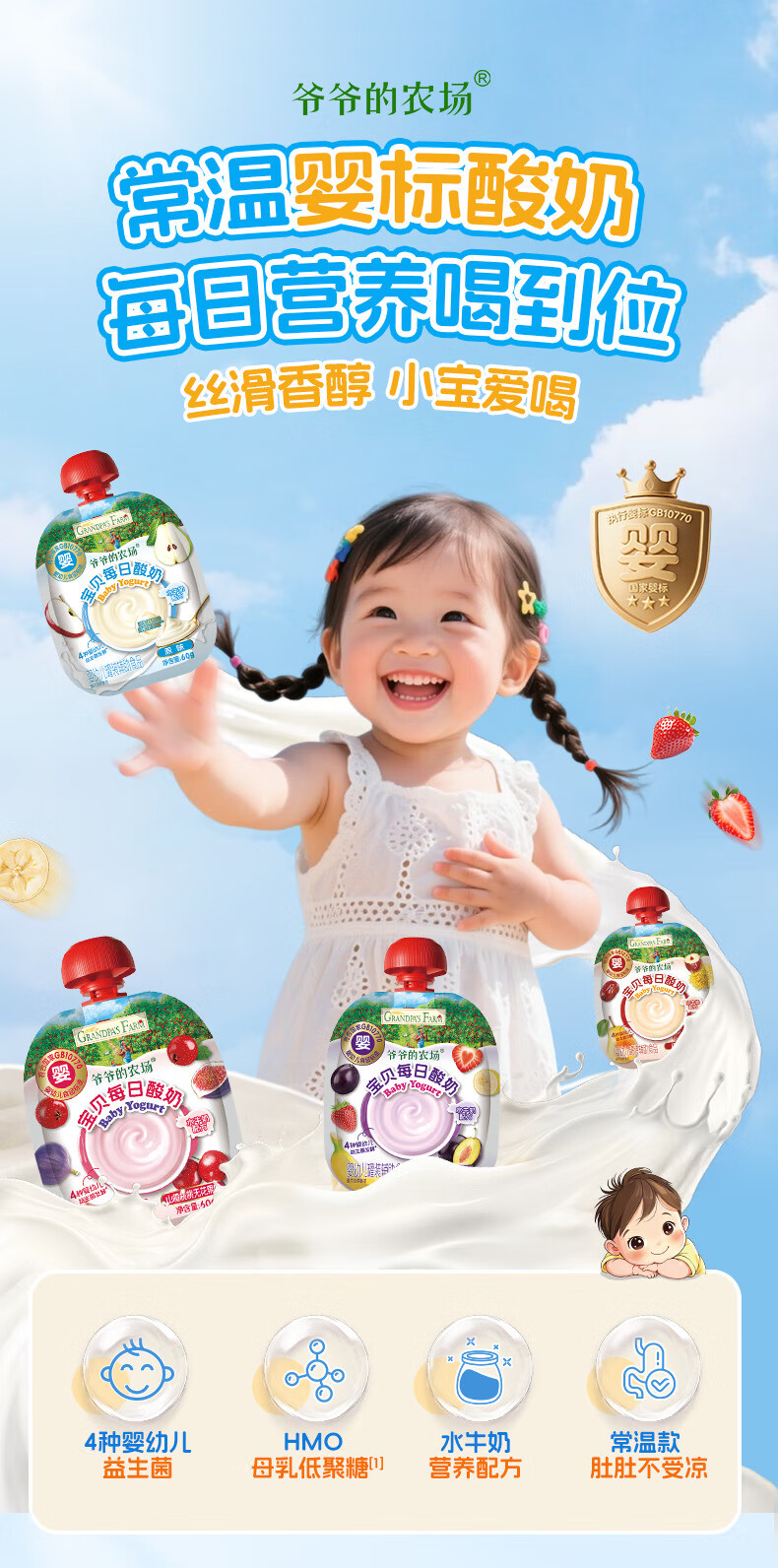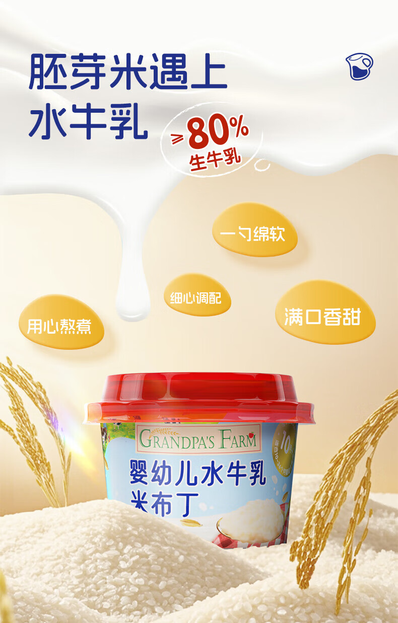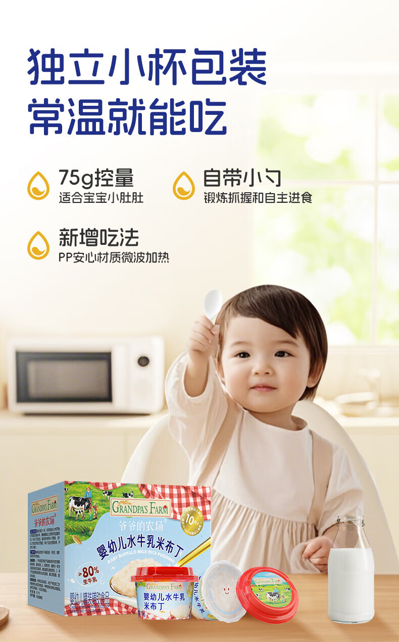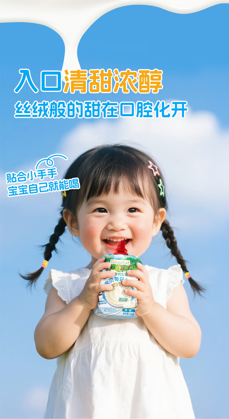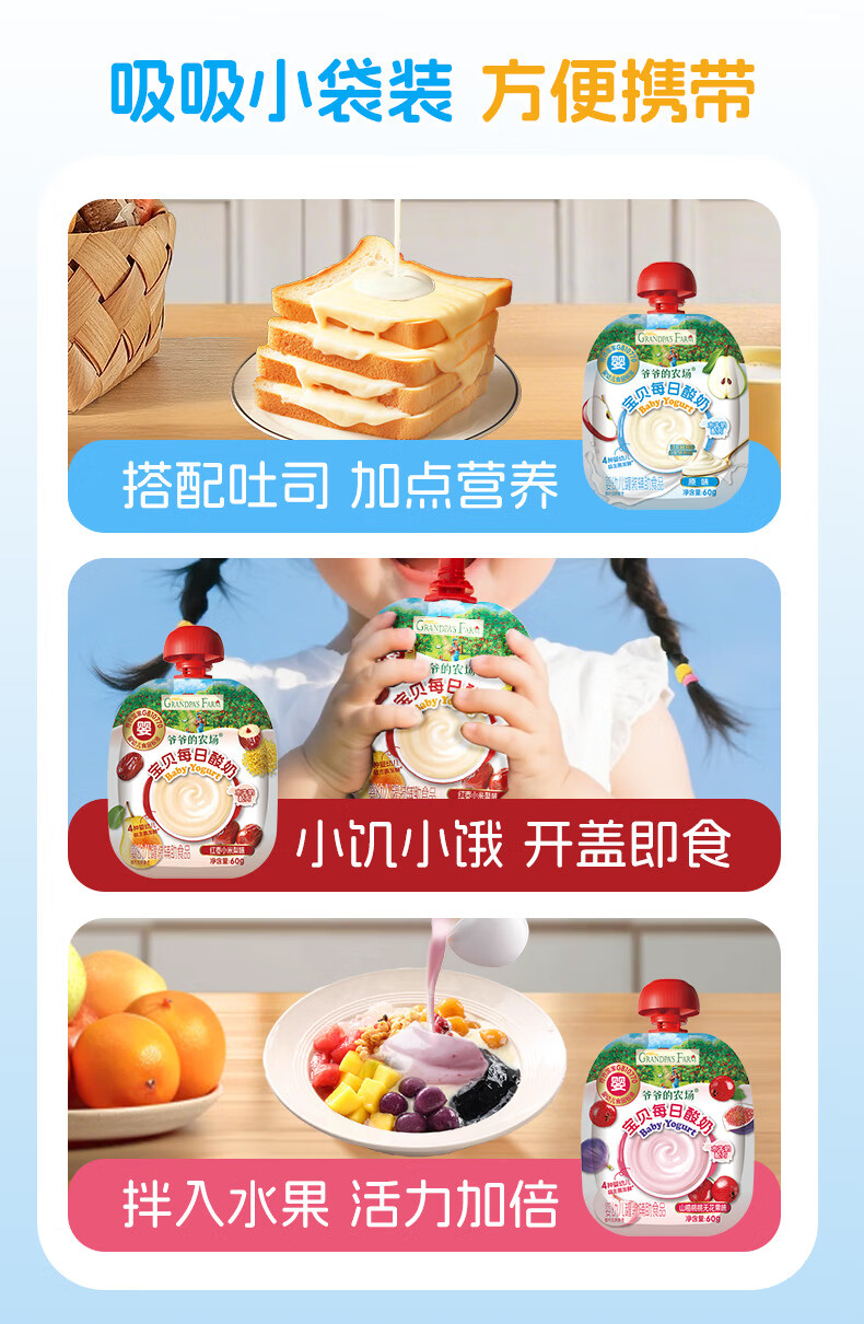 爷爷的农场婴幼儿宝宝酸奶 水牛奶米布丁宝宝儿童饮品营养辅食零食 宝宝酸奶4口味随机60g*8袋
