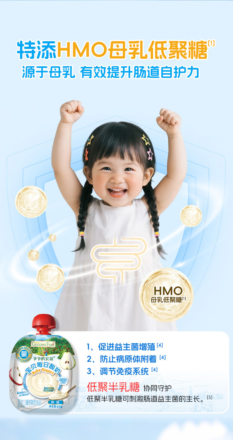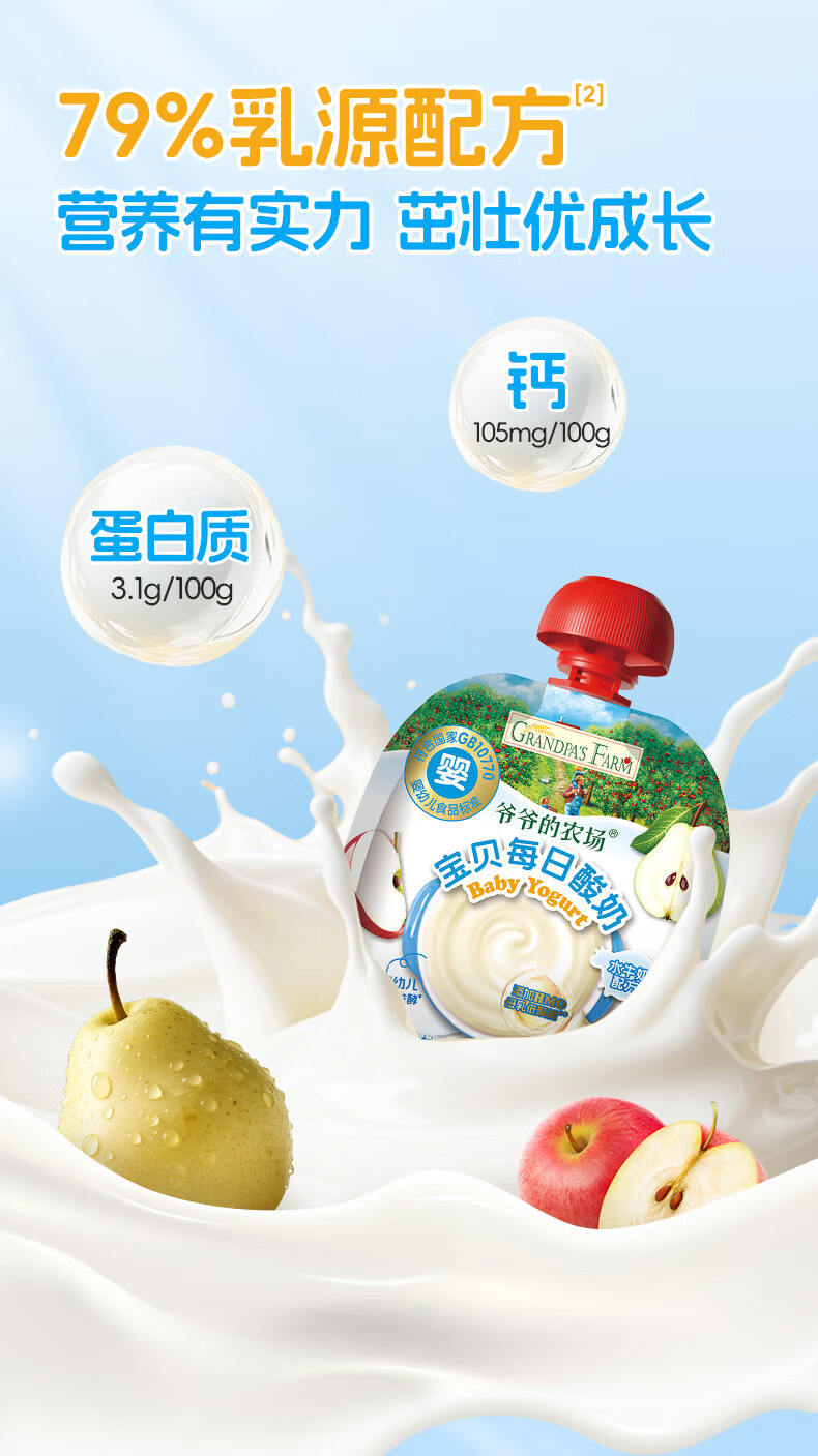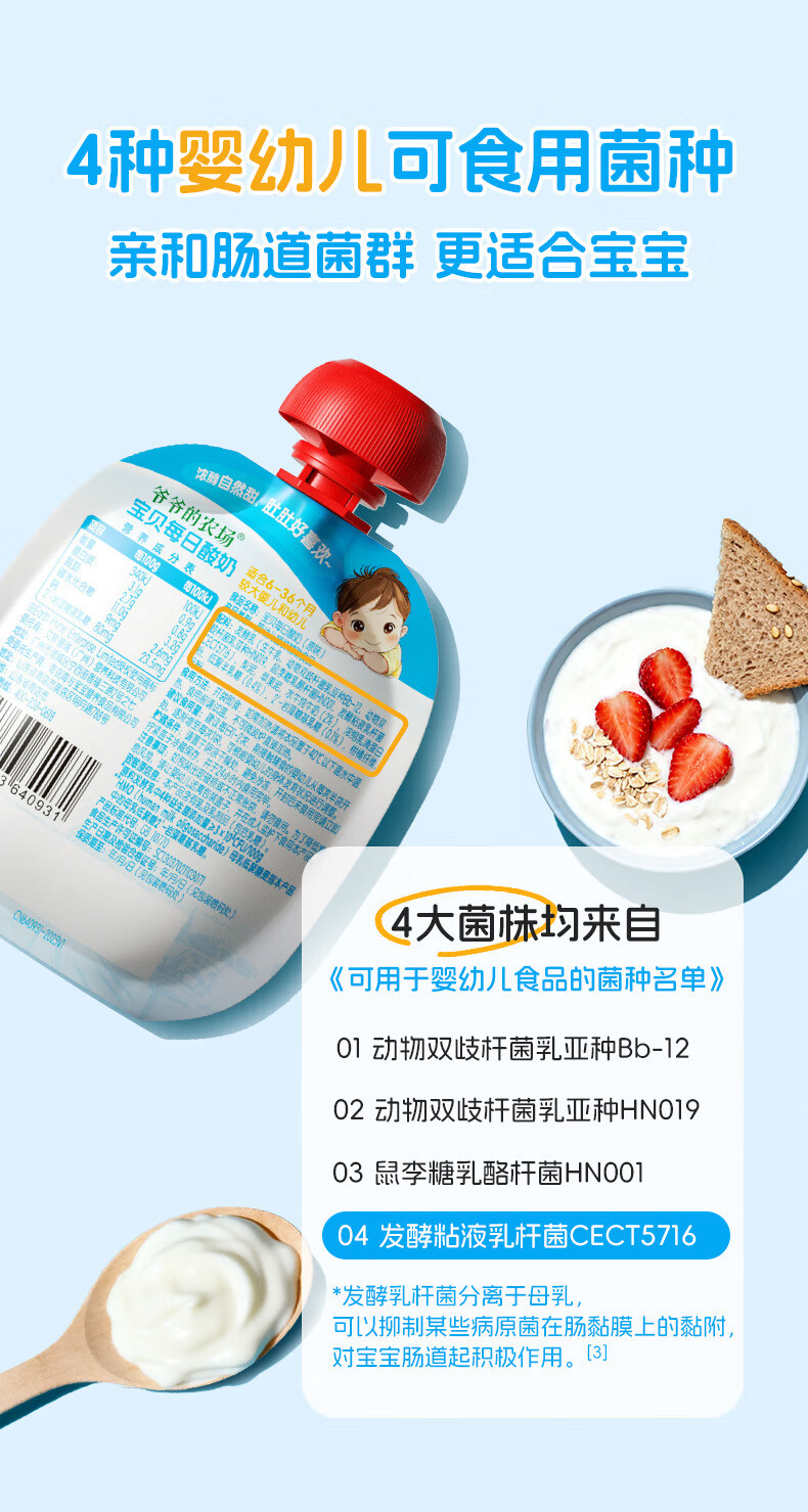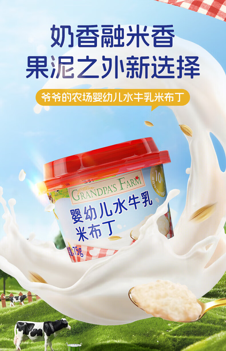 爷爷的农场婴幼儿宝宝酸奶 水牛奶米布丁宝宝儿童饮品营养辅食零食 宝宝酸奶4口味随机60g*8袋