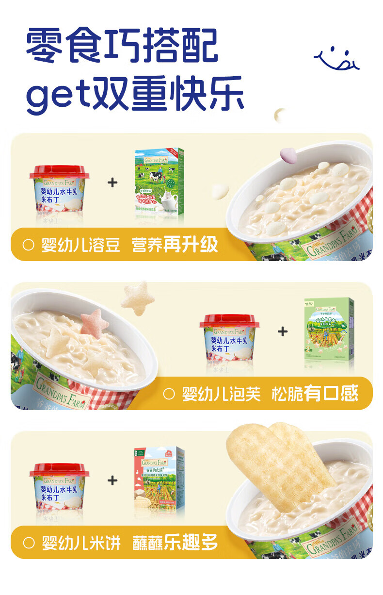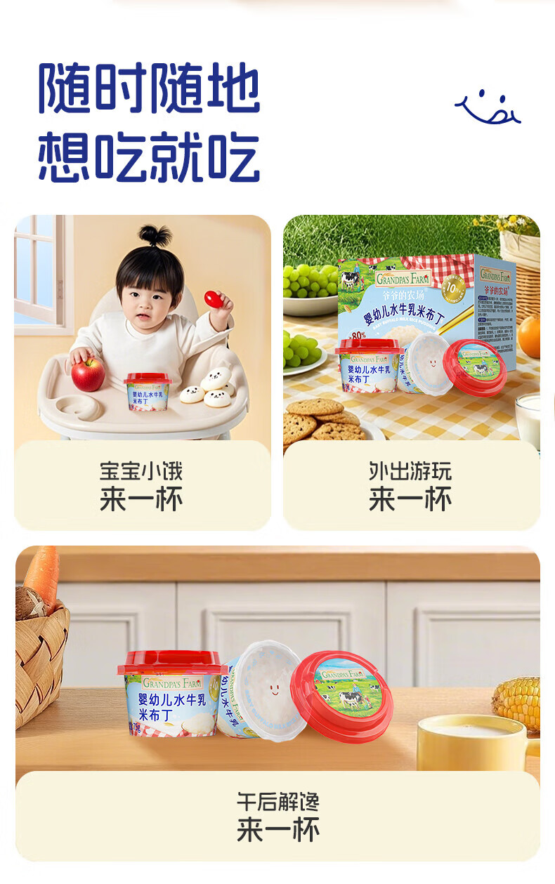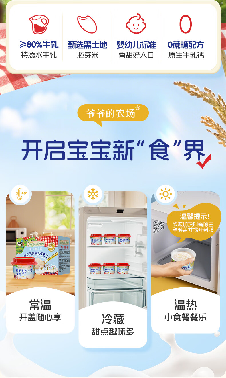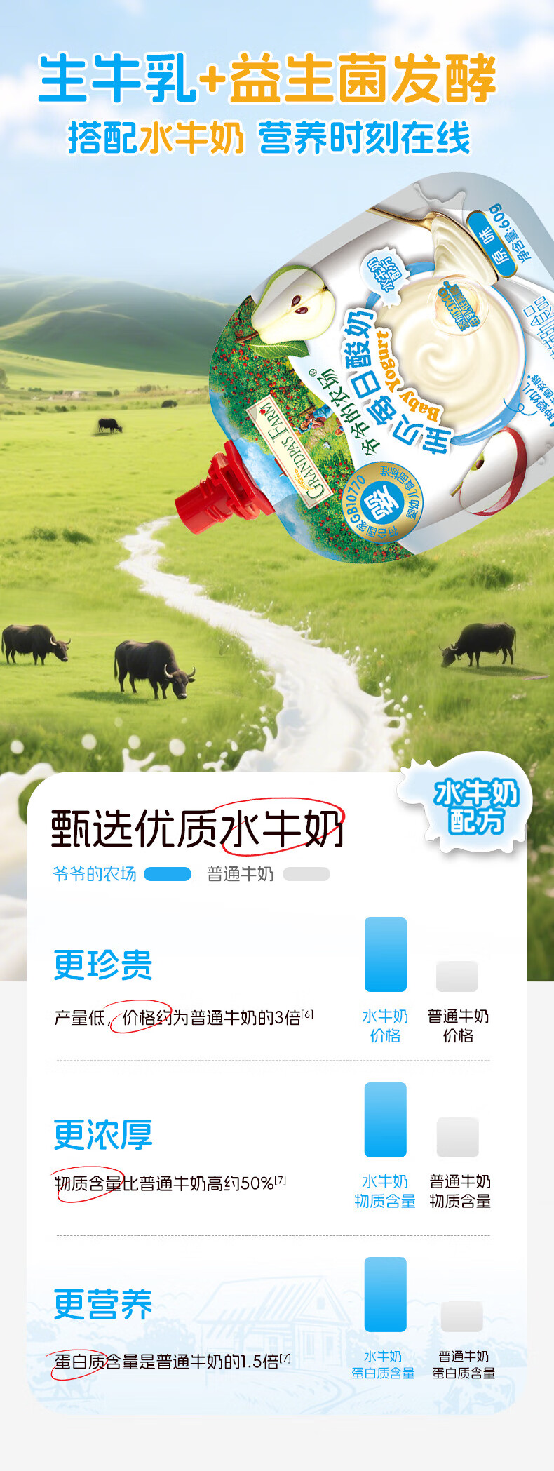 爷爷的农场婴幼儿宝宝酸奶 水牛奶米布丁宝宝儿童饮品营养辅食零食 宝宝酸奶4口味随机60g*8袋