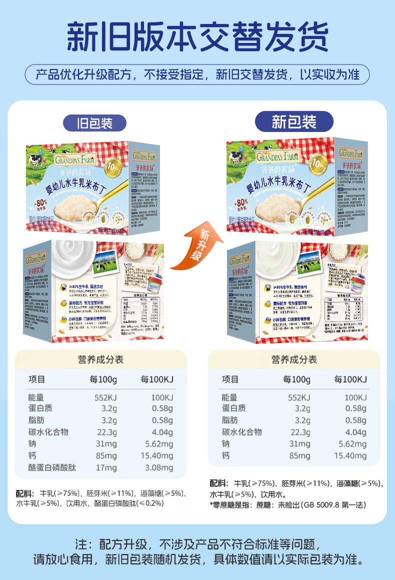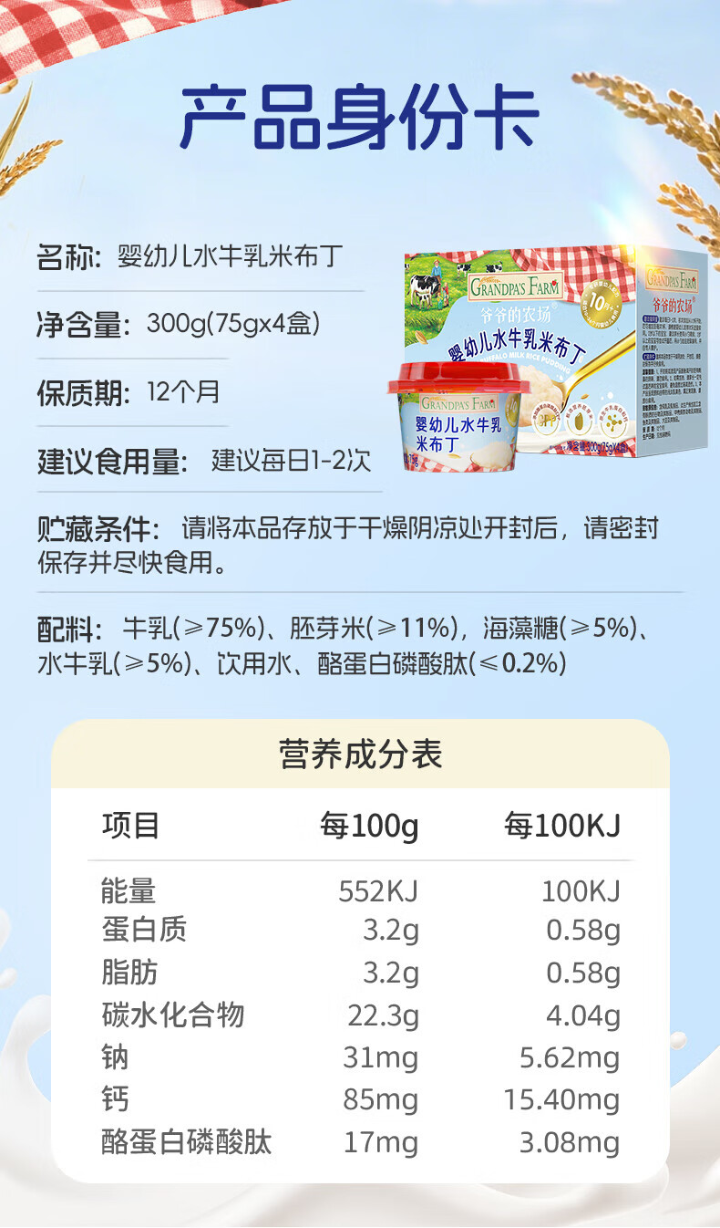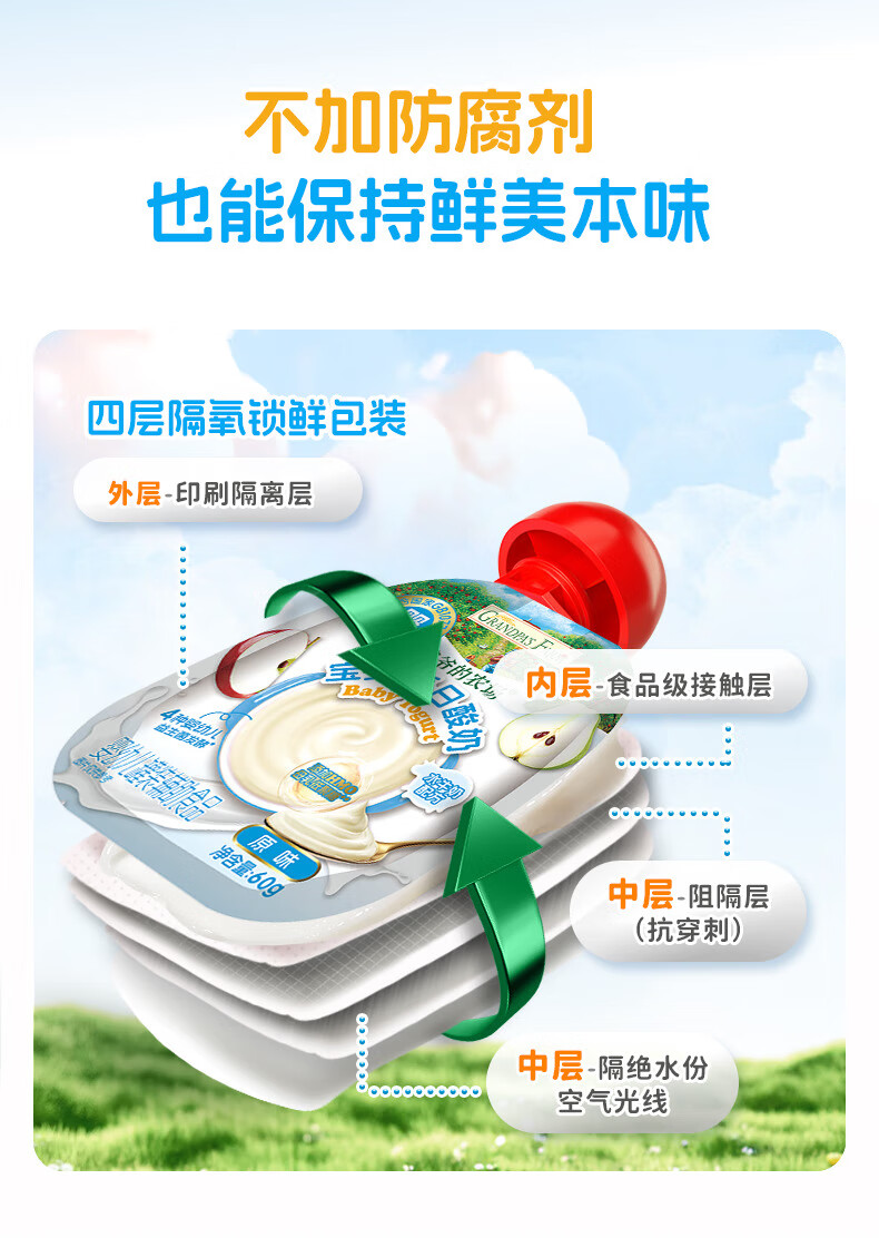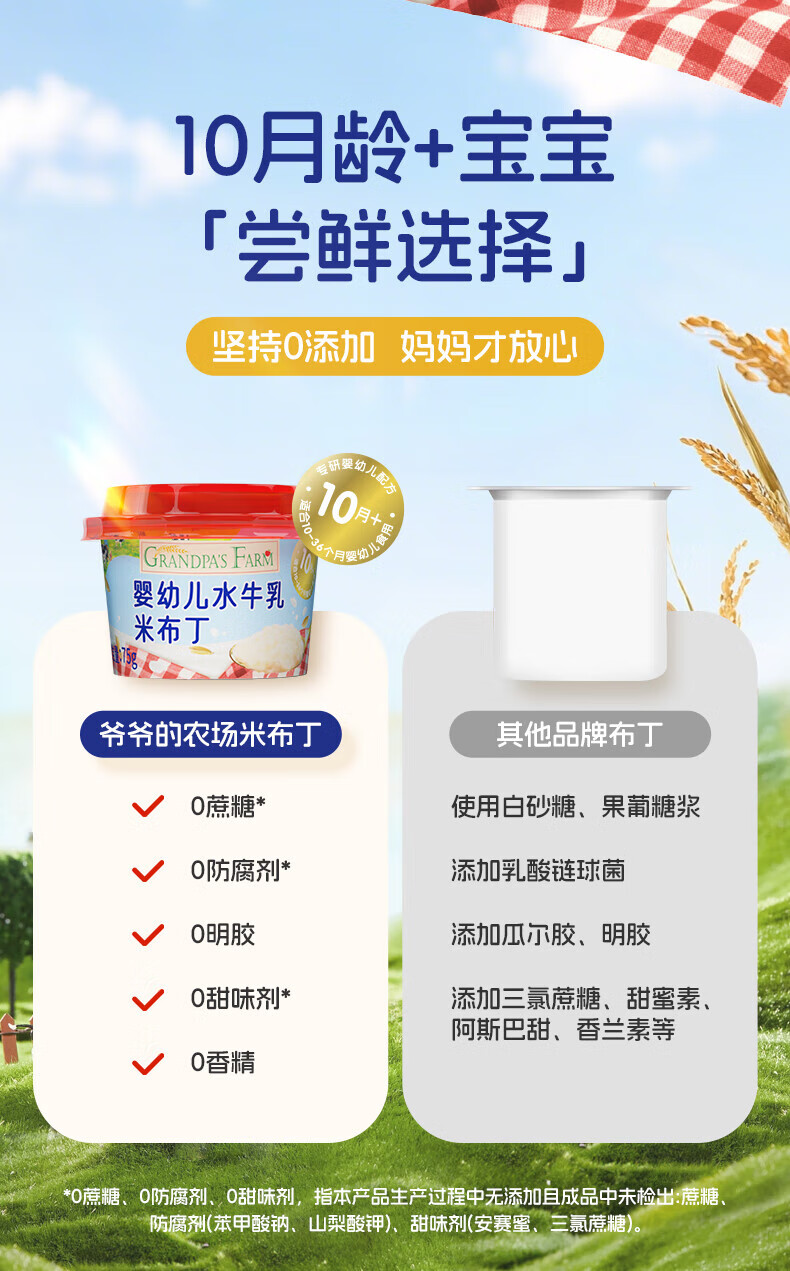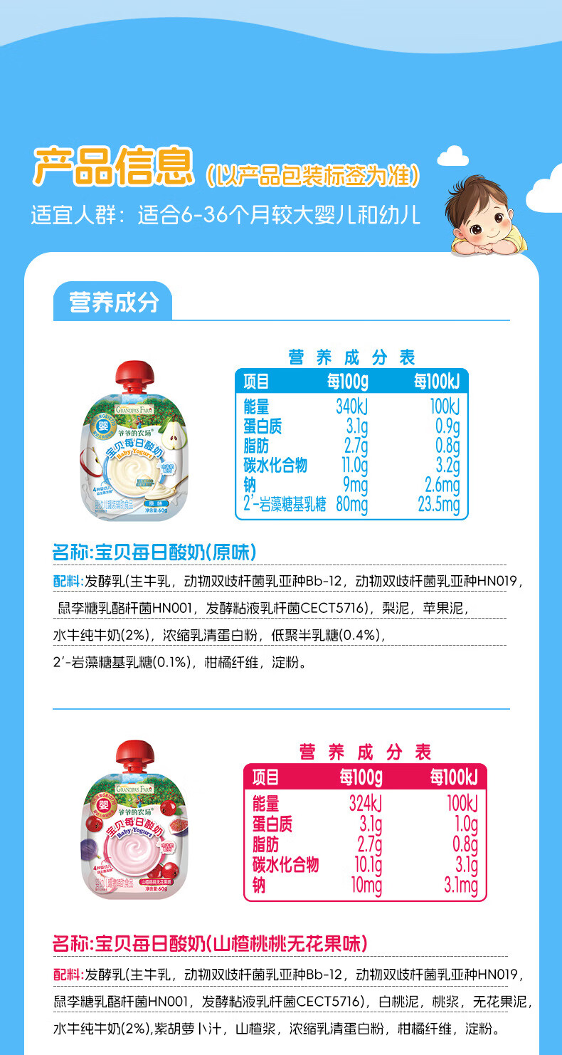 爷爷的农场婴幼儿宝宝酸奶 水牛奶米布丁宝宝儿童饮品营养辅食零食 宝宝酸奶4口味随机60g*8袋