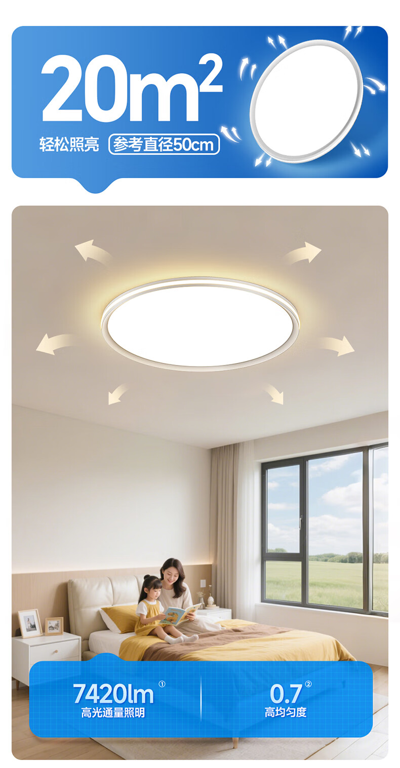 惠普卧室灯护眼灯具简约现代房间灯普瑞书房主卧灯智能吸顶灯包安装