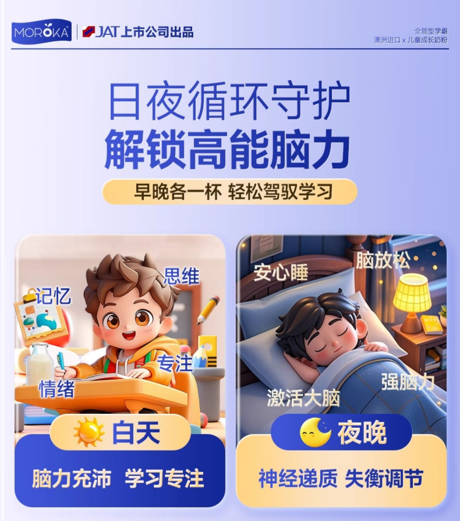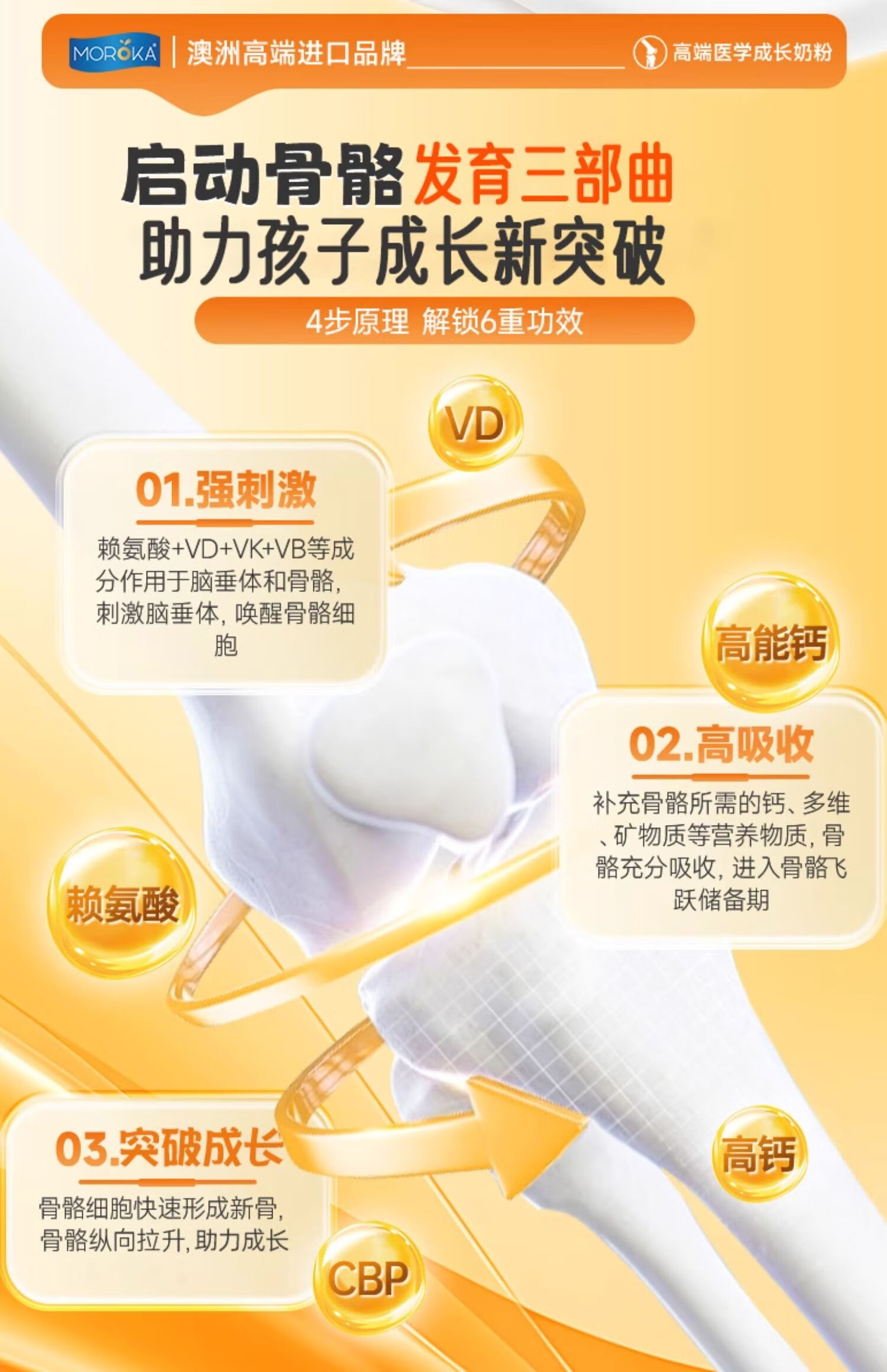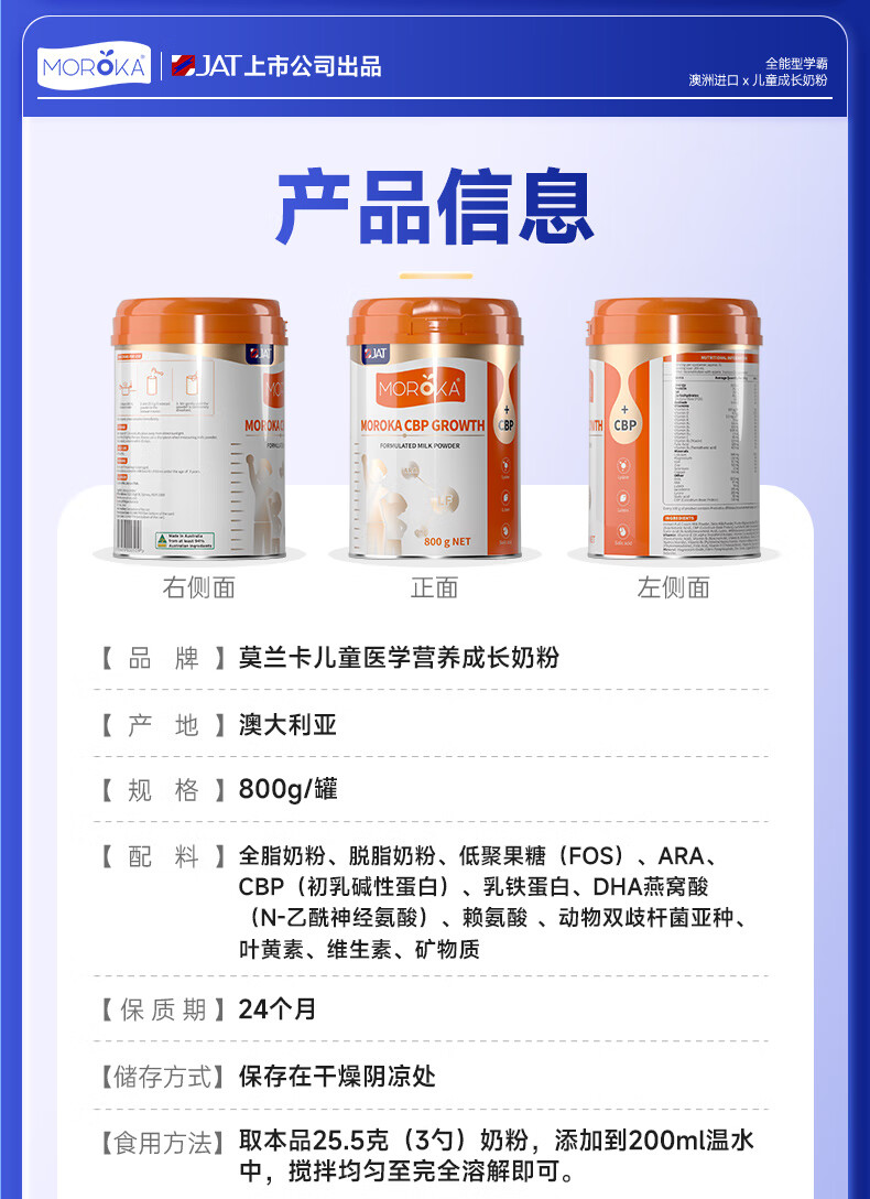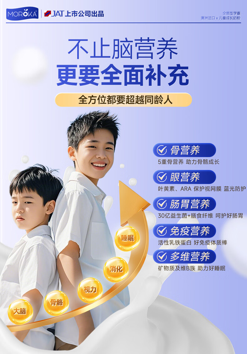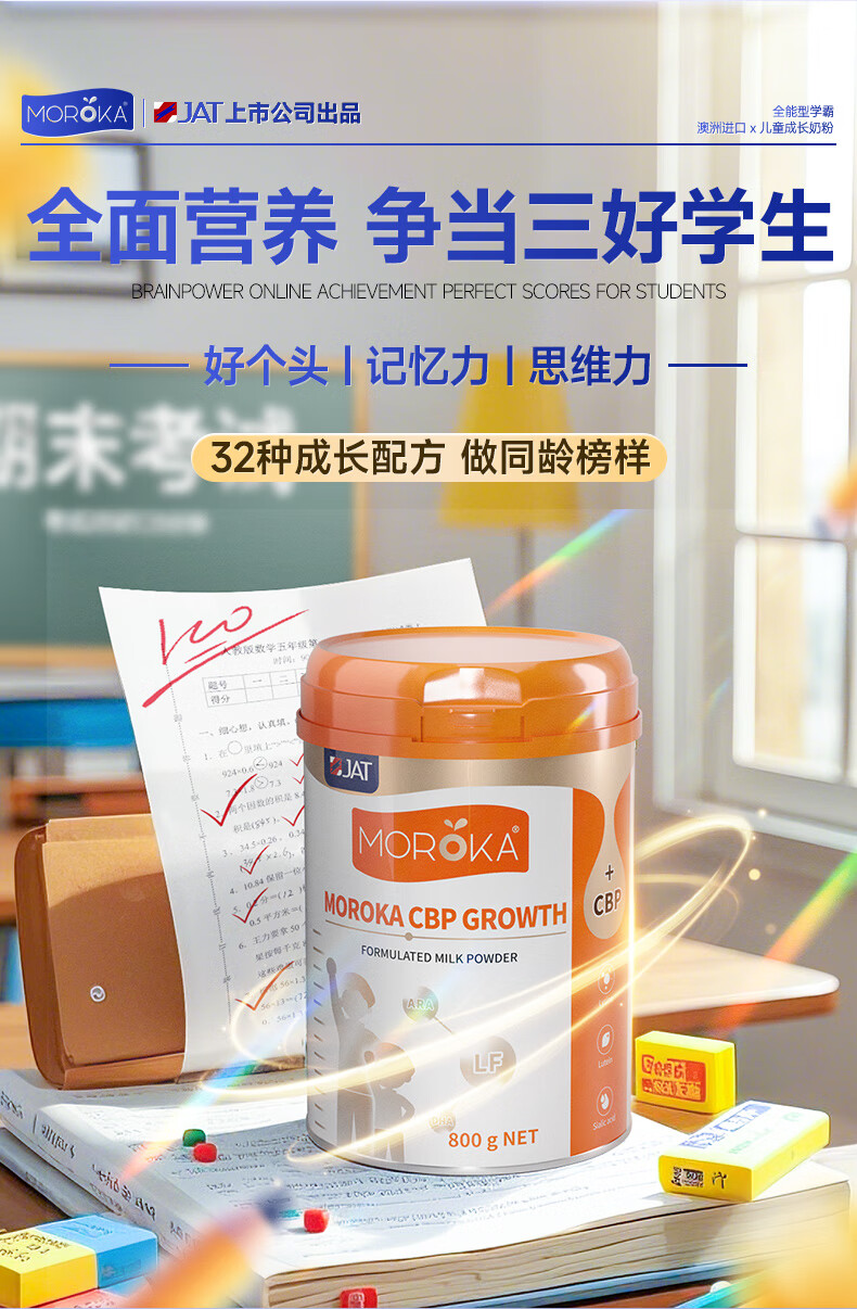莫兰卡(MOROKA)儿童成长奶粉3-6-14岁成长高钙补钙补脑DHA赖氨酸学生奶粉800g
