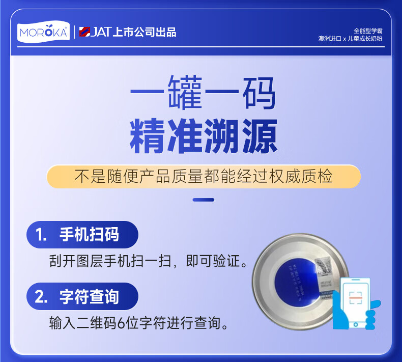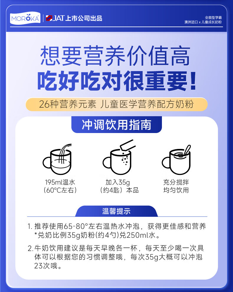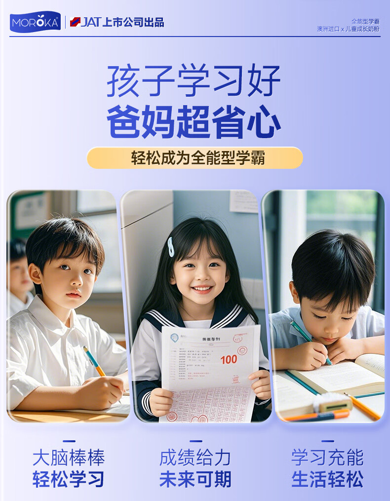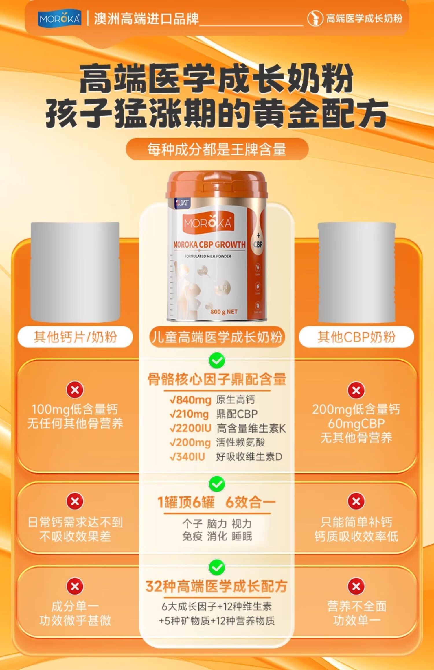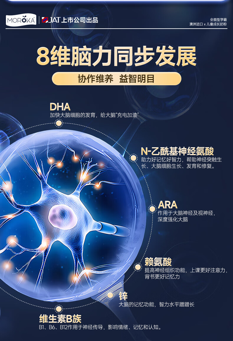 莫兰卡(MOROKA)儿童成长奶粉3-6-14岁成长高钙补钙补脑DHA赖氨酸学生奶粉800g