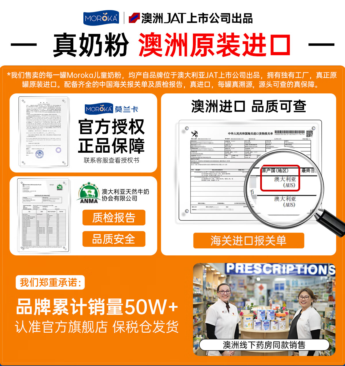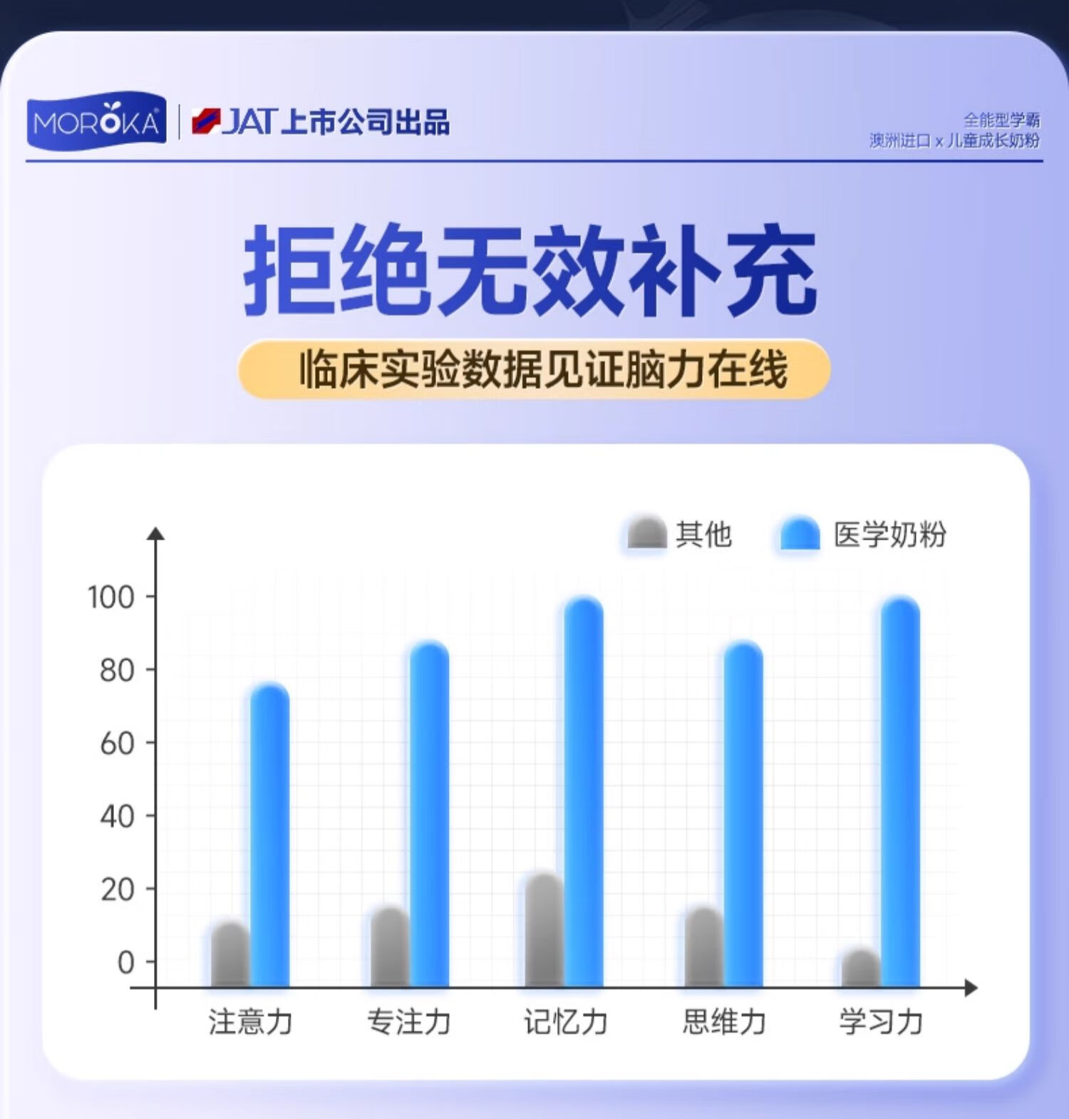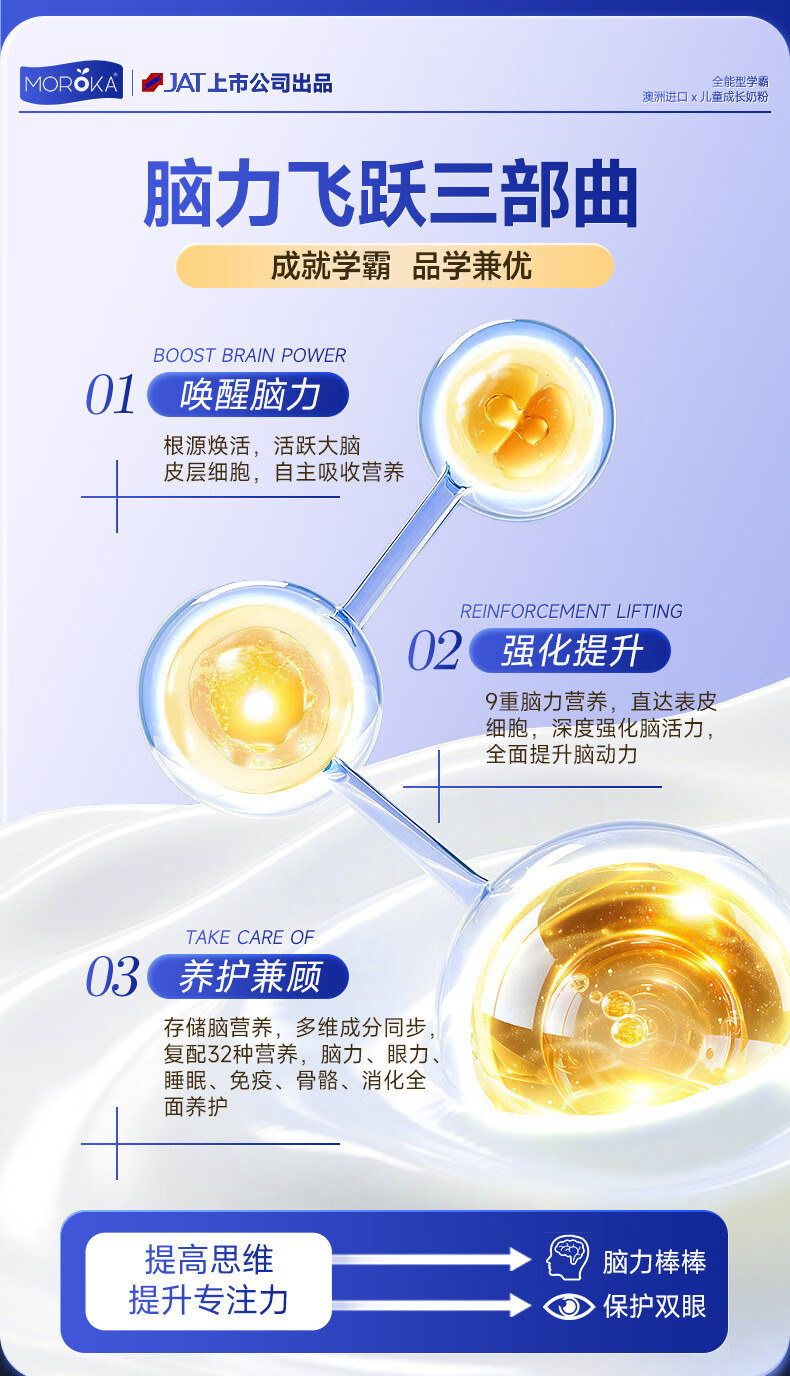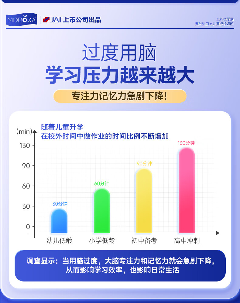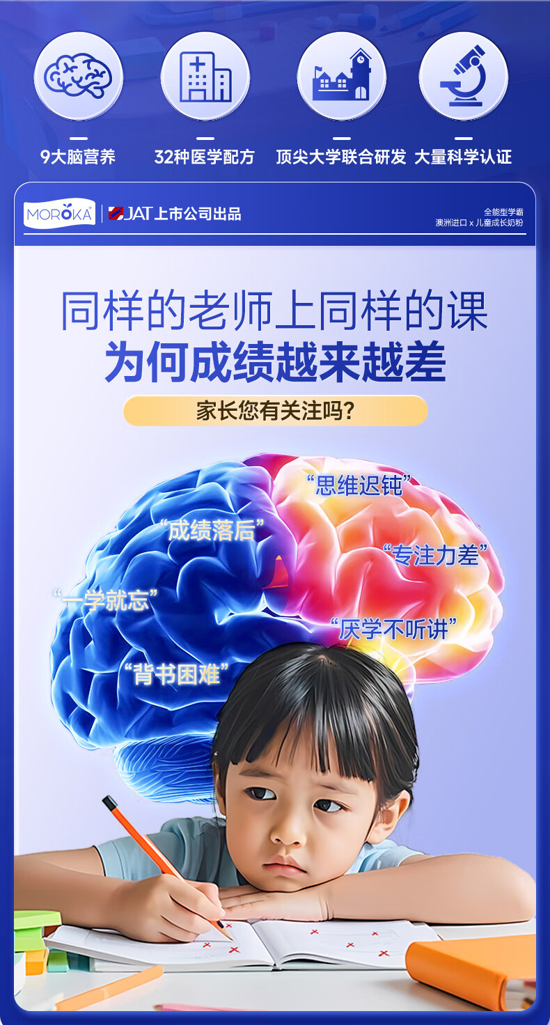 莫兰卡(MOROKA)儿童成长奶粉3-6-14岁成长高钙补钙补脑DHA赖氨酸学生奶粉800g