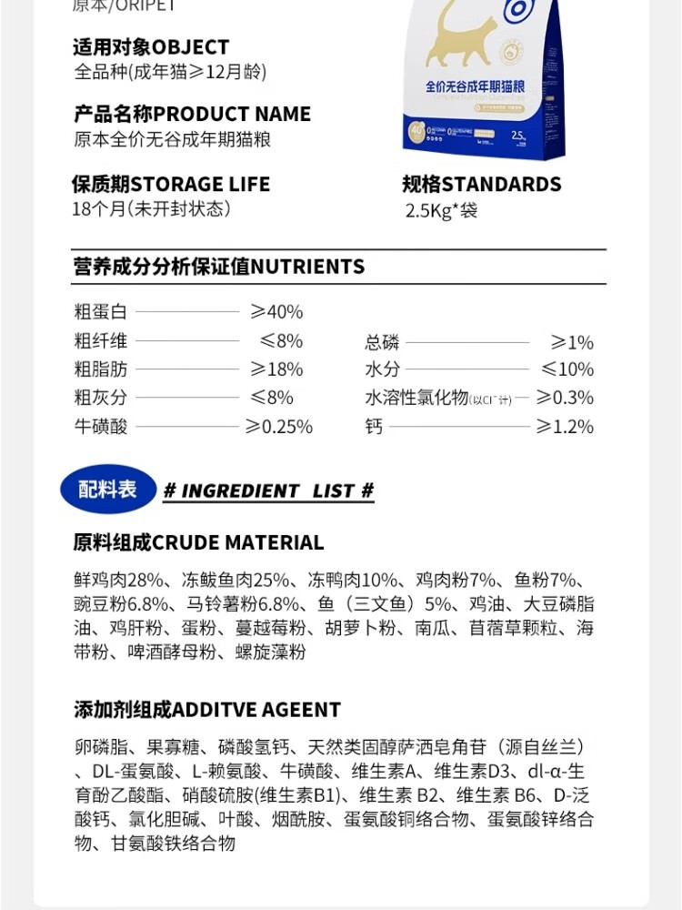 原本高蛋白鲜肉猫粮全阶段猫粮酥化粮卵磷脂幼猫成猫换粮试吃试用 鸡鱼配酥化粮试吃装(美毛靓毛) 尝鲜装2*袋(100g)