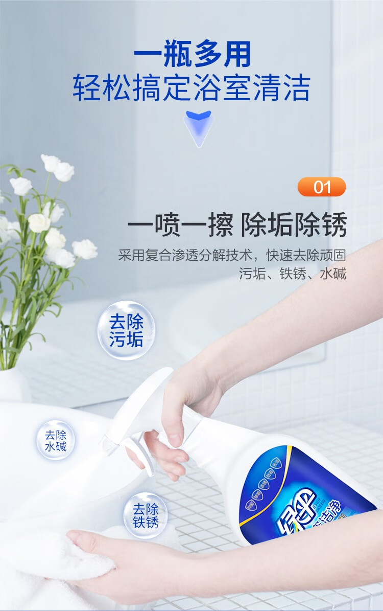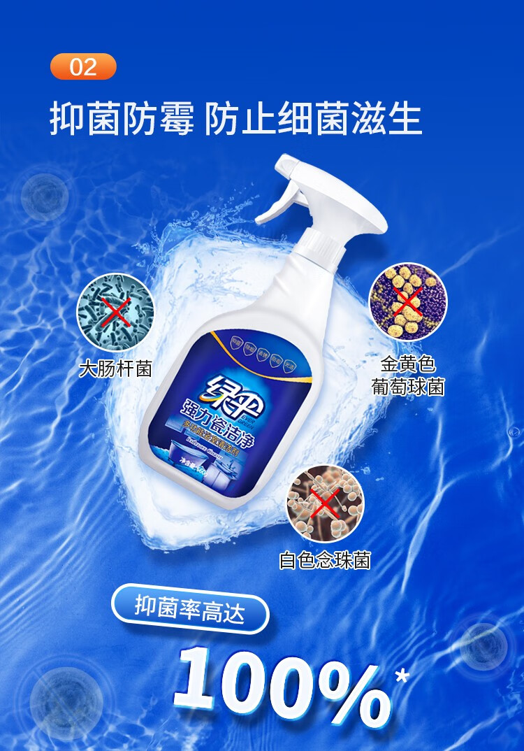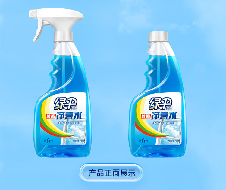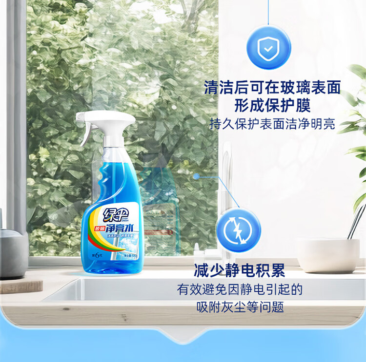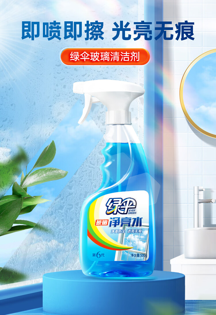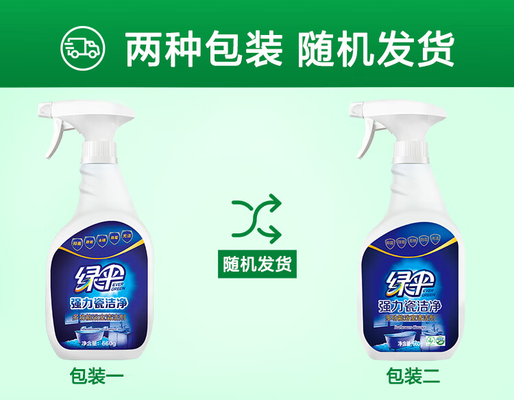 绿伞强力瓷洁净 浴室卫生间 洗手池瓷砖墙壁玻璃清洁剂 去污垢水渍 500g*1瓶玻璃+660g*1瓶瓷砖