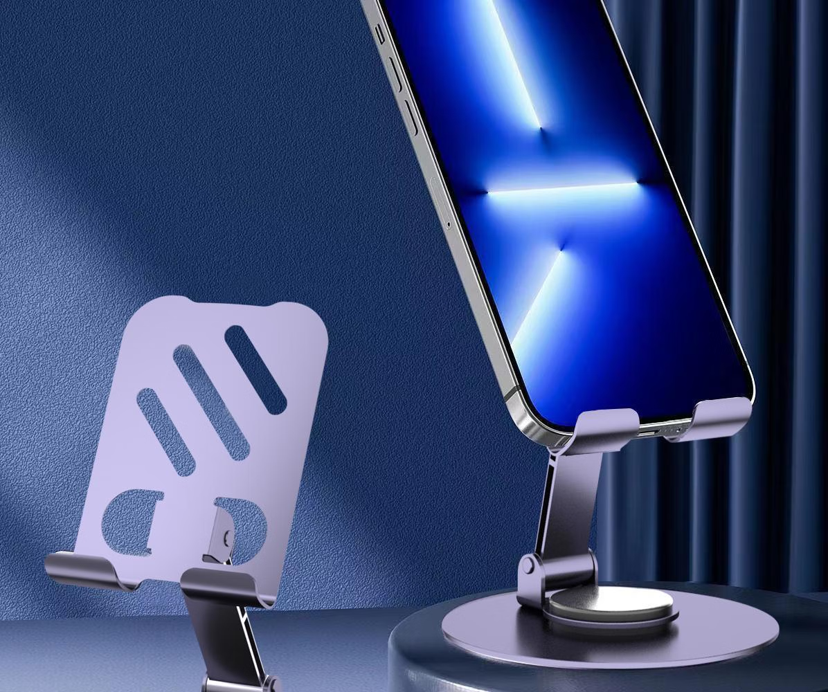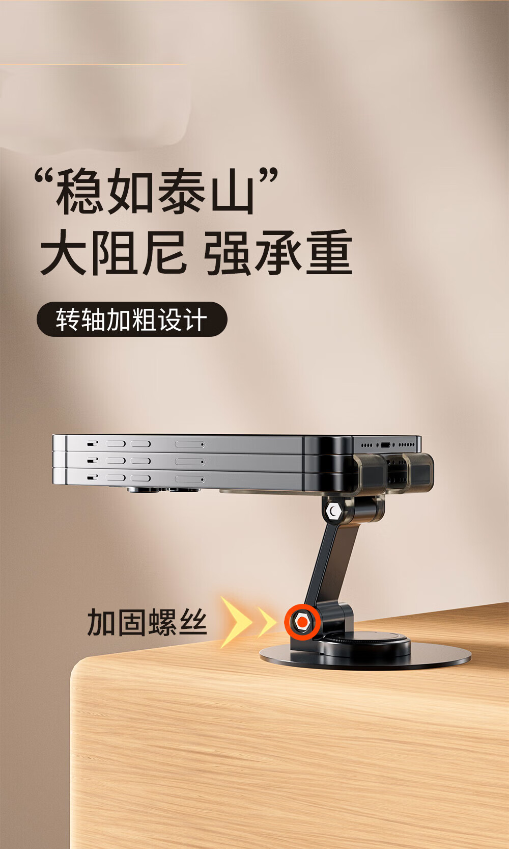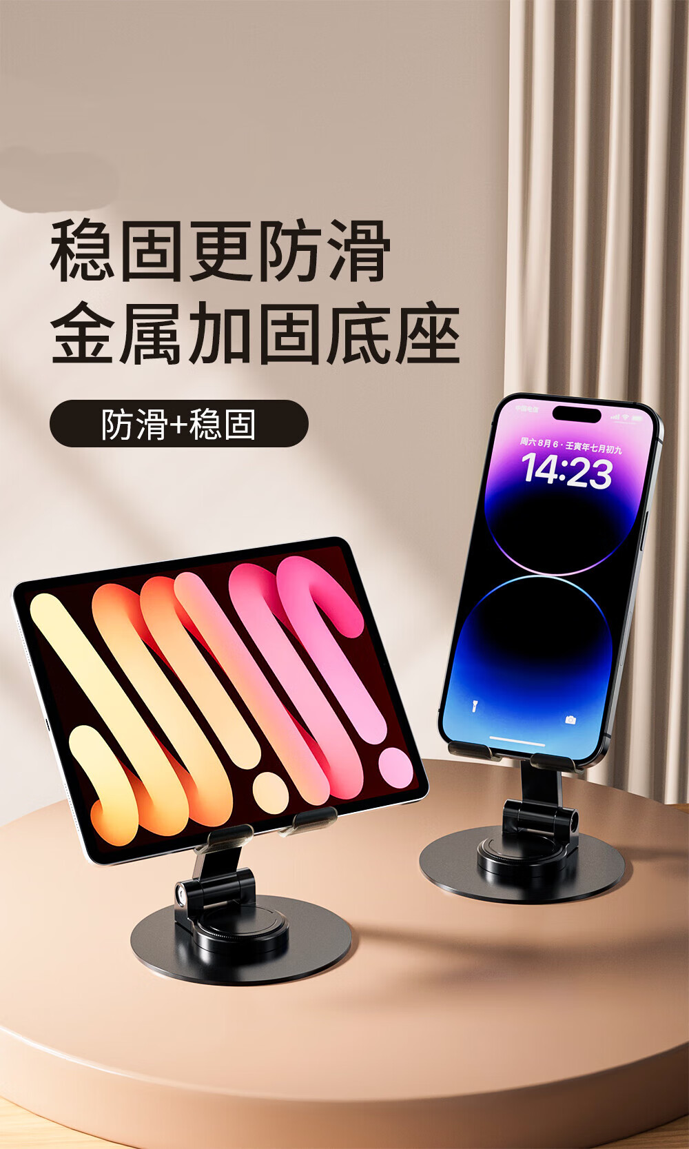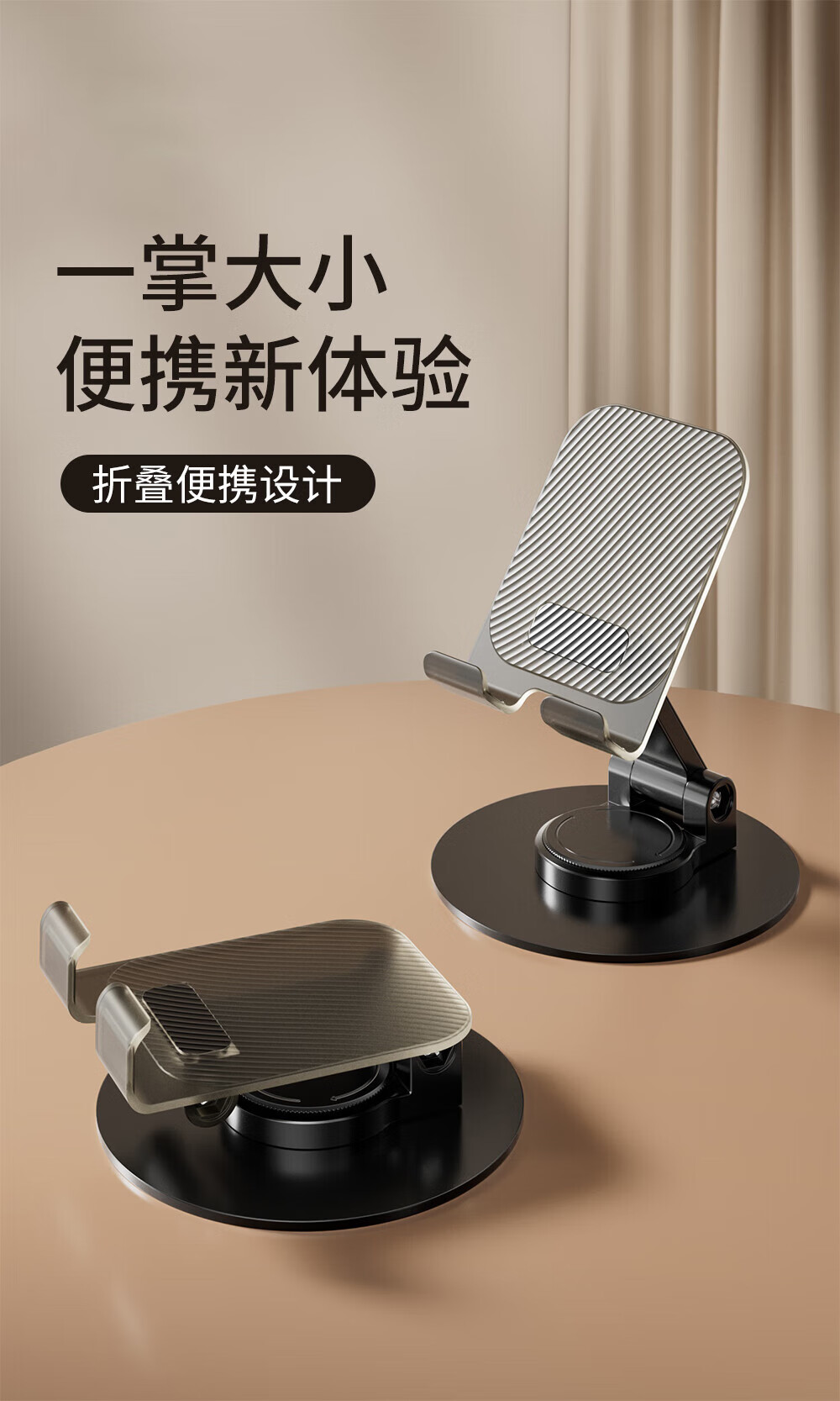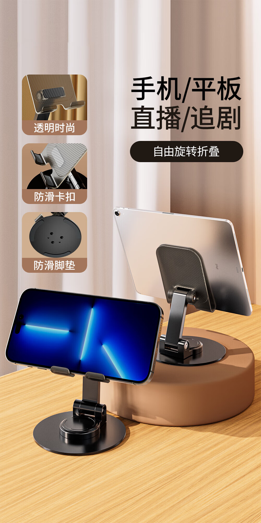 简纽旋转支架手机支架桌面可旋转折叠款直播拍视频追剧刷抖音视频支架床头懒人支架通用手机支架 透明款-360度旋转一加强碳素钢材质底座