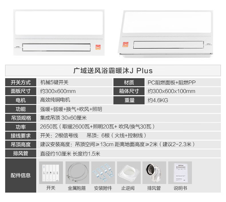 欧普照明(OPPLE)抱抱暖风暖浴霸灯浴室卫生间暖风照明排气一体集成 YB-JLFK103-J