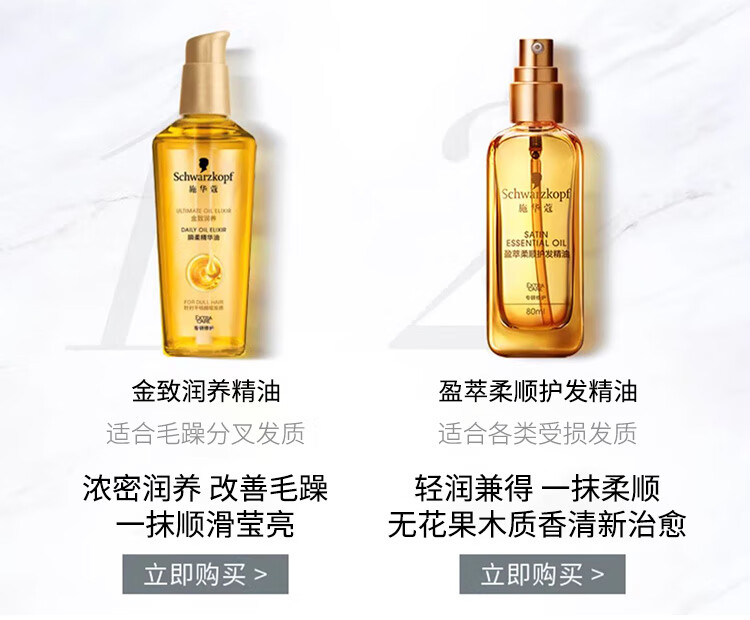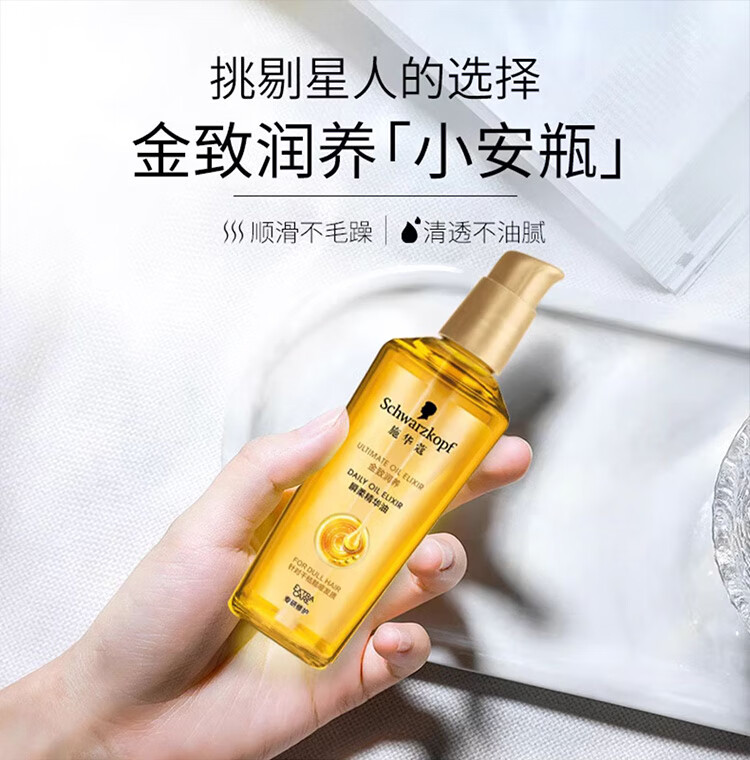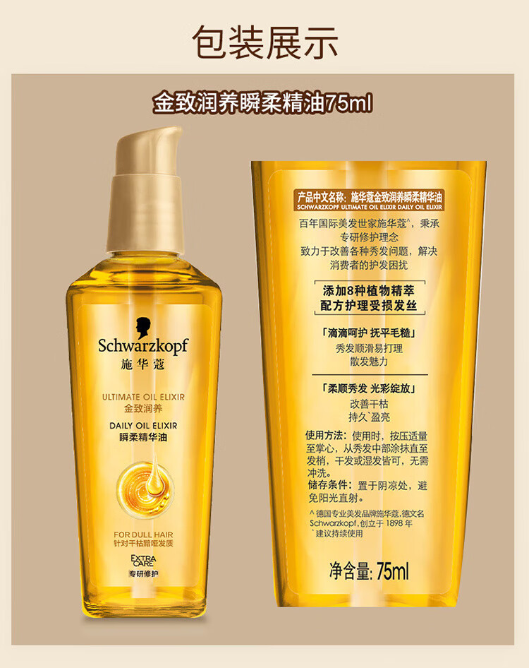 施华蔻(Schwarzkopf)金致润养瞬柔精油套装(精油75ml*2)(护发精油 免洗滋养 防毛躁)