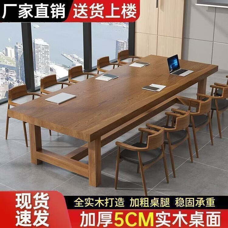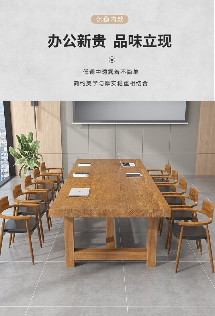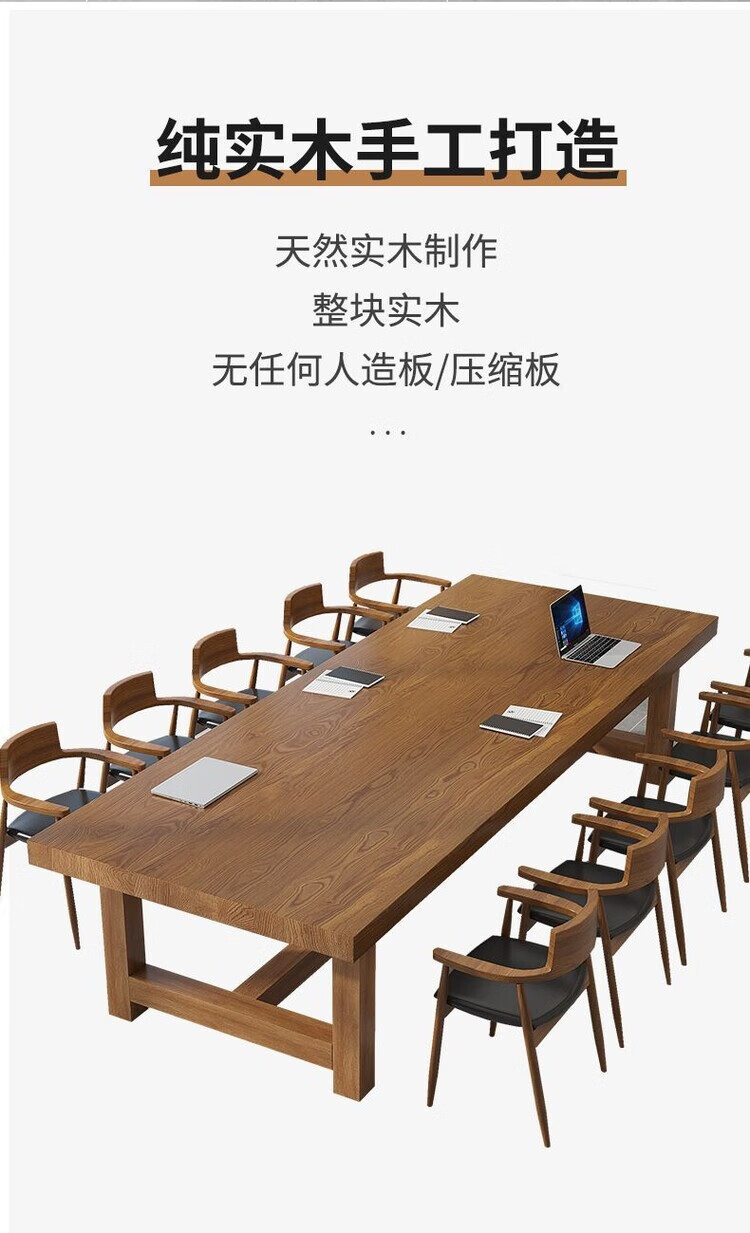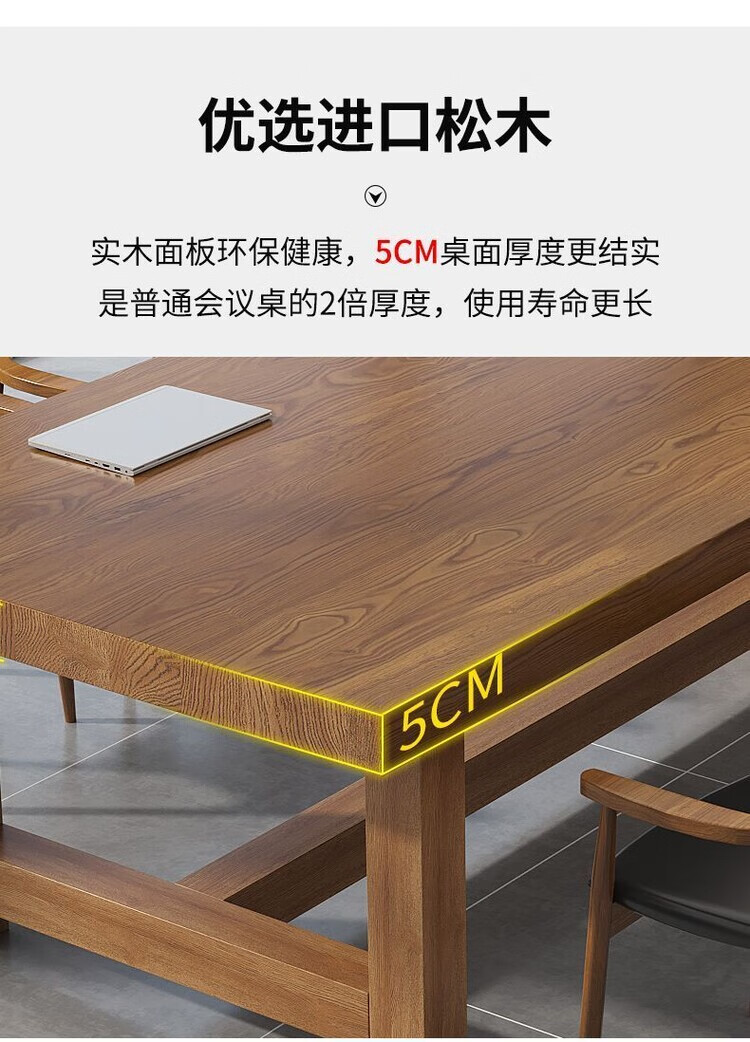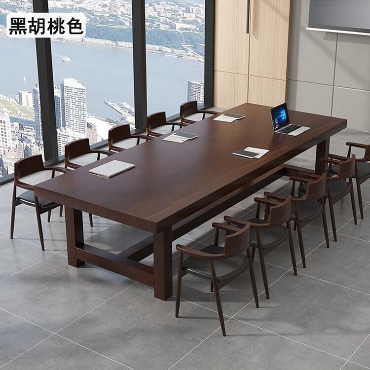 欣慕雅实木大型会议桌长条桌简约现代电脑办公桌会议室多人洽谈桌椅组合 胡桃色【桌面5cm厚】 长120宽60高75【全实木】