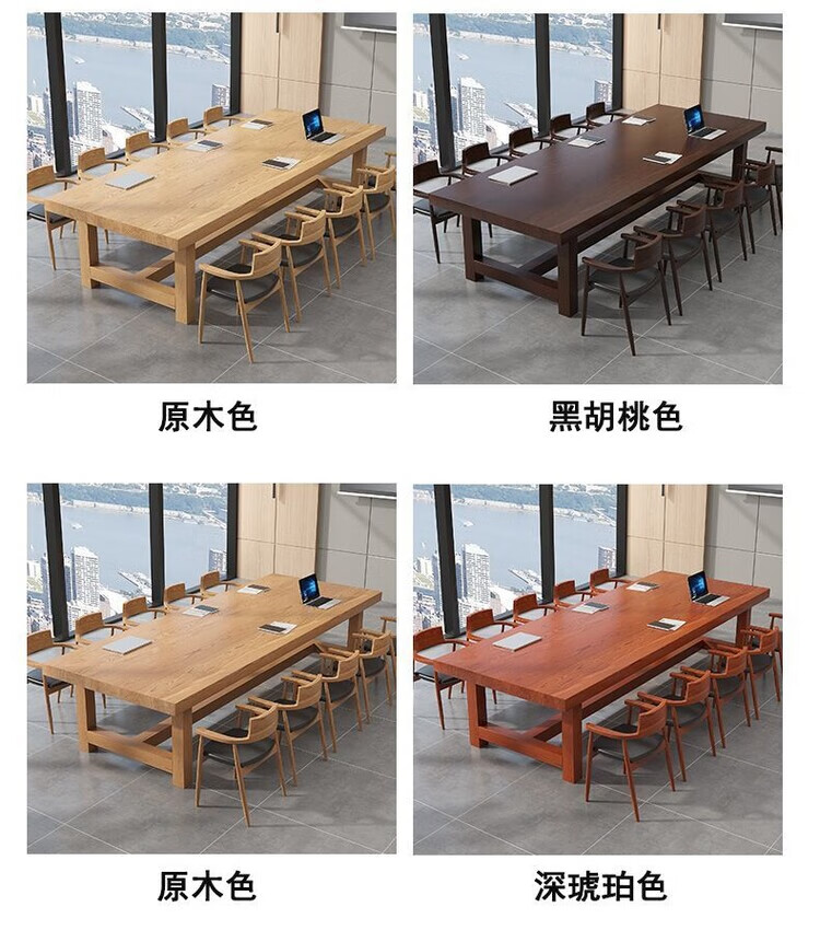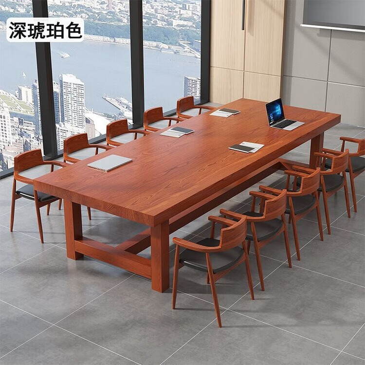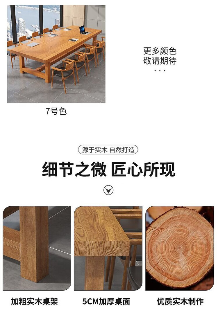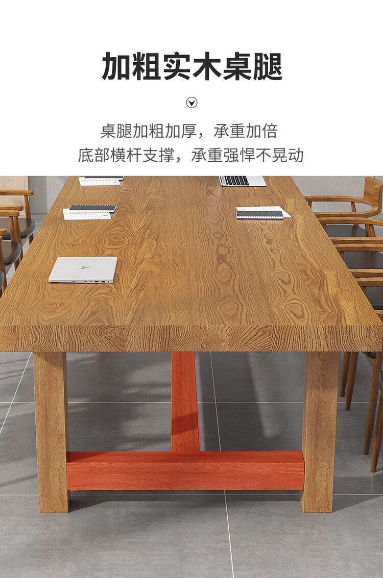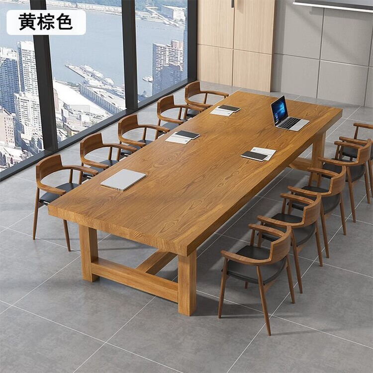 欣慕雅实木大型会议桌长条桌简约现代电脑办公桌会议室多人洽谈桌椅组合 胡桃色【桌面5cm厚】 长120宽60高75【全实木】