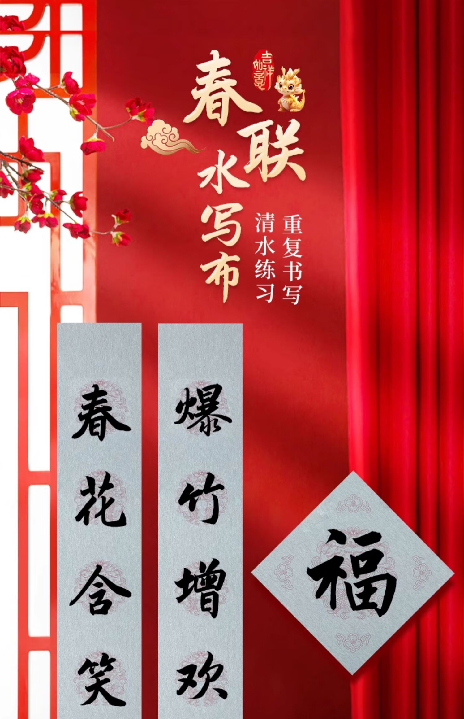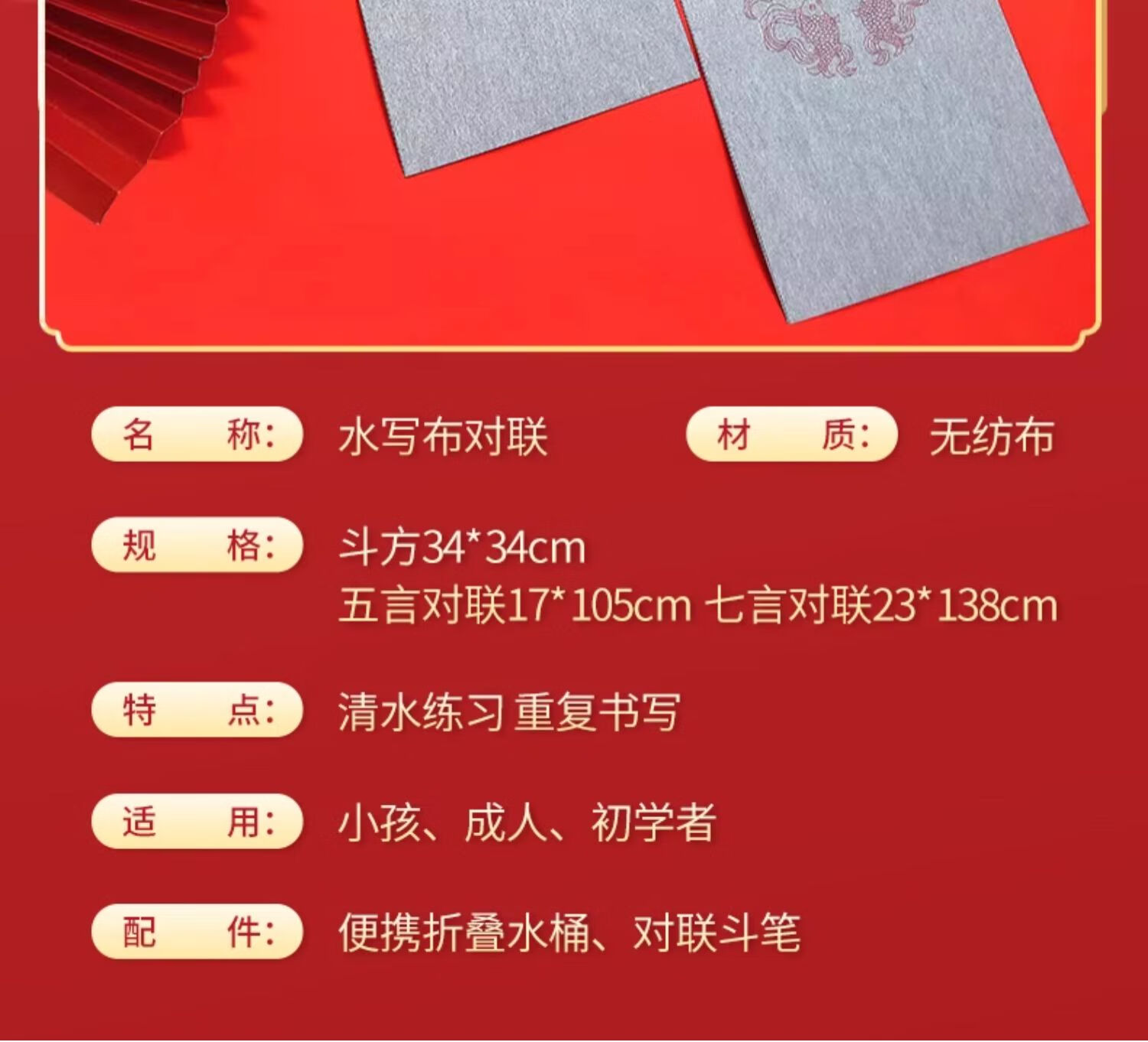 春联对联水写布手写练习专用五言七言书法自写空白毛笔练字水洗布 七言对联水写布套装