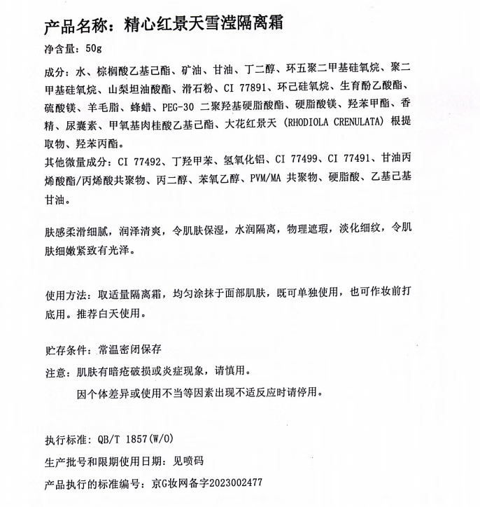 精心硅霜硅e乳滋润护手霜乳面身体乳润肤乳保湿北京协医院研制护肤品 精心红景天雪滢隔离霜