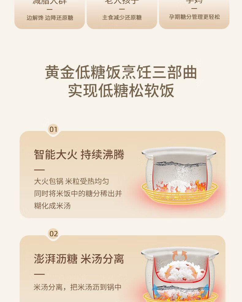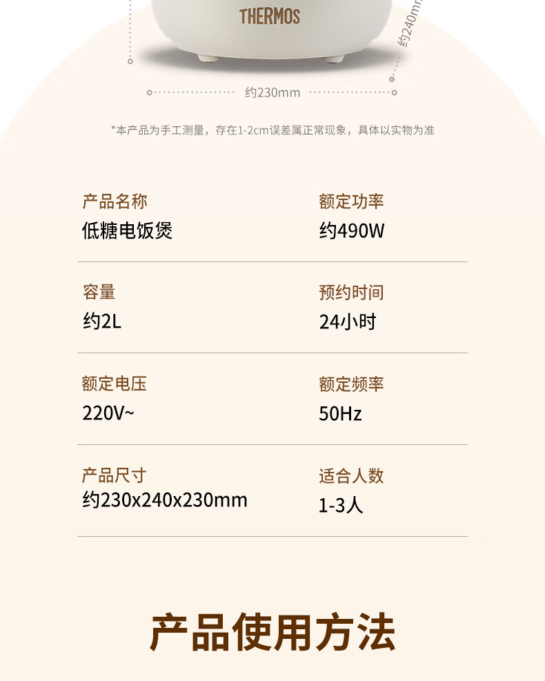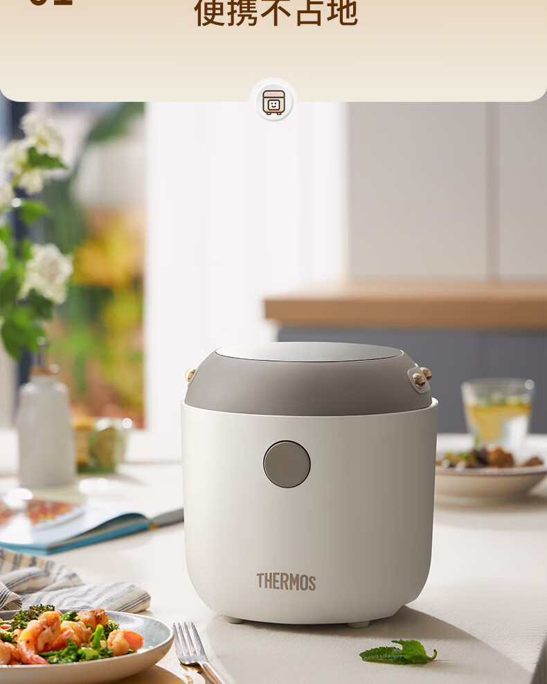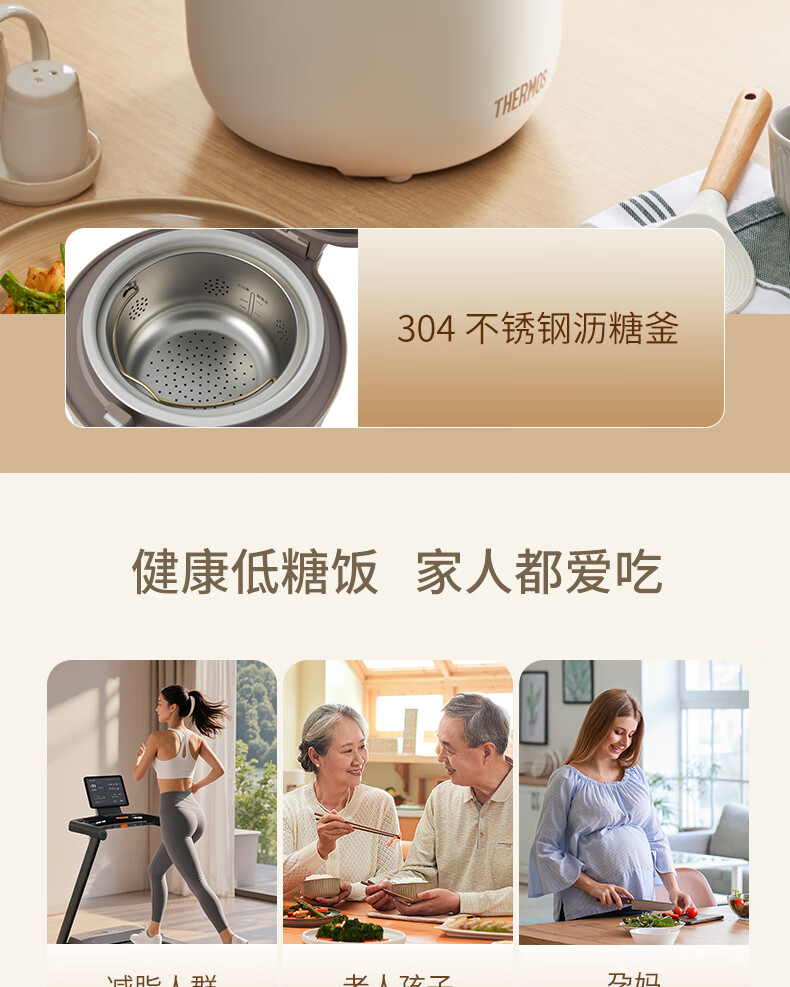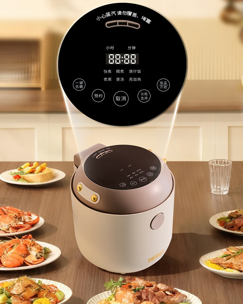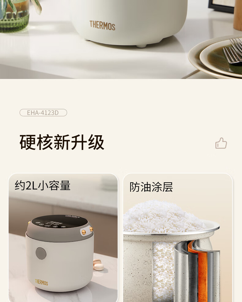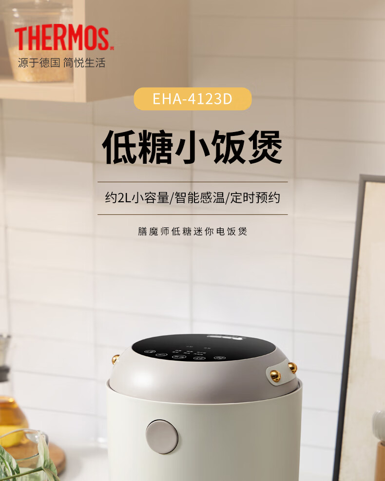 膳魔师(膳魔师)低糖电饭煲 米汤分离 智能电饭煲迷你2-3人小功率煮饭锅宿舍用带预约功能 2L EHA-4123D-W