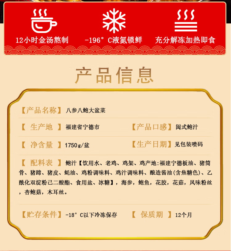 灯火岛佛跳墙八参八鲍大盆菜3斤装 加热即食预制菜方便菜 春节年货送礼 精选食材-八参八鲍大盆菜-1750g