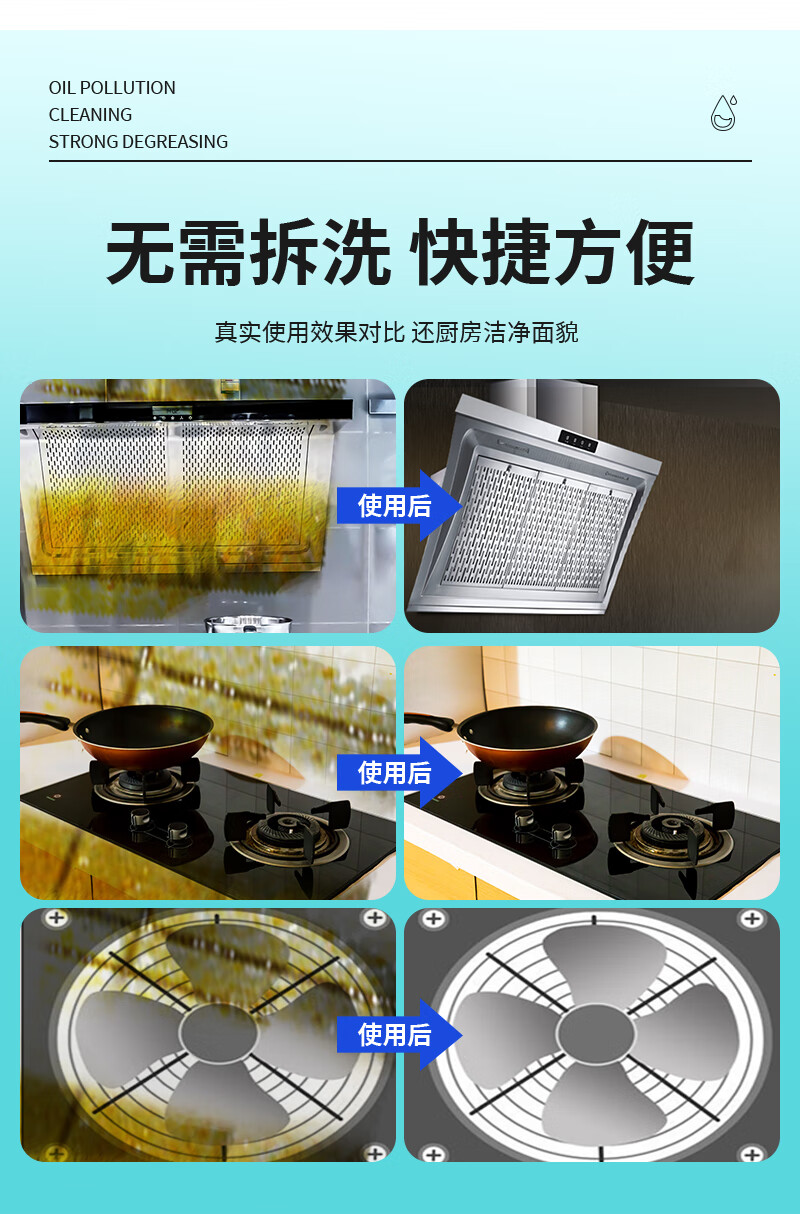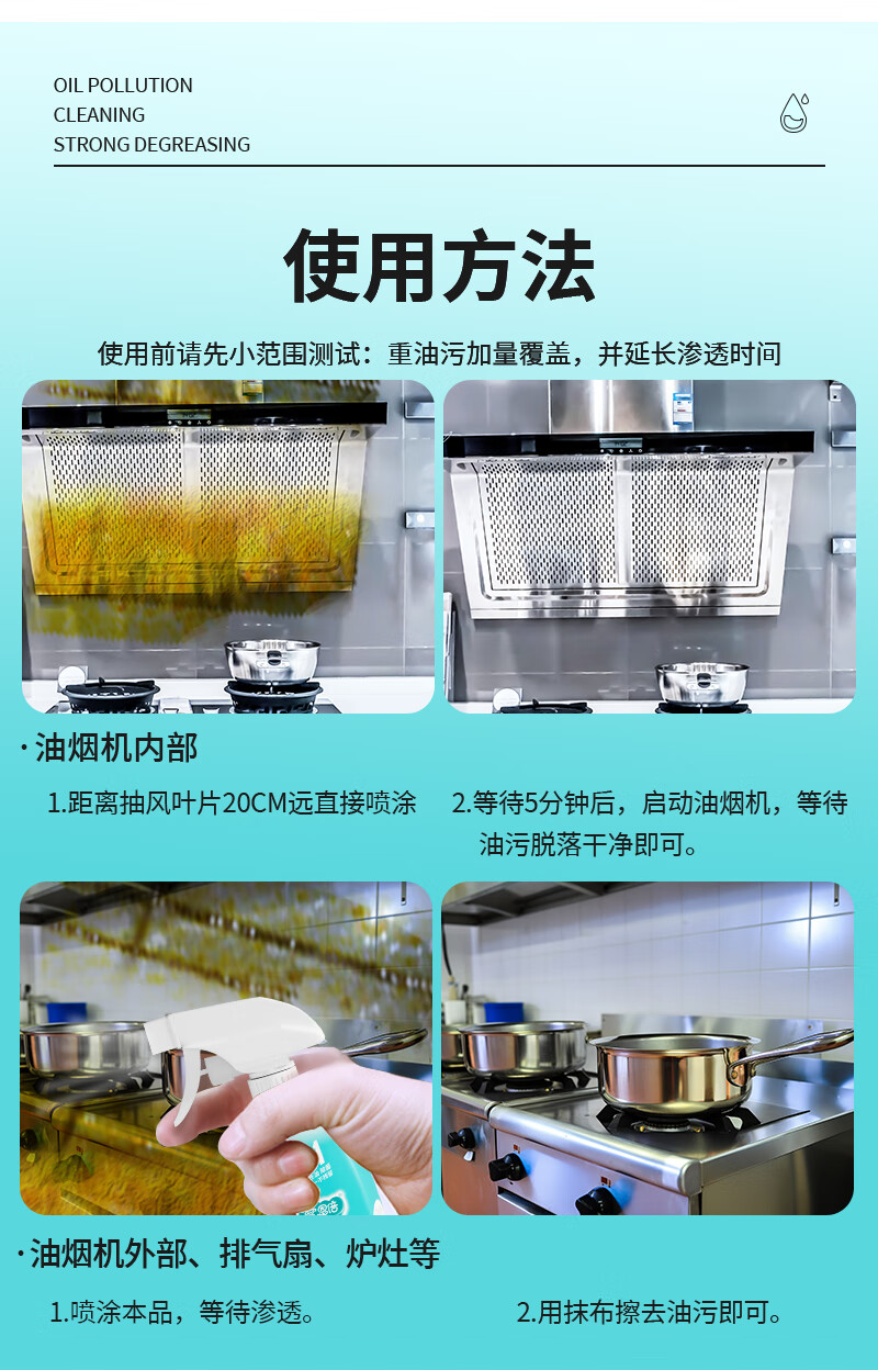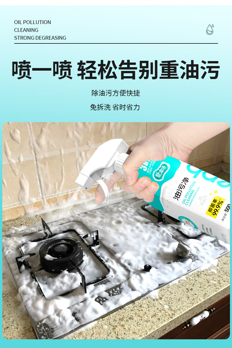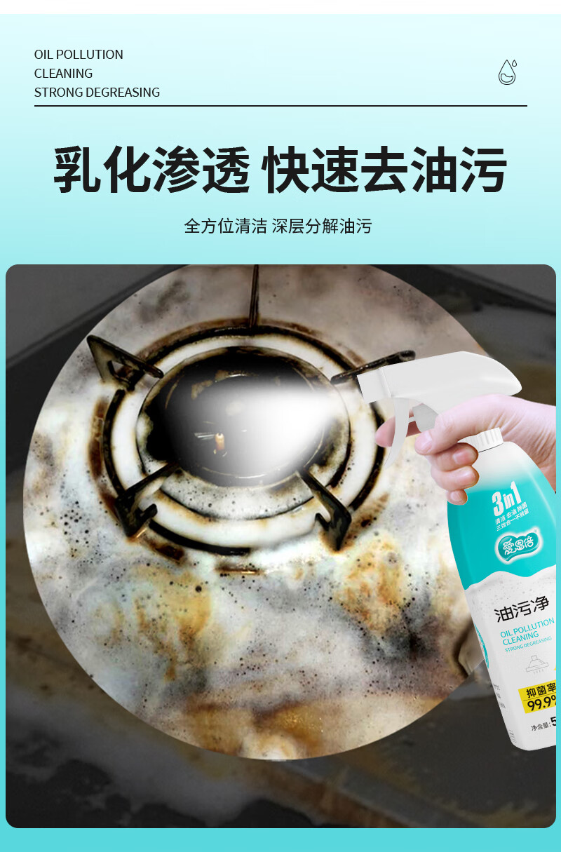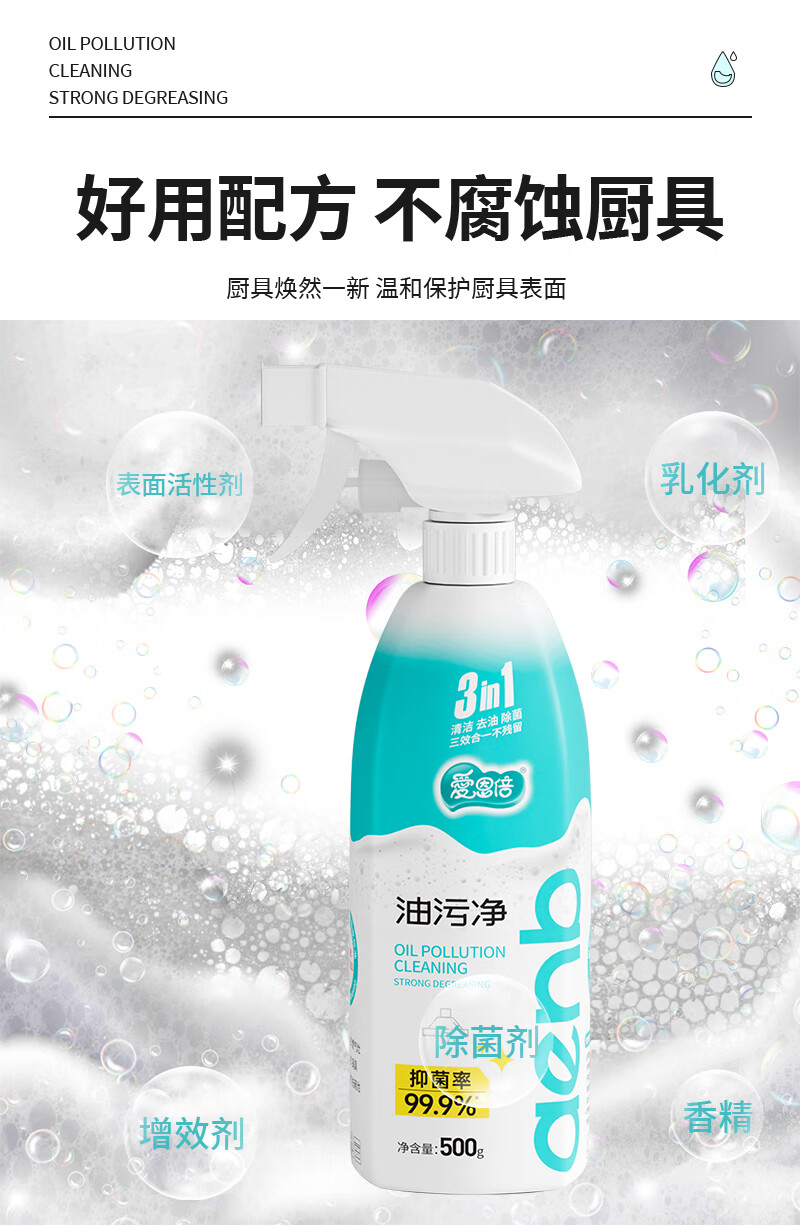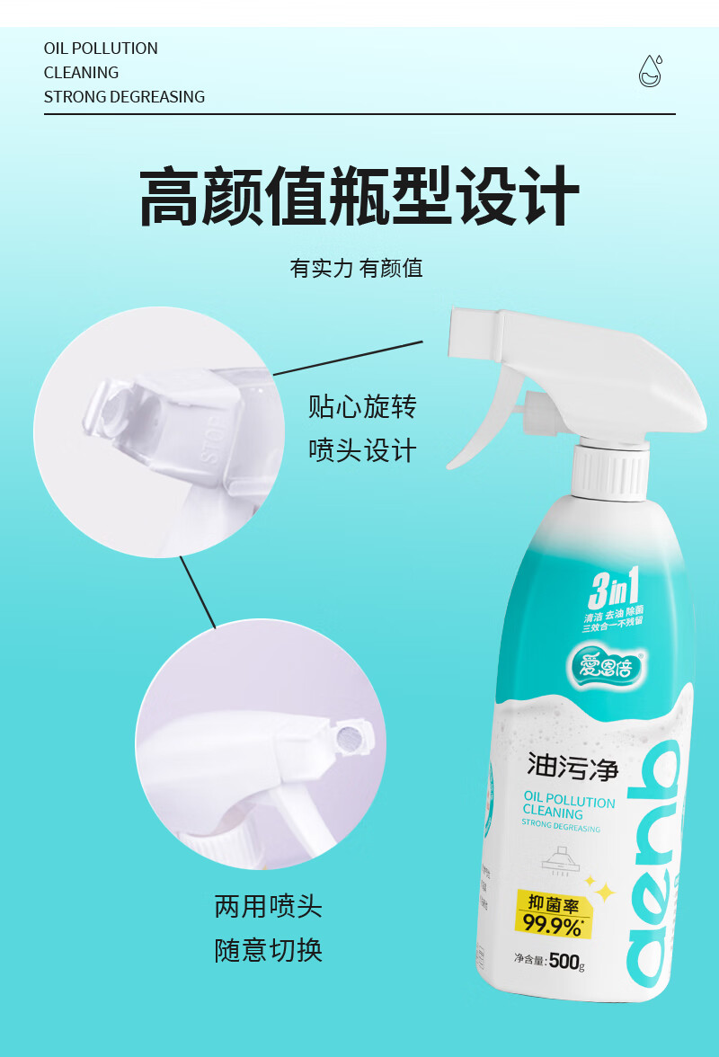 爱恩倍强力去油家用厨房抽油烟机泡沫喷头油污净去污除垢清洁剂 1个喷头+ 500g*3瓶