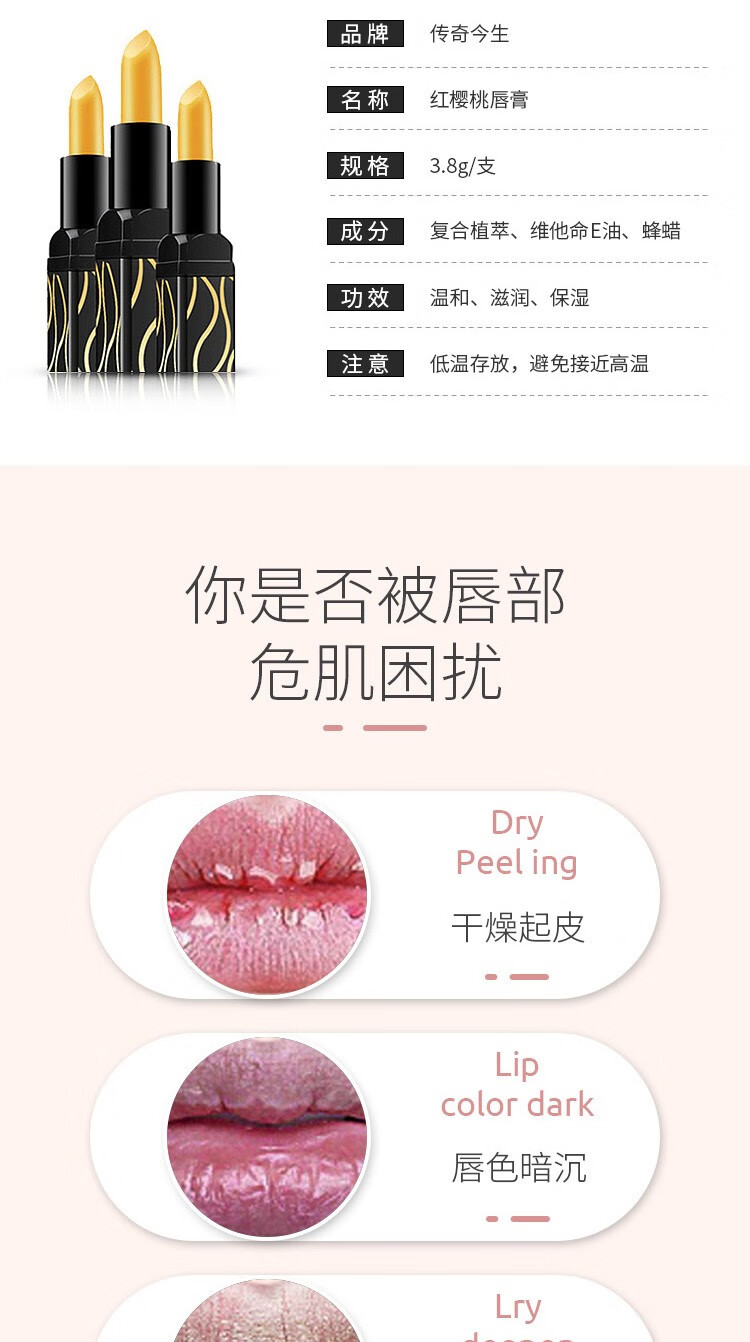 传奇今生唇膏专柜红樱桃唇膏不易掉色不易沾杯 变色唇膏送女友情人节礼物 2支装/礼盒