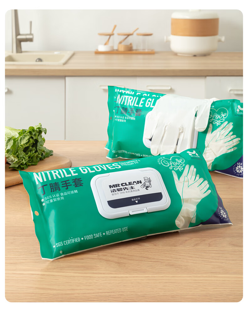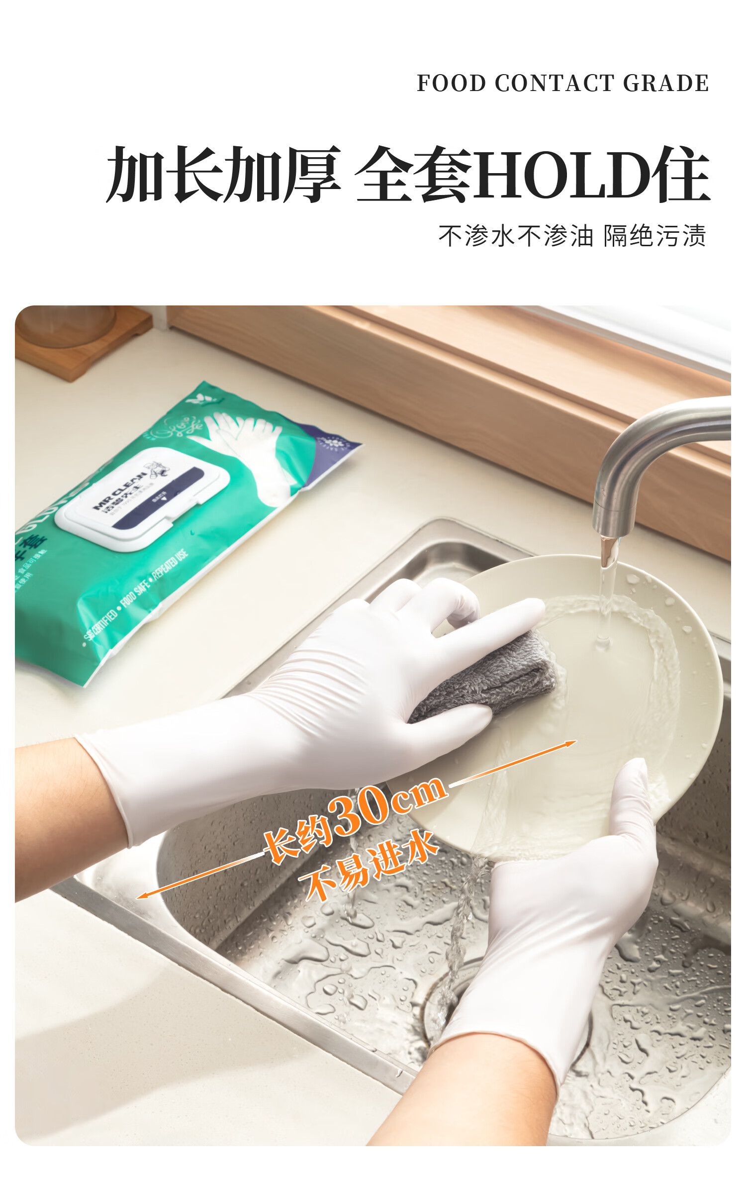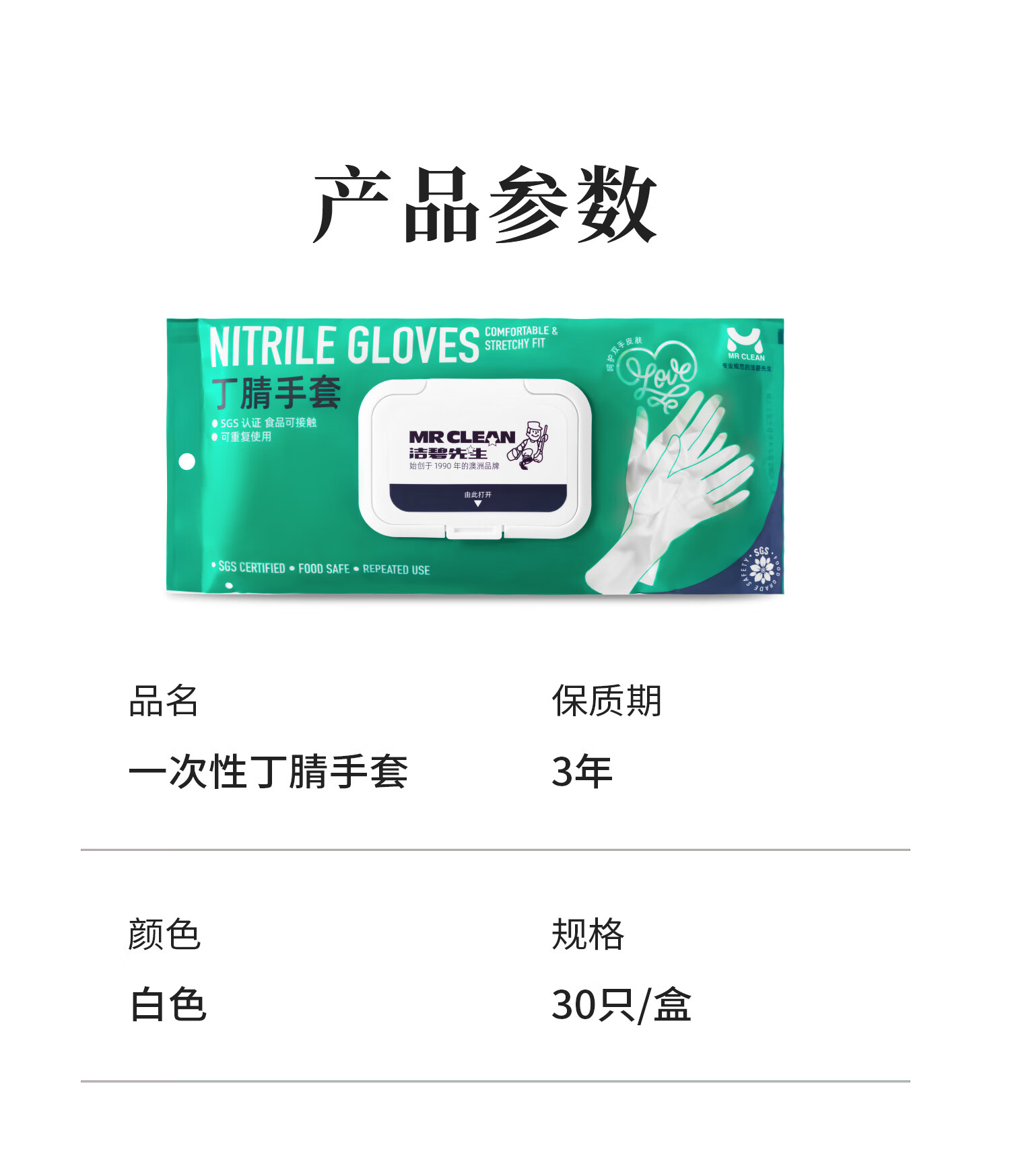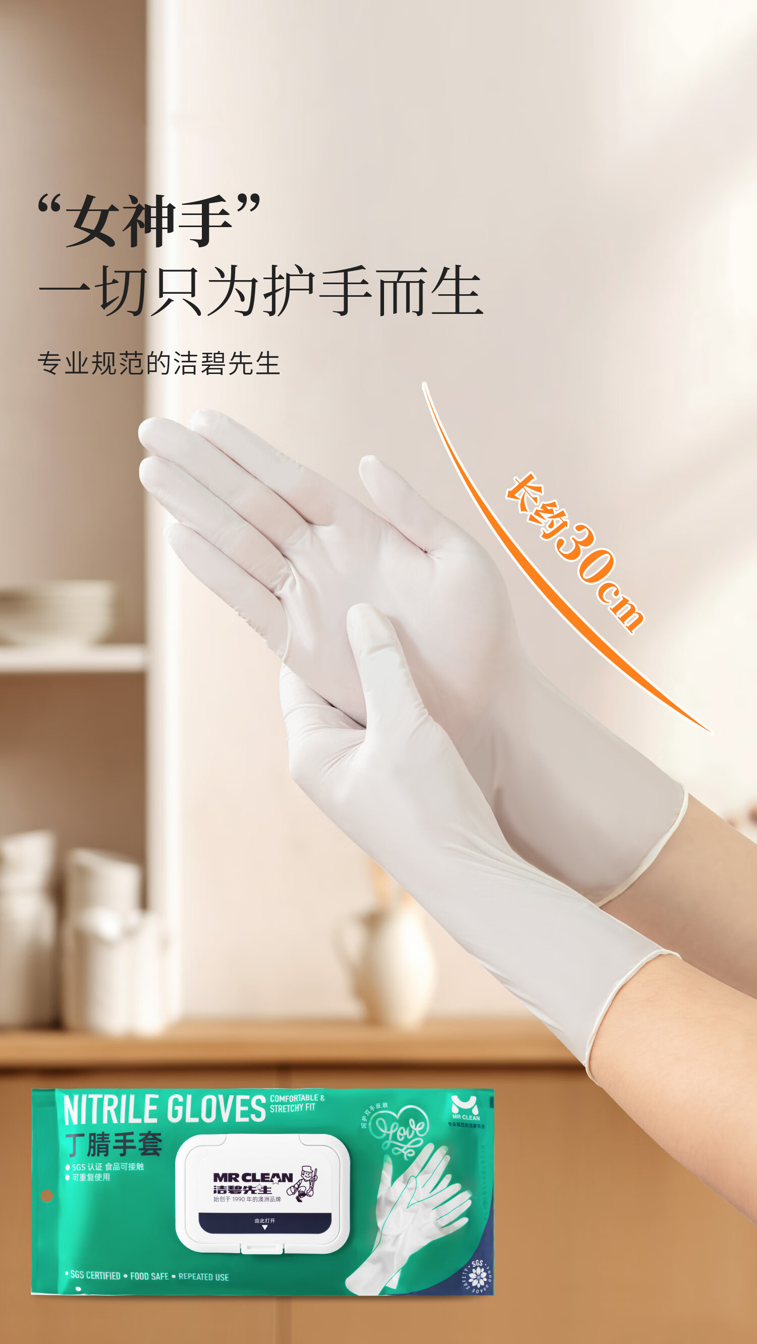 洁碧先生一次性丁腈手套食品级家务洗碗厨房清洁加长耐用餐饮防水防油手套 M码 30只装 【食品可接触】
