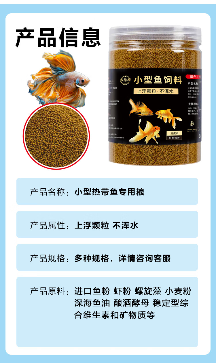 多维檬小型鱼通用高蛋白鱼食孔雀鱼斑马饲料斗鱼观赏鱼粮 1.0mm【8-15cm鱼体】 150mL
