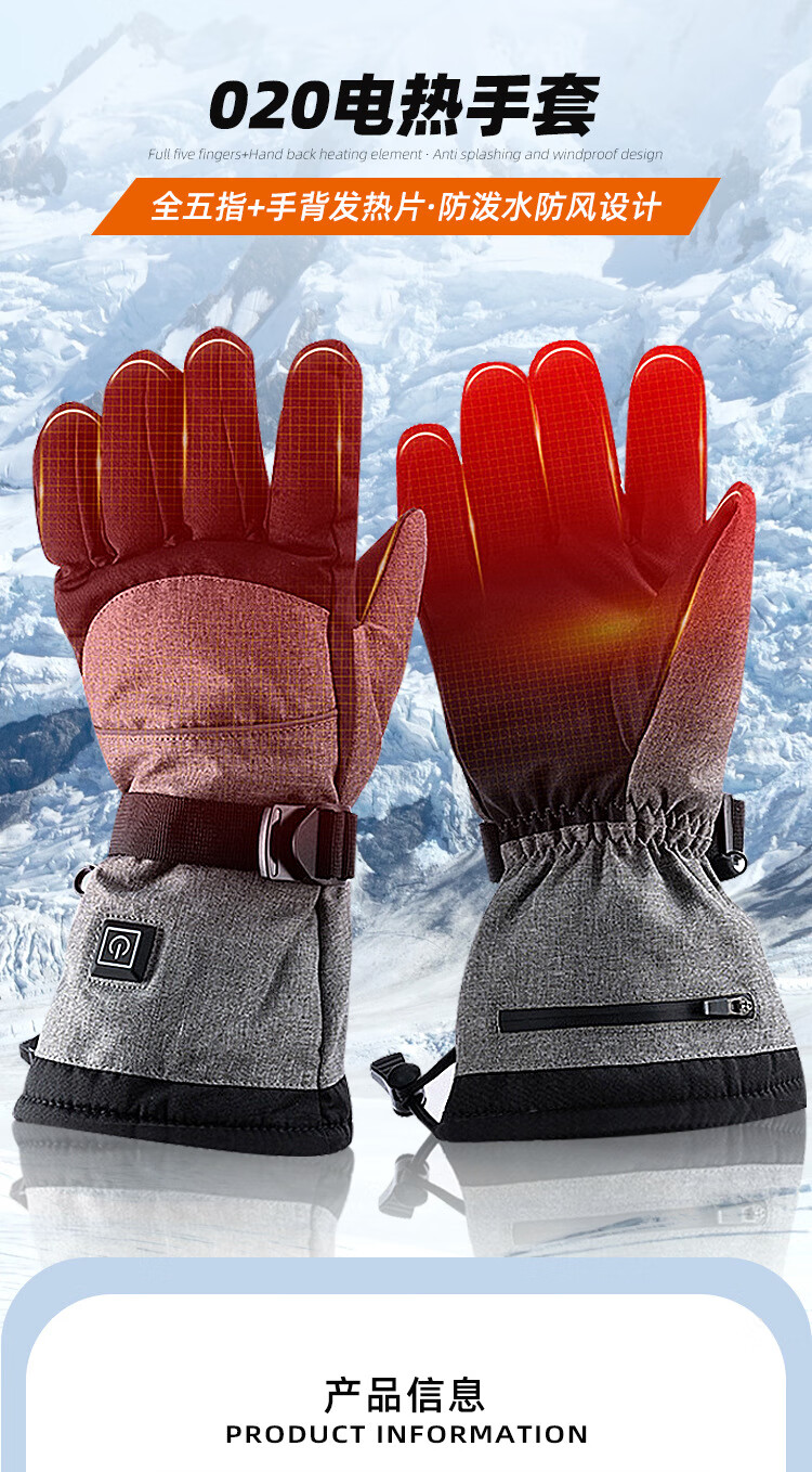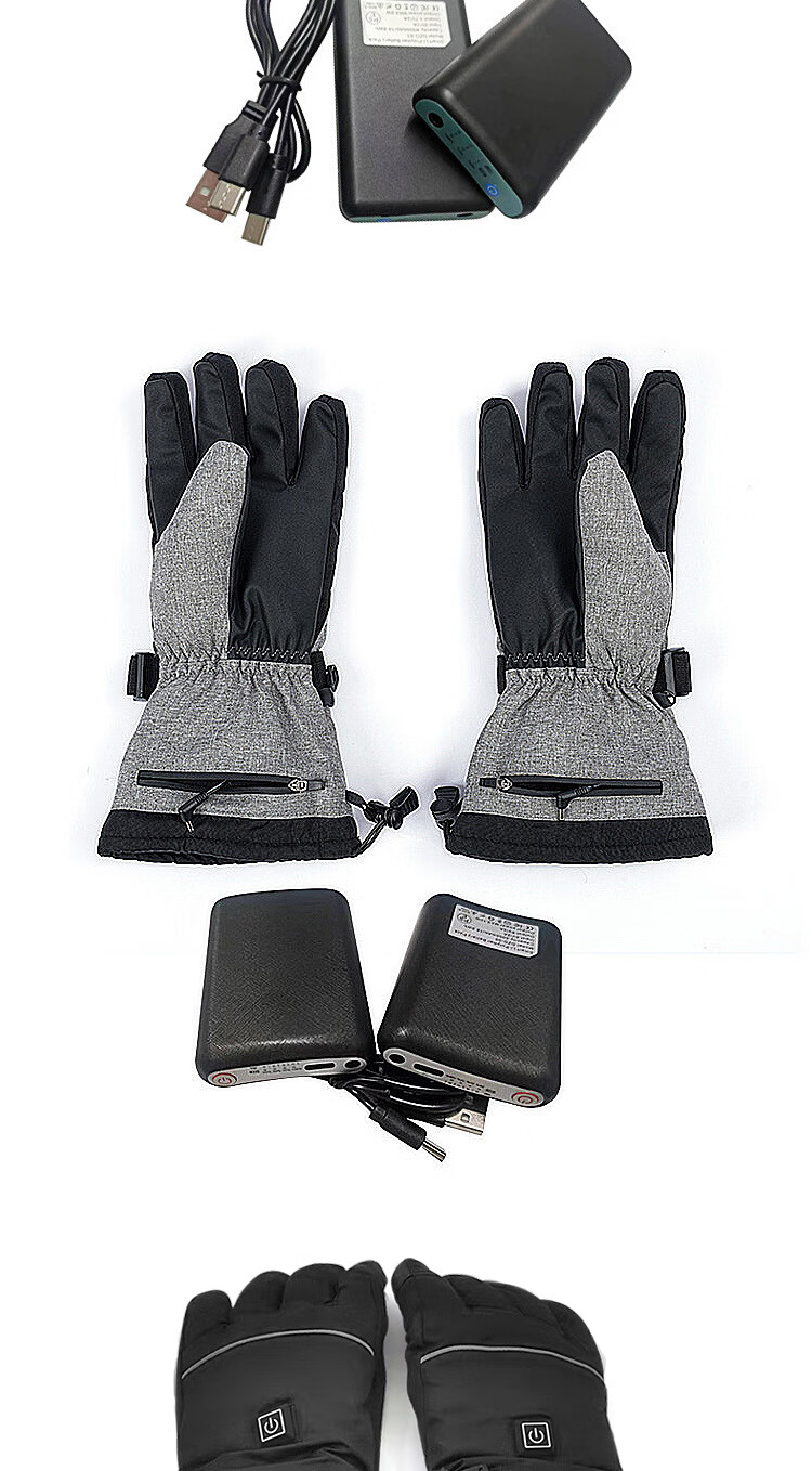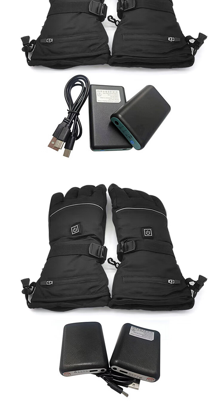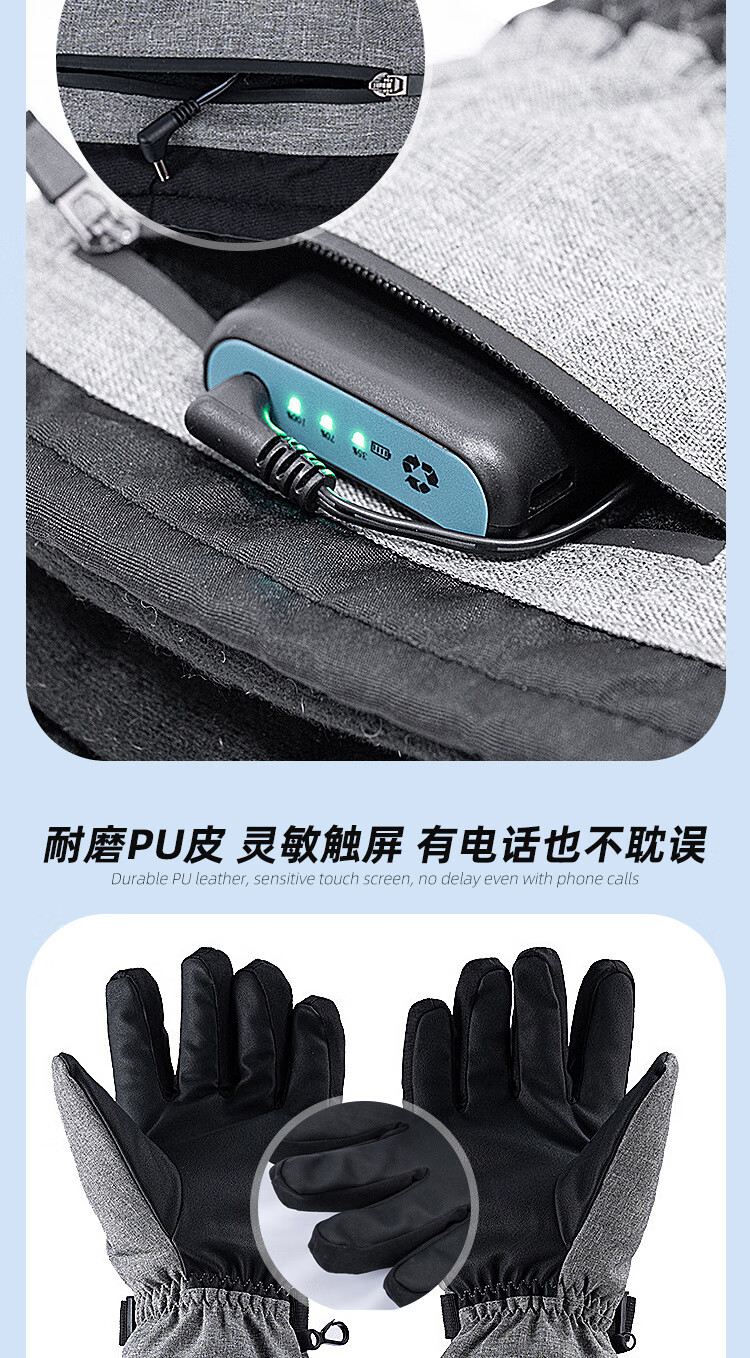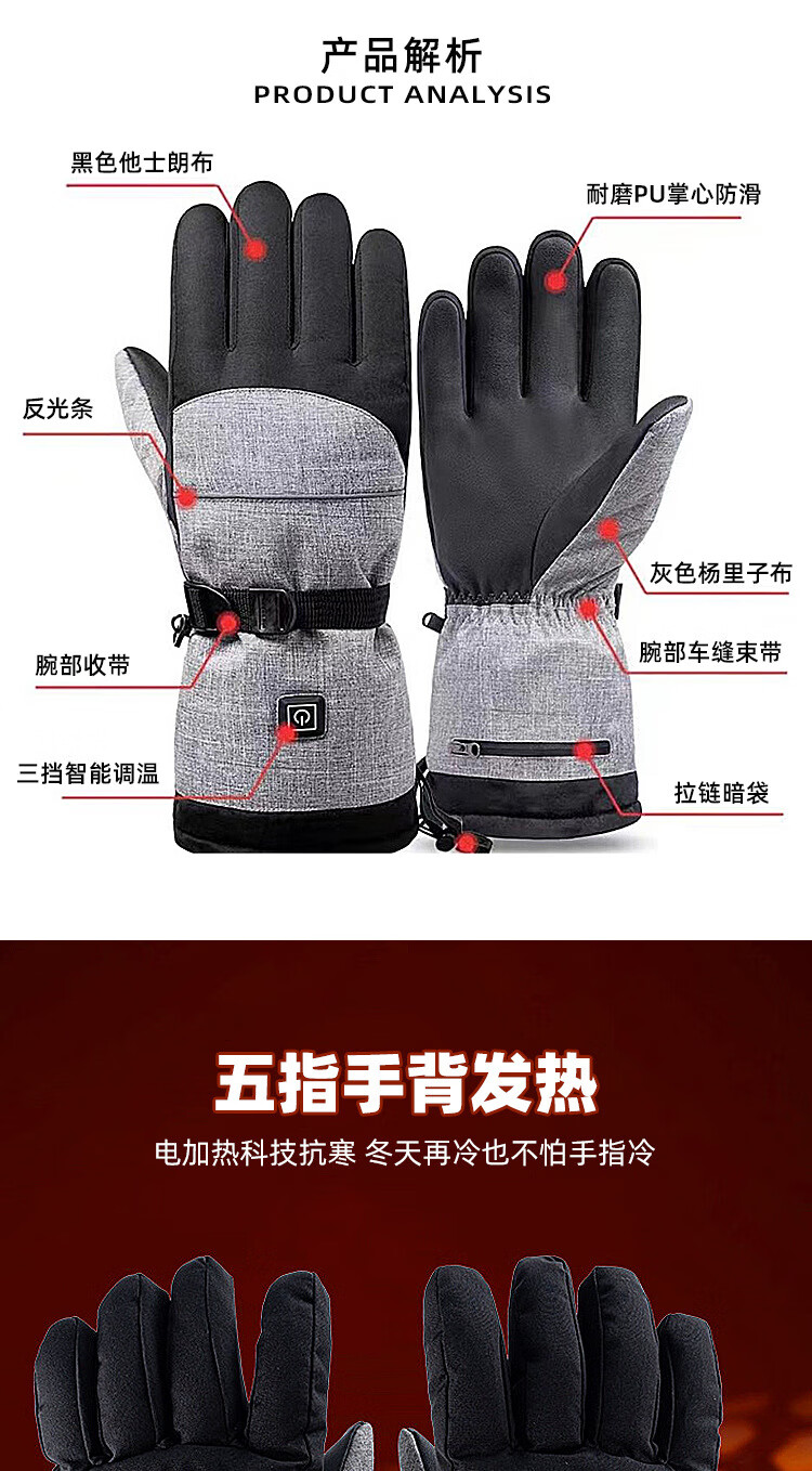 PICTURE法国进口智能三档控温电热冬季骑行保暖手套户外运动电加滑雪手套 黑色均码(5000毫安)
