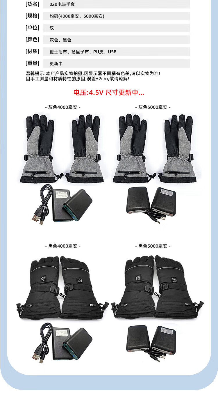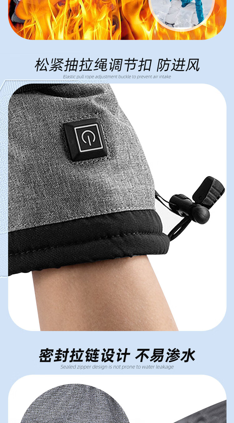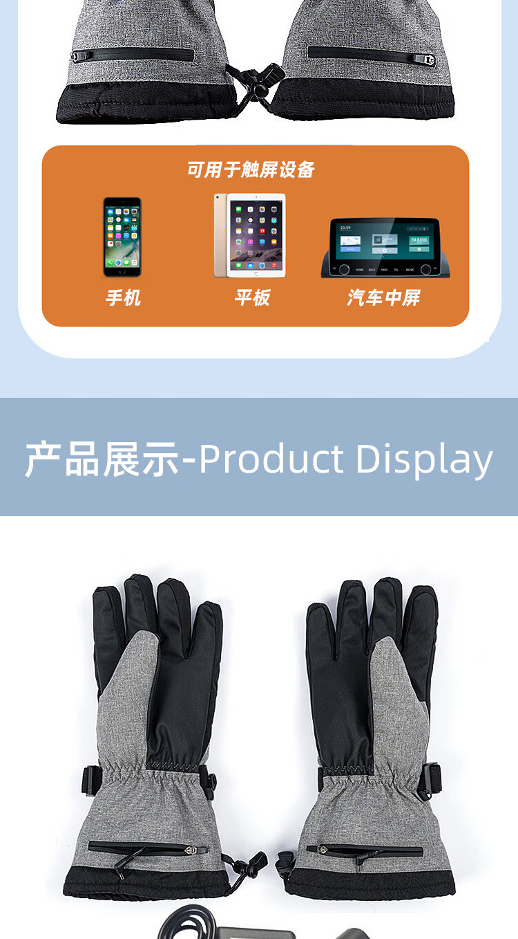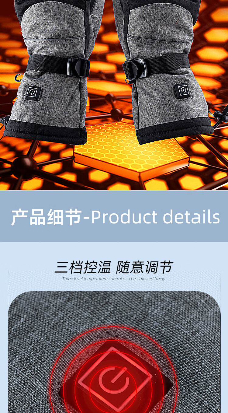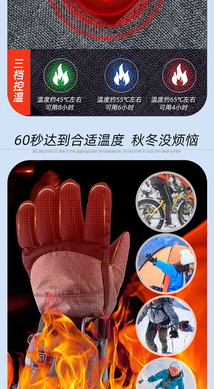 PICTURE法国进口智能三档控温电热冬季骑行保暖手套户外运动电加滑雪手套 黑色均码(5000毫安)