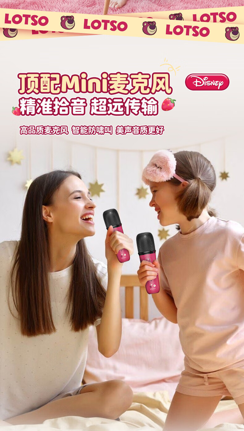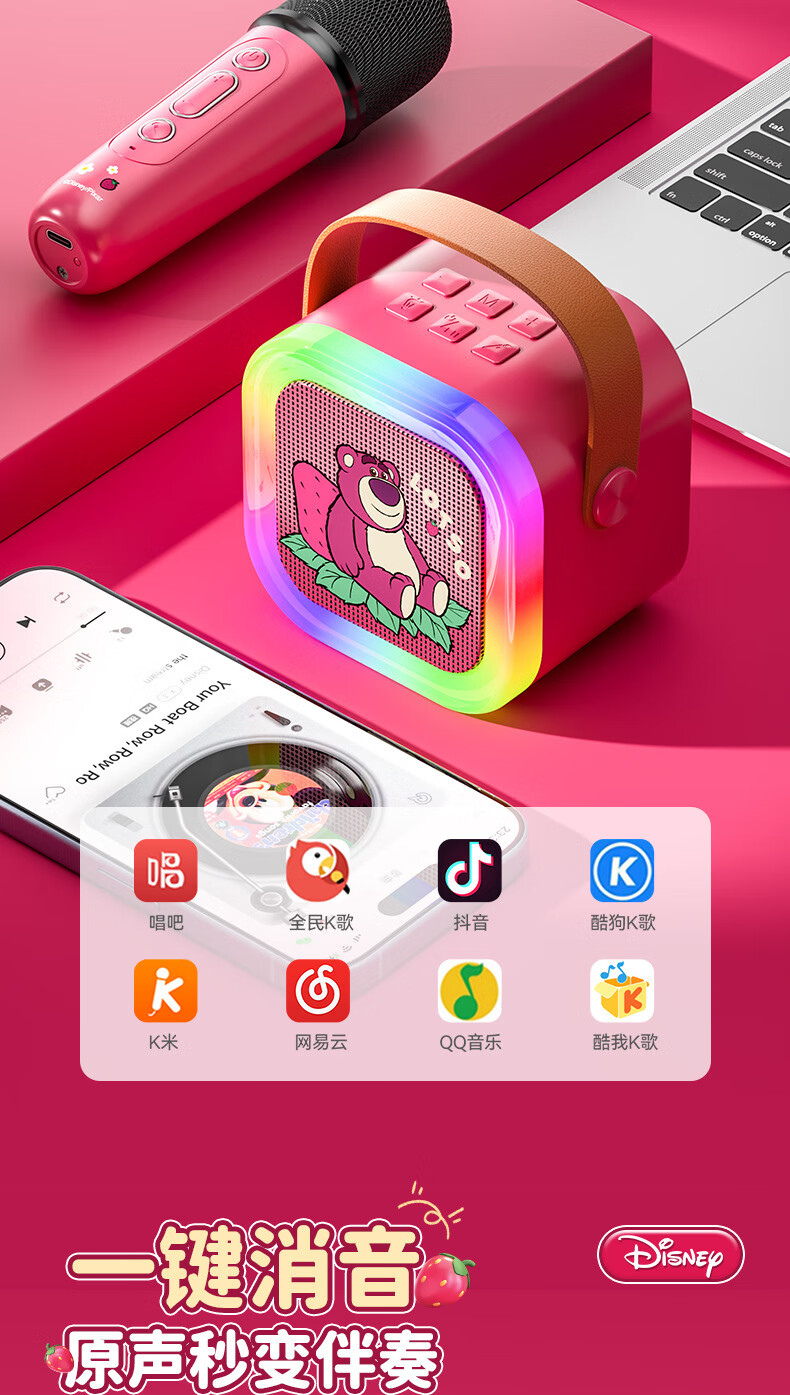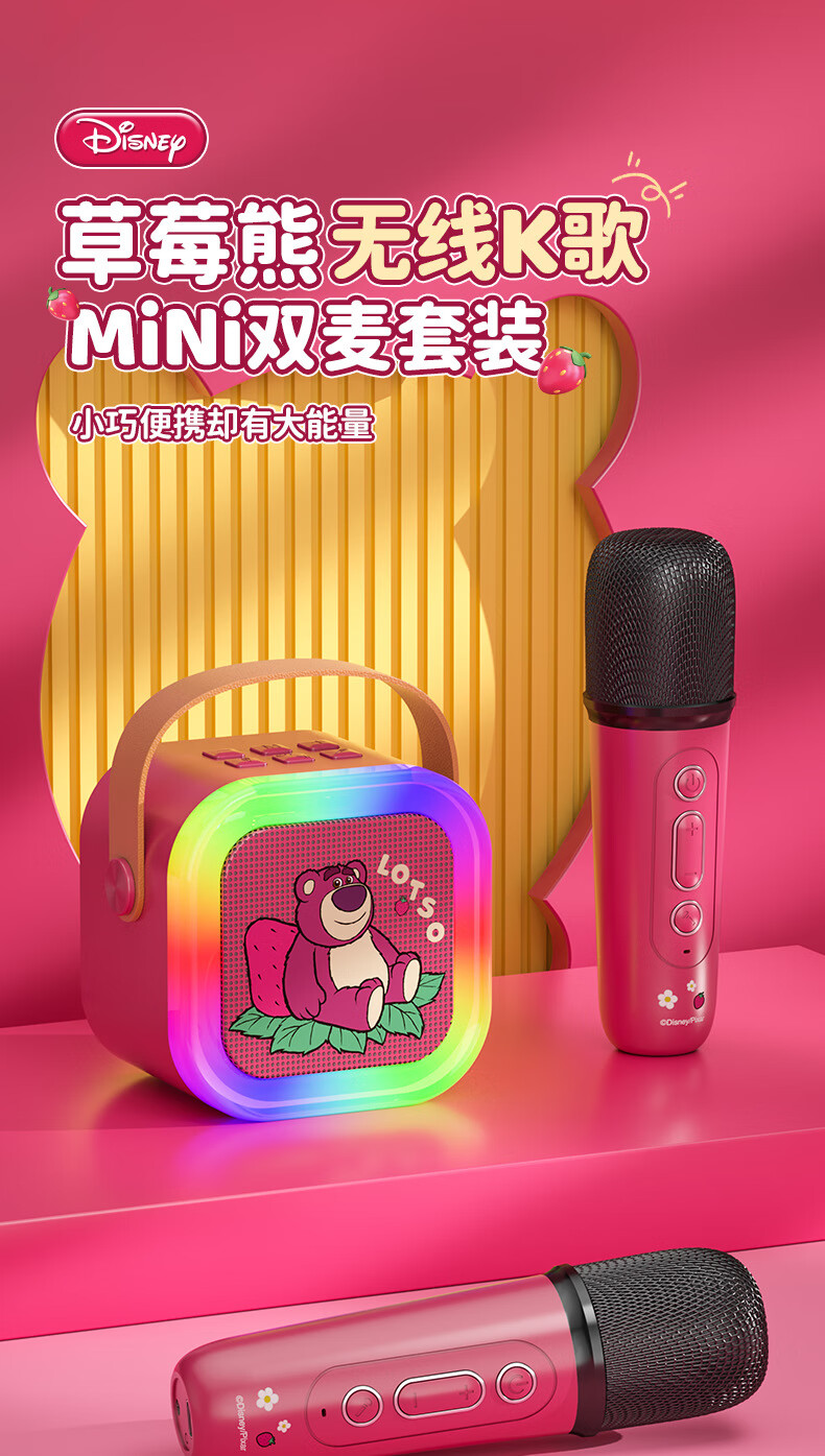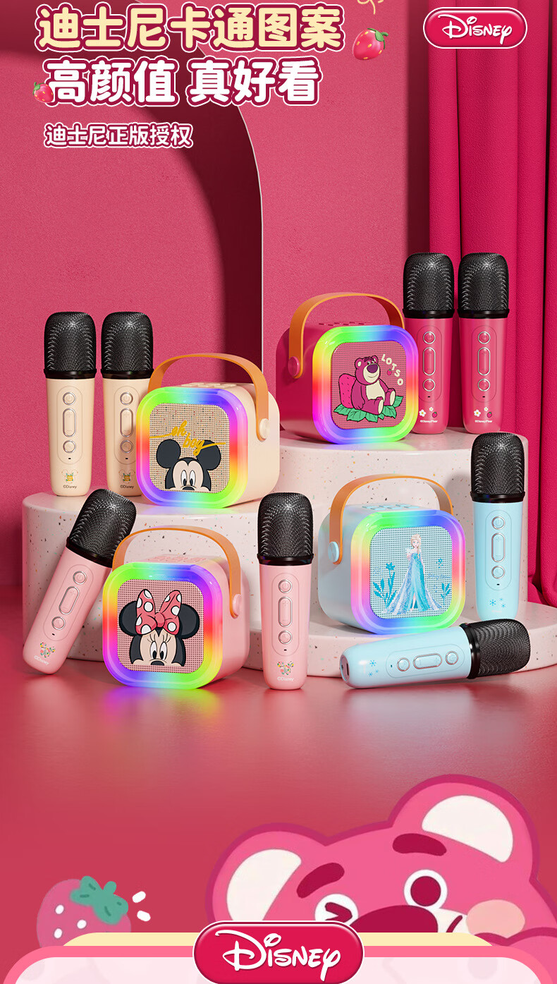 迪士尼无线蓝牙音响话筒一体麦克风生日礼物音乐播放器家用唱歌音箱迷你户外便携k歌神器 【米妮】双麦嗨唱礼盒装