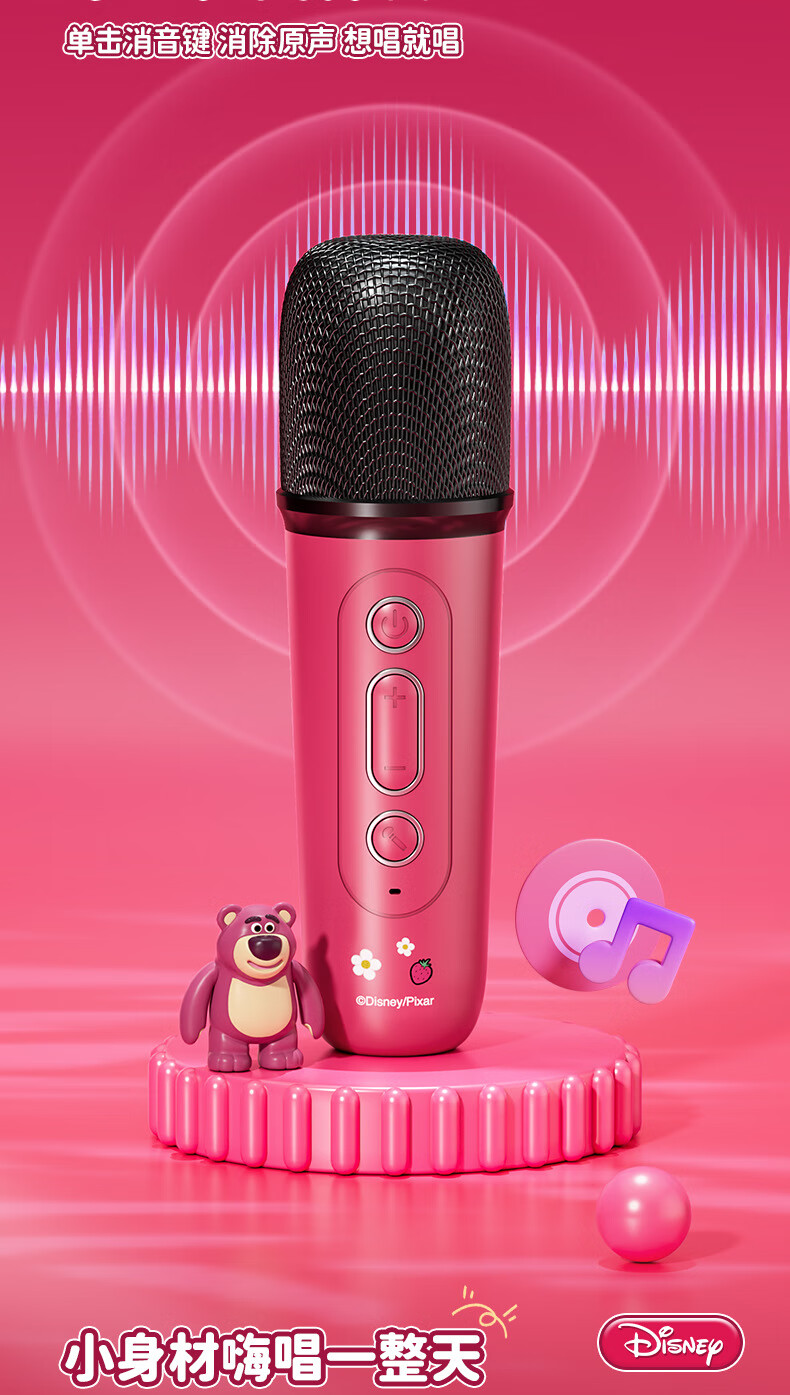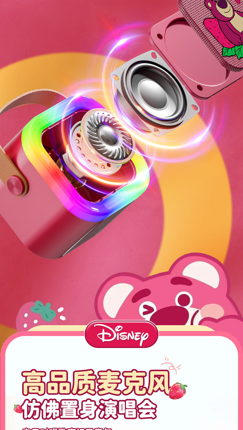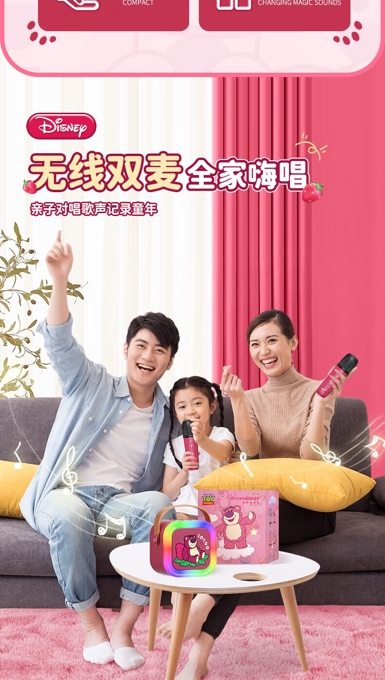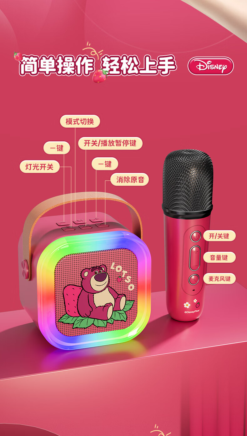迪士尼无线蓝牙音响话筒一体麦克风生日礼物音乐播放器家用唱歌音箱迷你户外便携k歌神器 【米妮】双麦嗨唱礼盒装