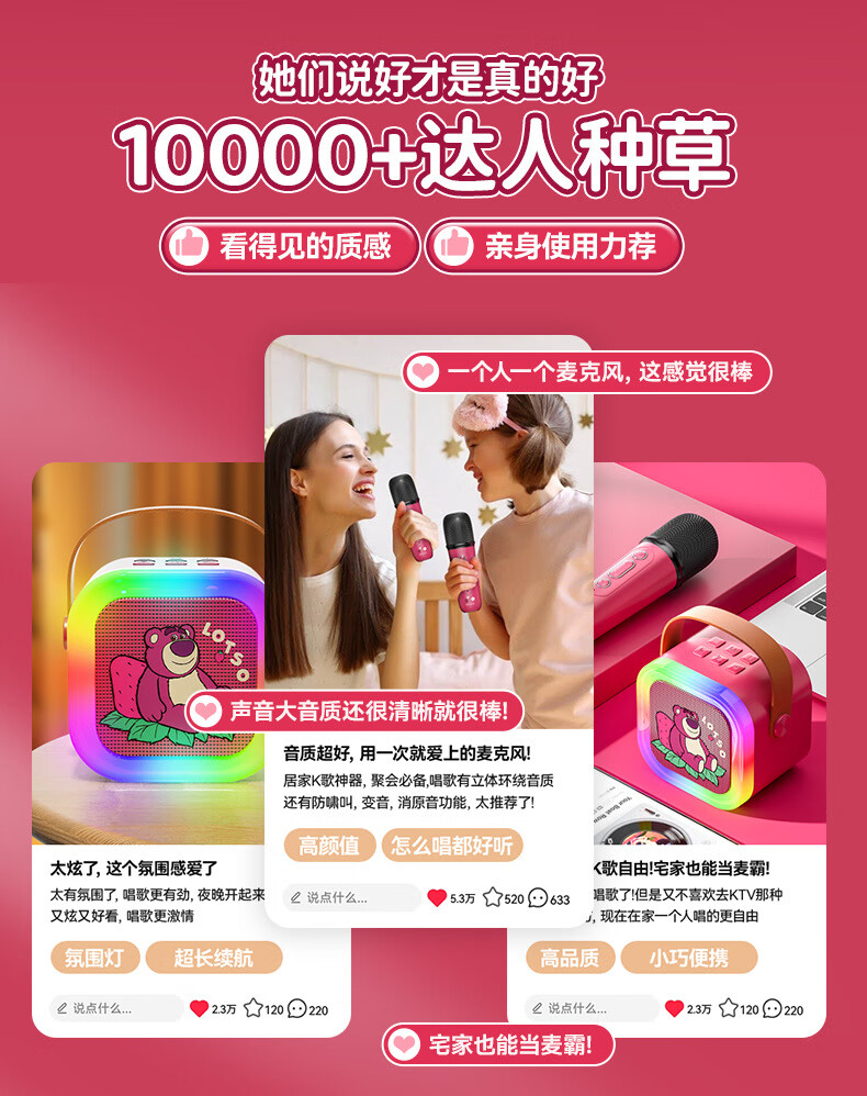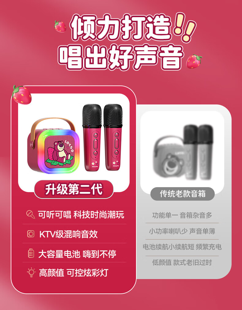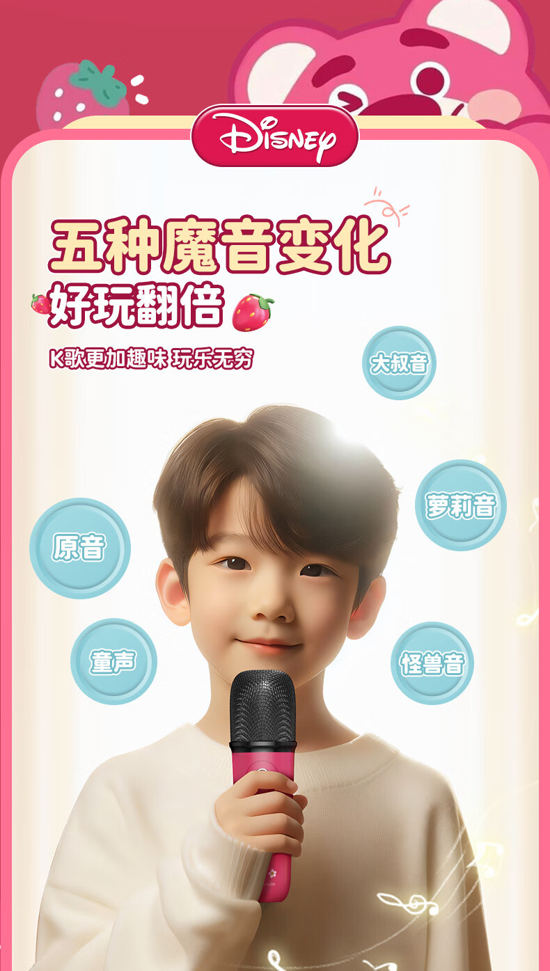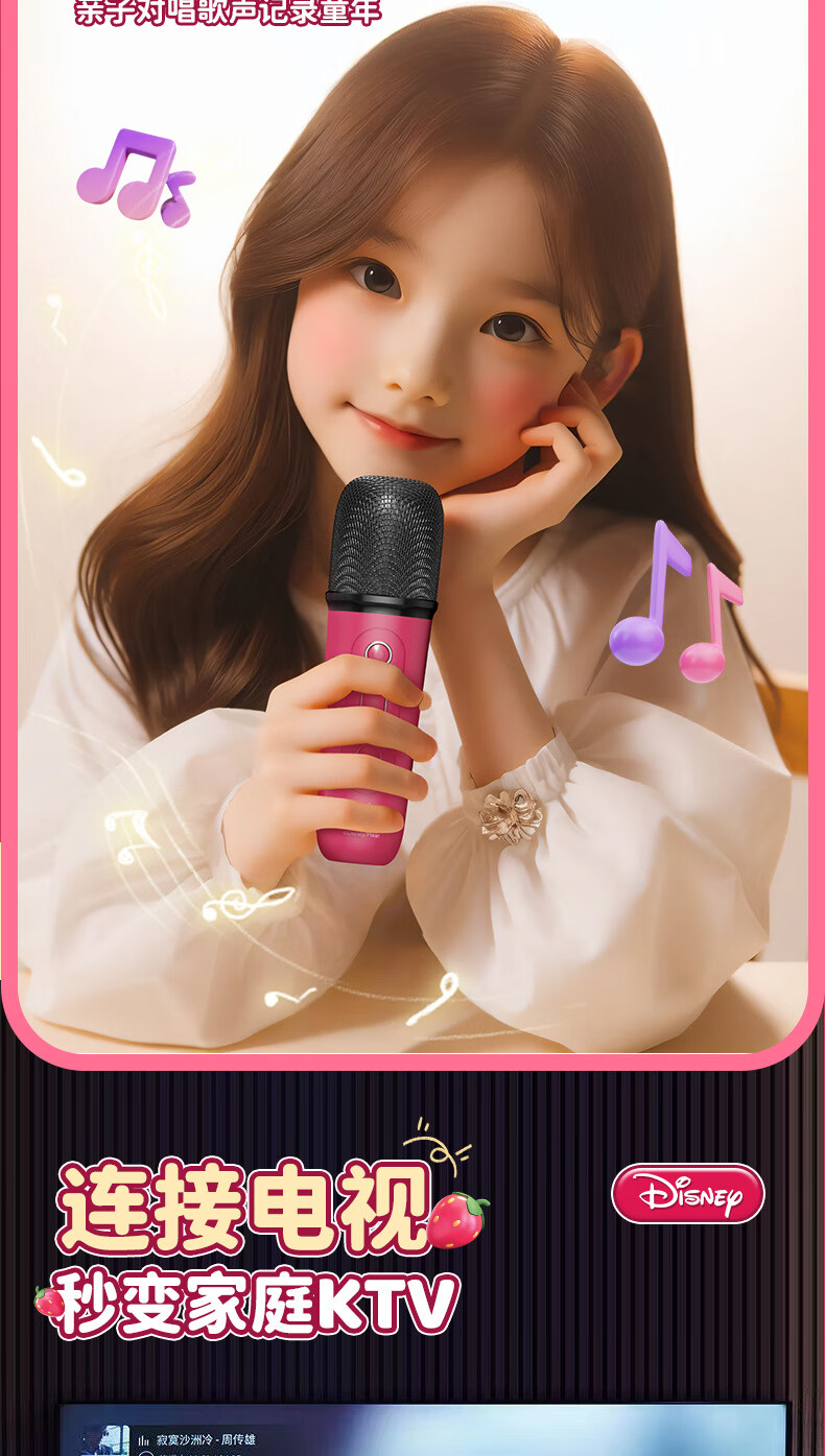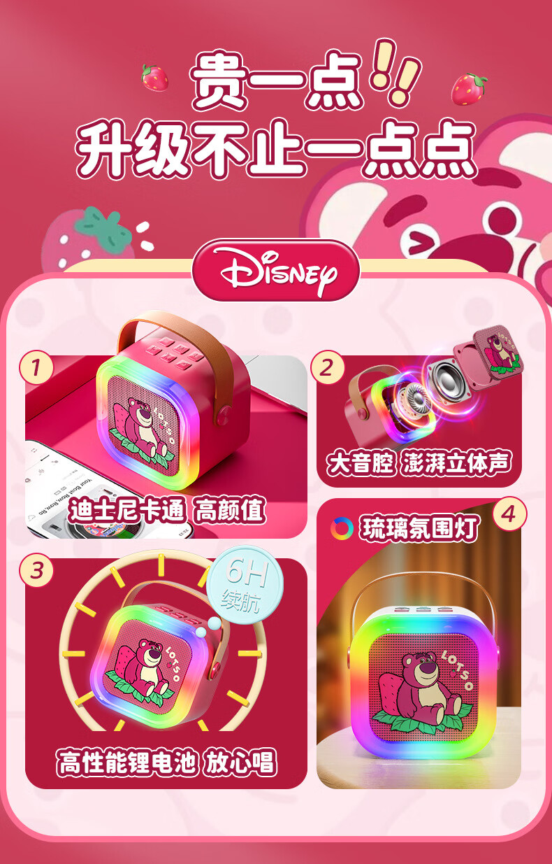 迪士尼无线蓝牙音响话筒一体麦克风生日礼物音乐播放器家用唱歌音箱迷你户外便携k歌神器 【米妮】双麦嗨唱礼盒装