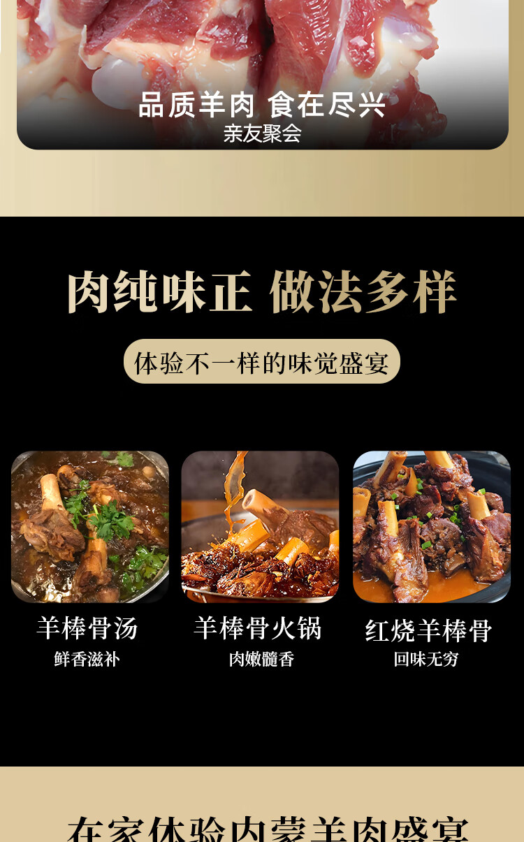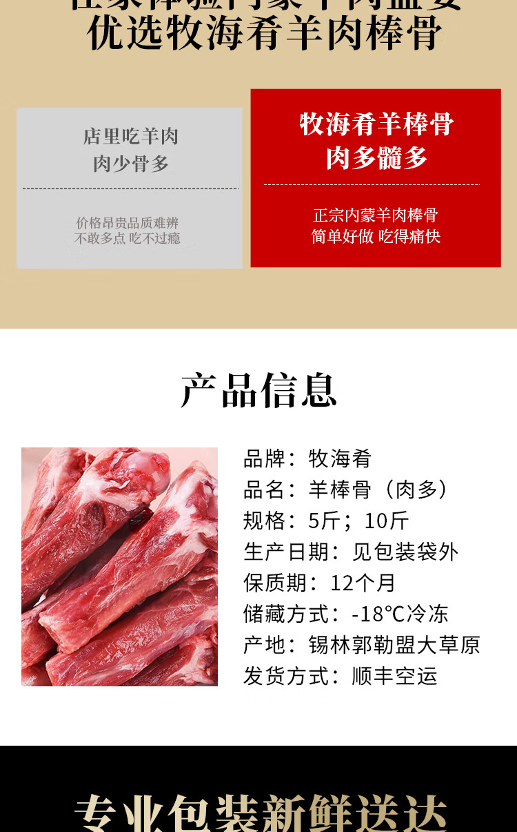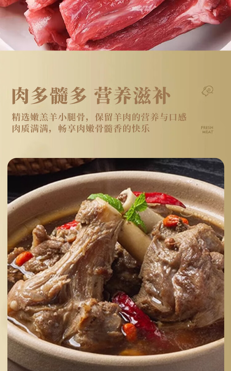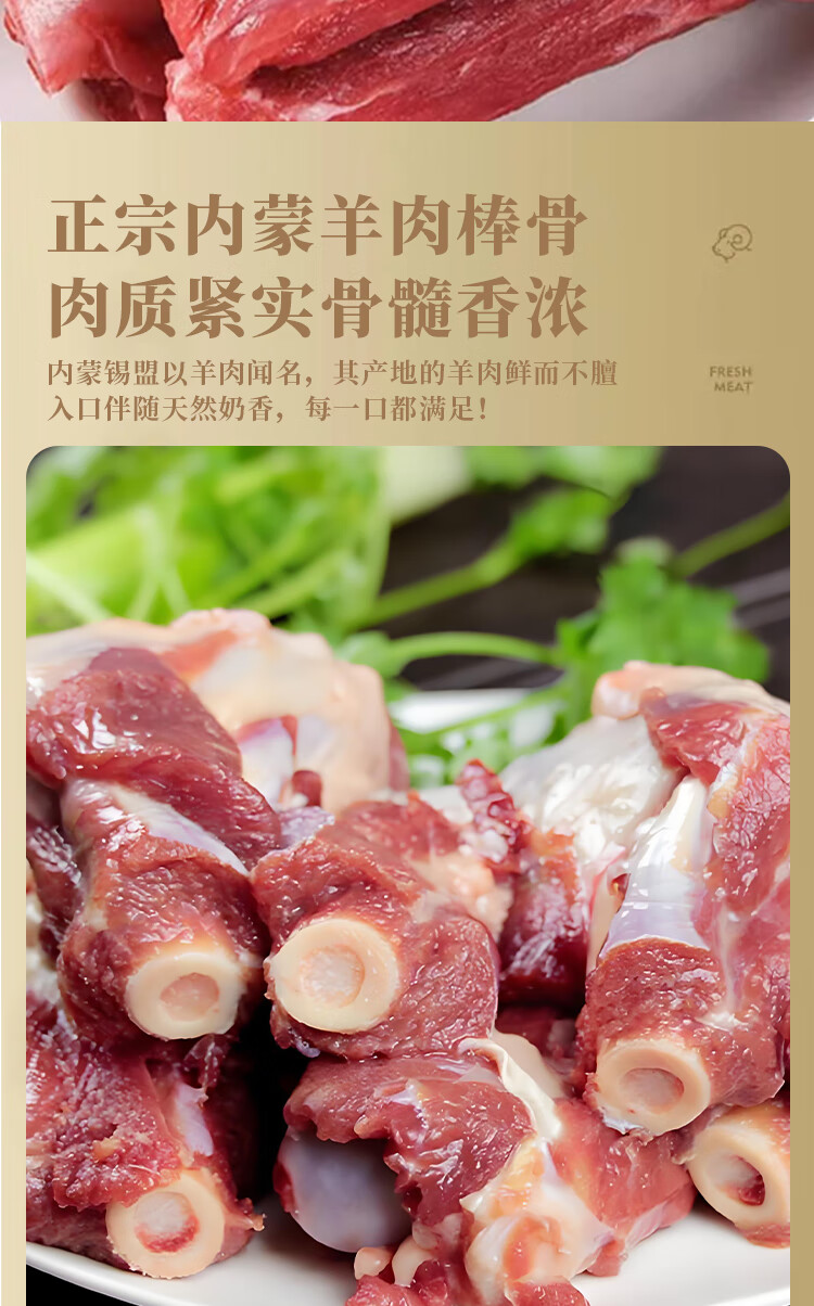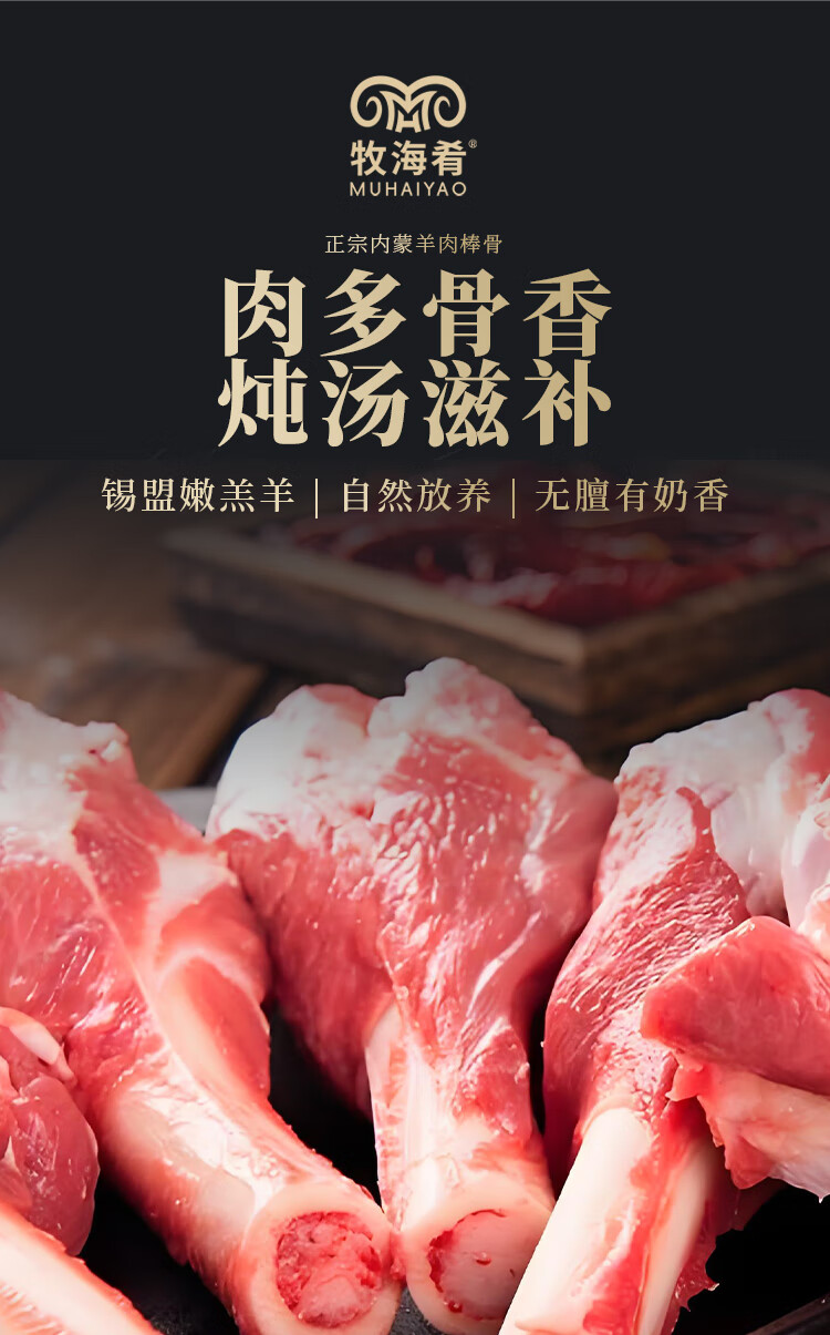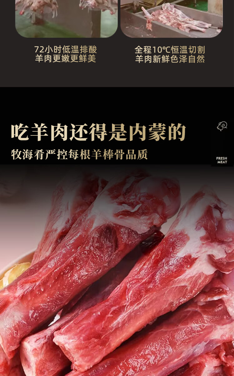 牧海肴原切羊棒骨新鲜带肉骨髓羊拐筋中段多肉筒子骨内蒙生鲜清真肉棒骨 多肉羊棒骨8斤