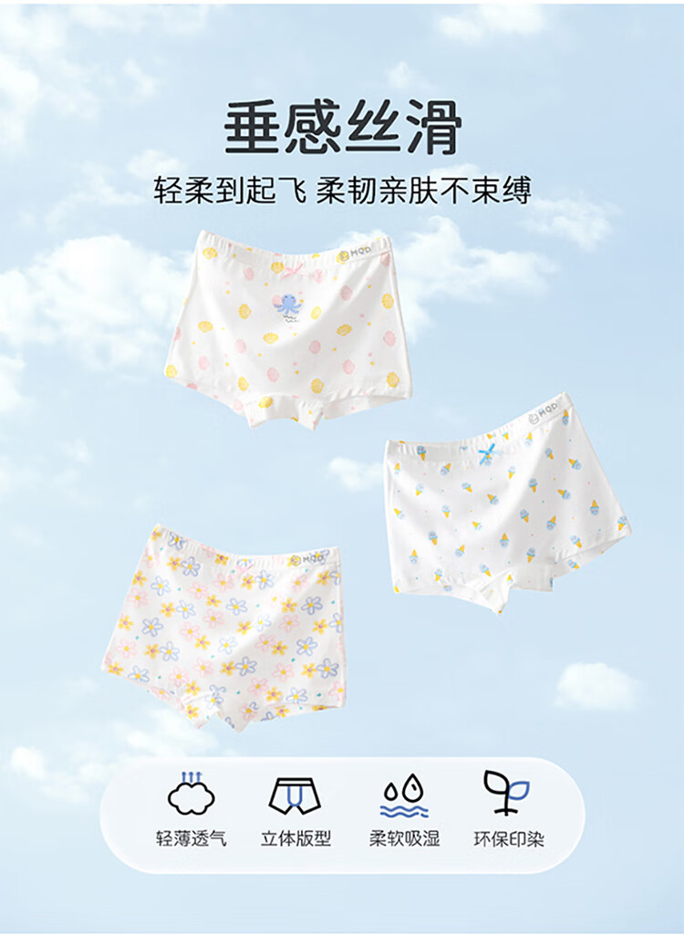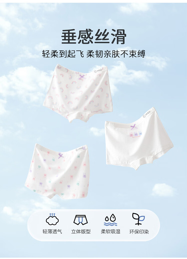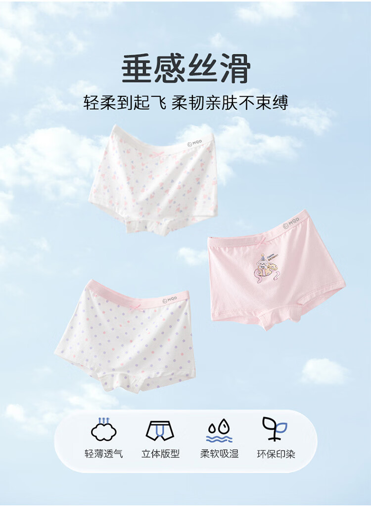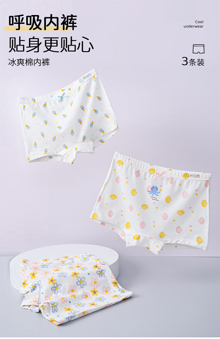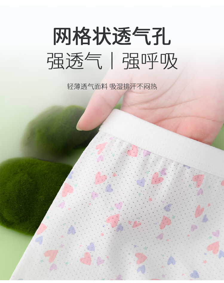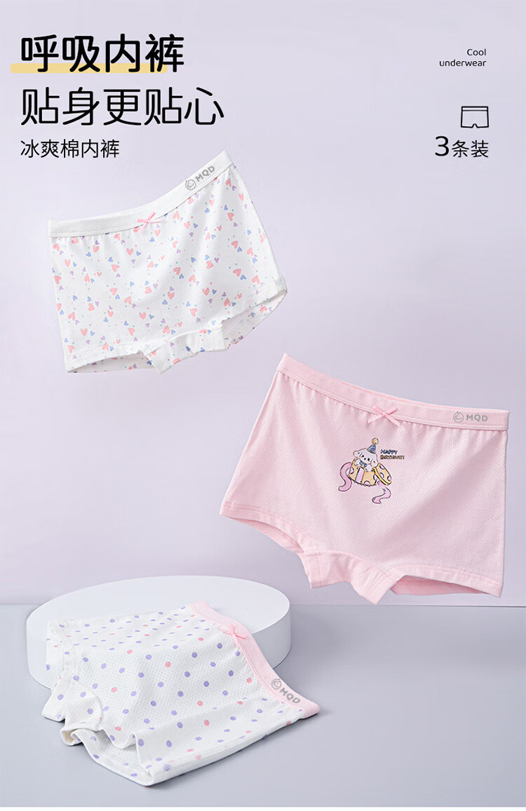 马骑顿童装女童内裤平角网眼透气夏季薄款儿童抗菌四角裤女孩短裤 爱心小狗; 3条 150cm 150/75
