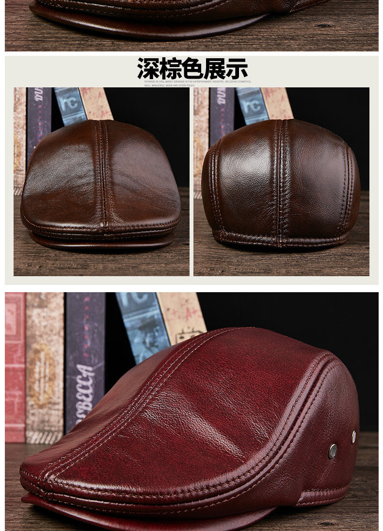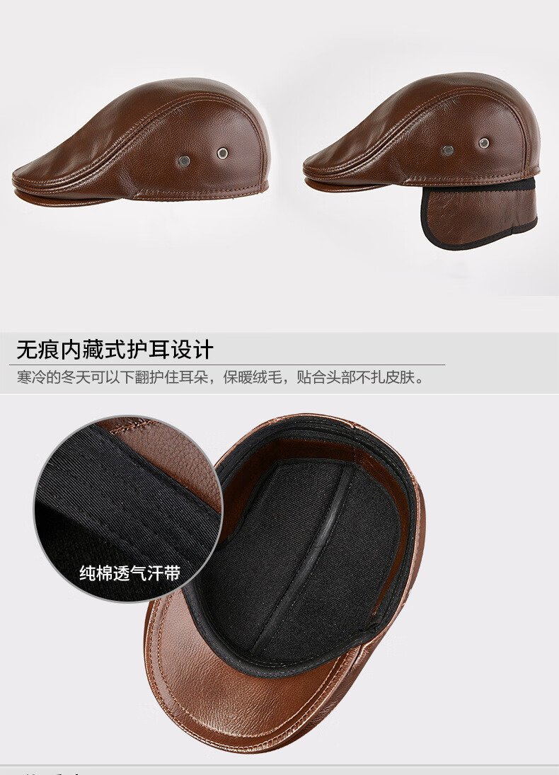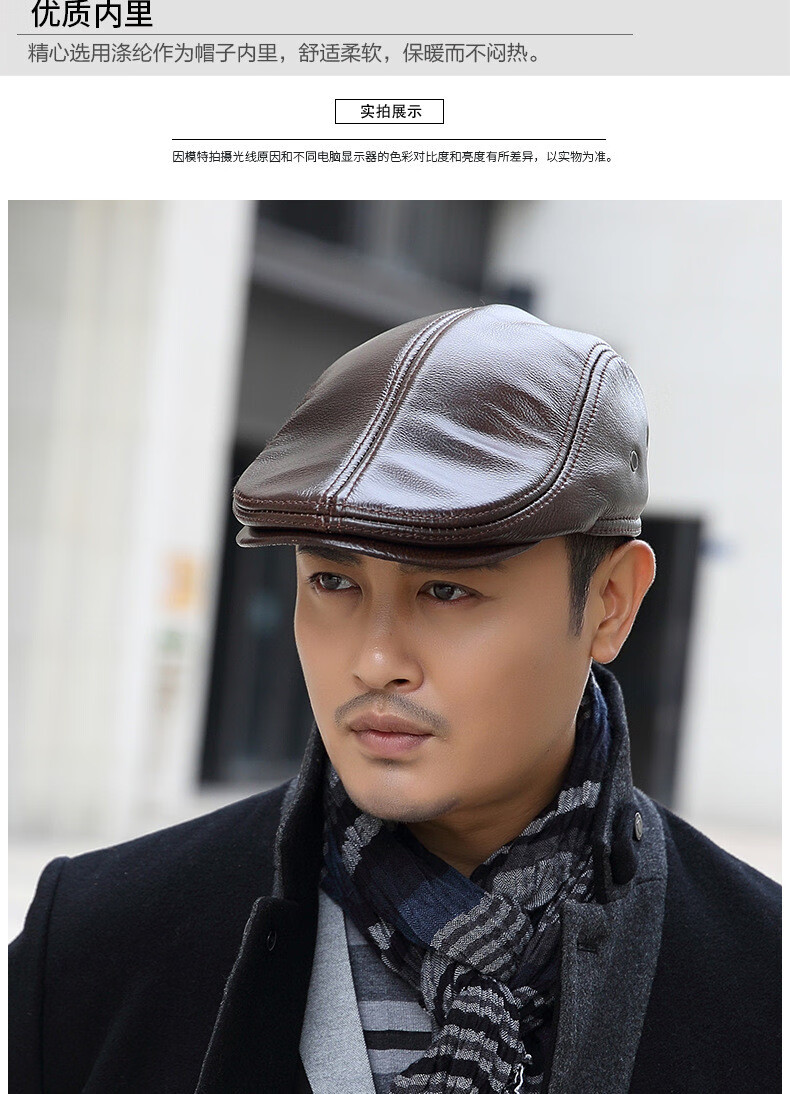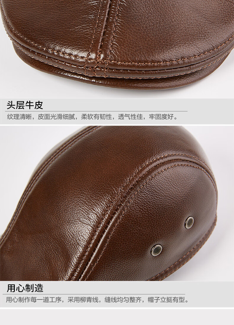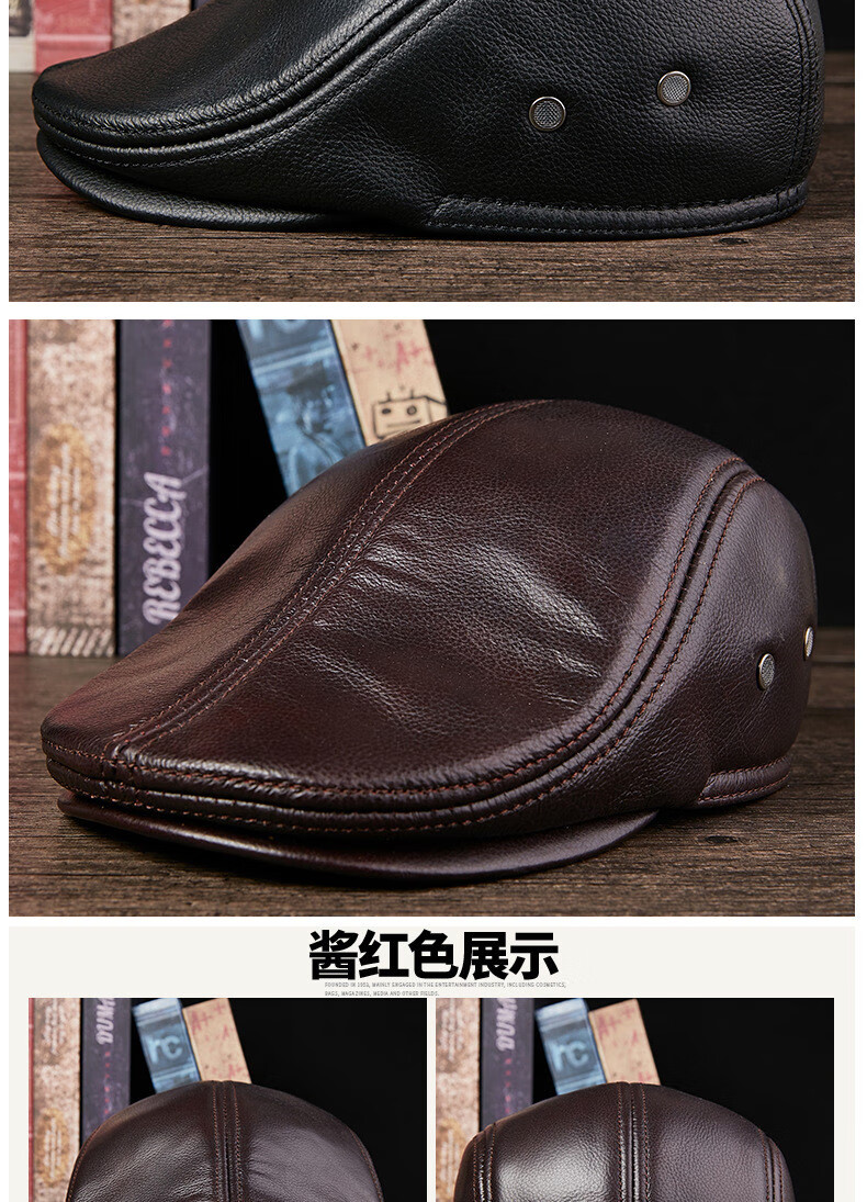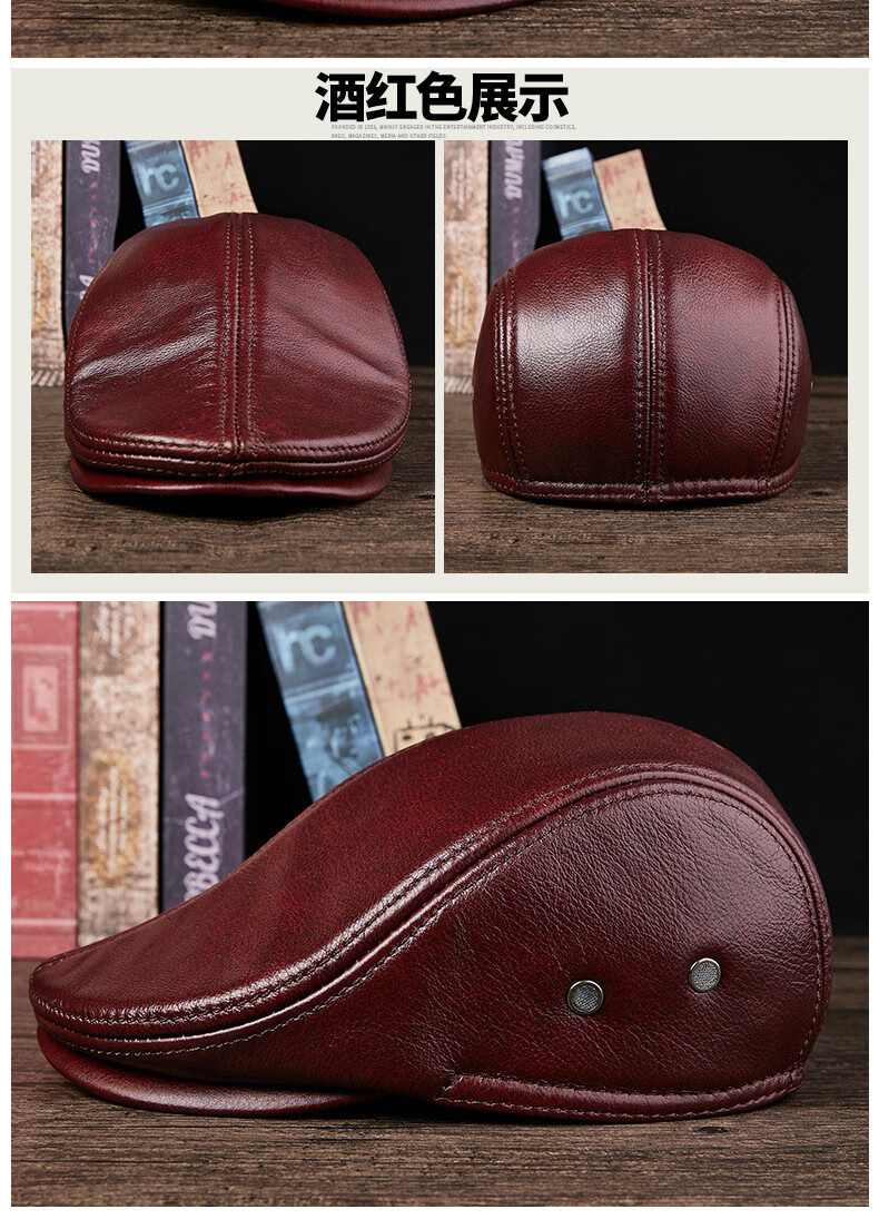 JEEP SPIRIT中老年人秋冬季真皮鸭舌帽子男时尚保暖前进牛皮帽加厚贝雷帽 酱红色头层牛皮 M 头层牛皮XL【57-58c】