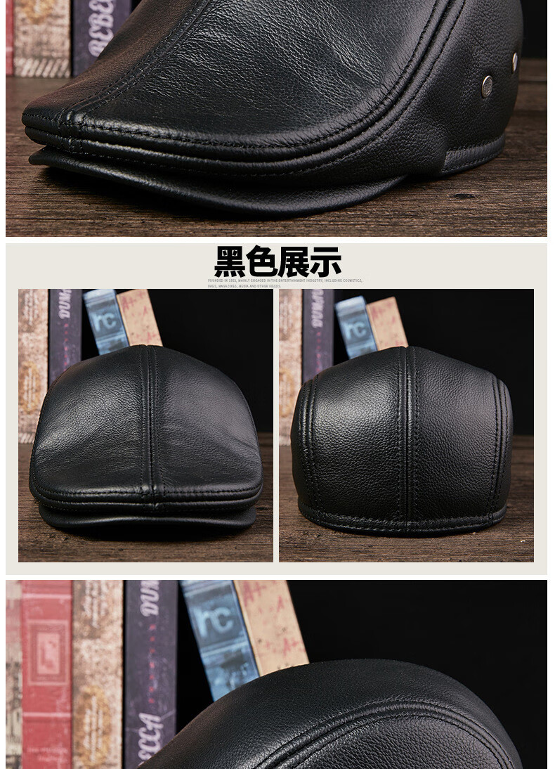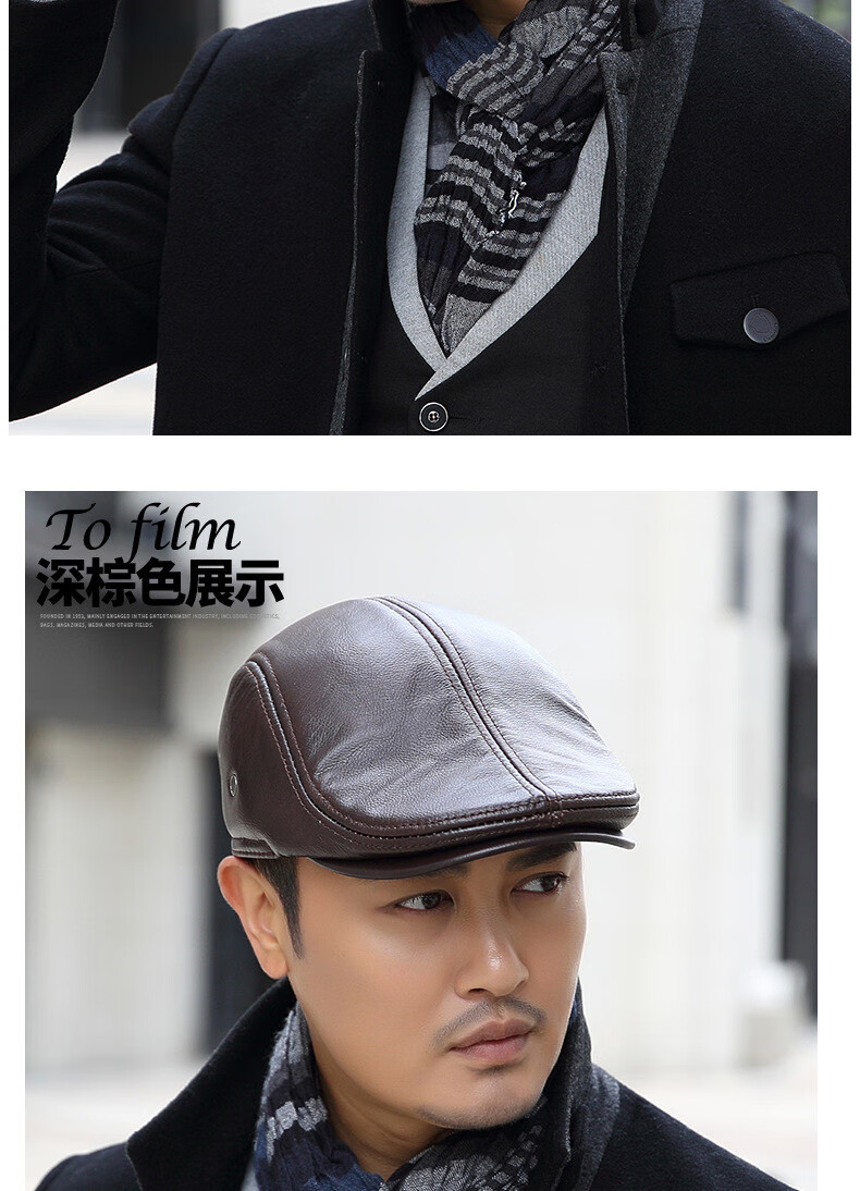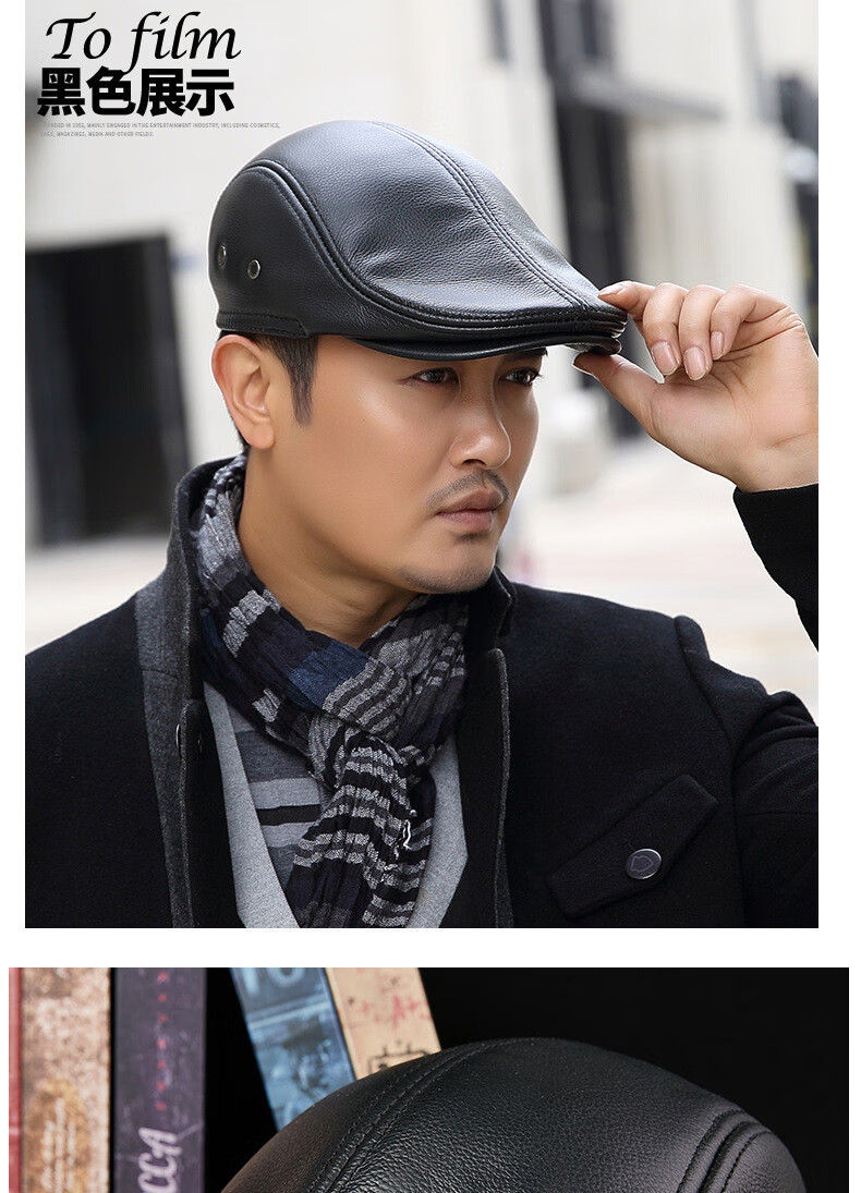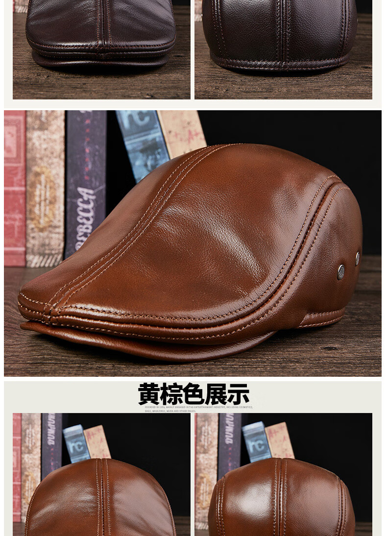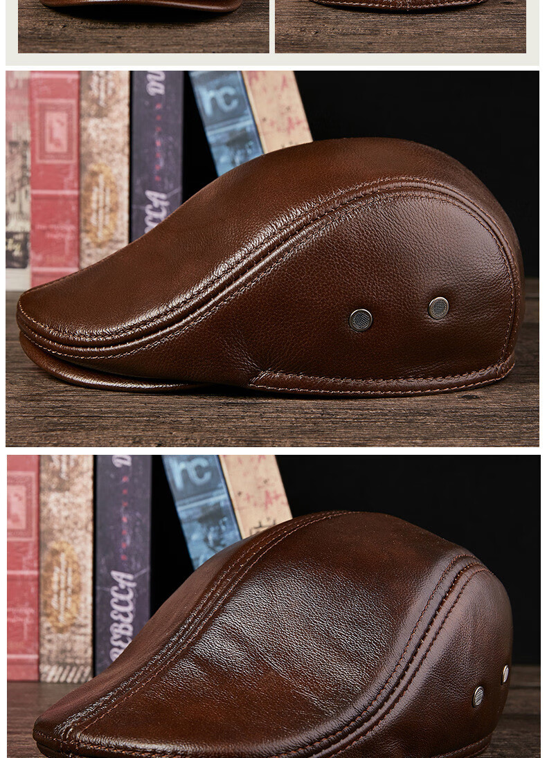 JEEP SPIRIT中老年人秋冬季真皮鸭舌帽子男时尚保暖前进牛皮帽加厚贝雷帽 酱红色头层牛皮 M 头层牛皮XL【57-58c】