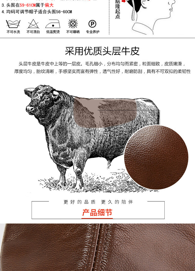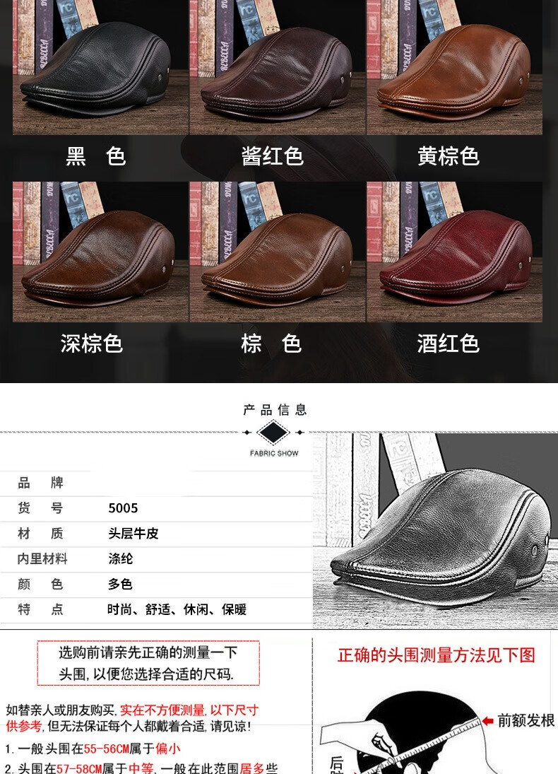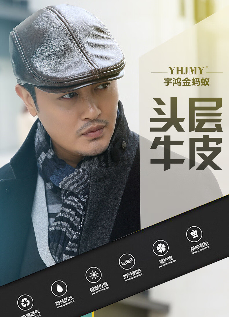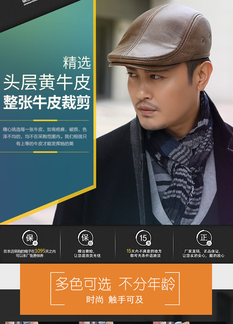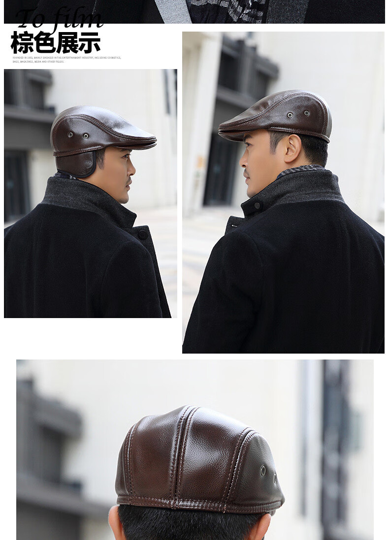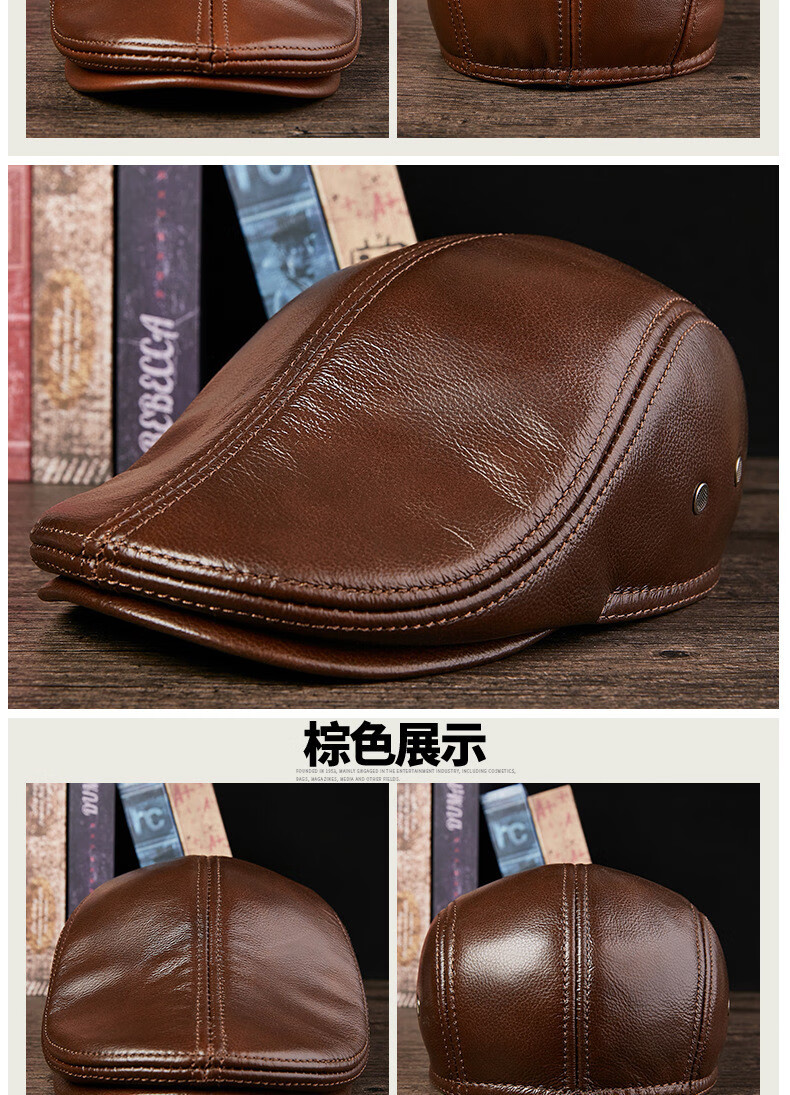 JEEP SPIRIT中老年人秋冬季真皮鸭舌帽子男时尚保暖前进牛皮帽加厚贝雷帽 酱红色头层牛皮 M 头层牛皮XL【57-58c】