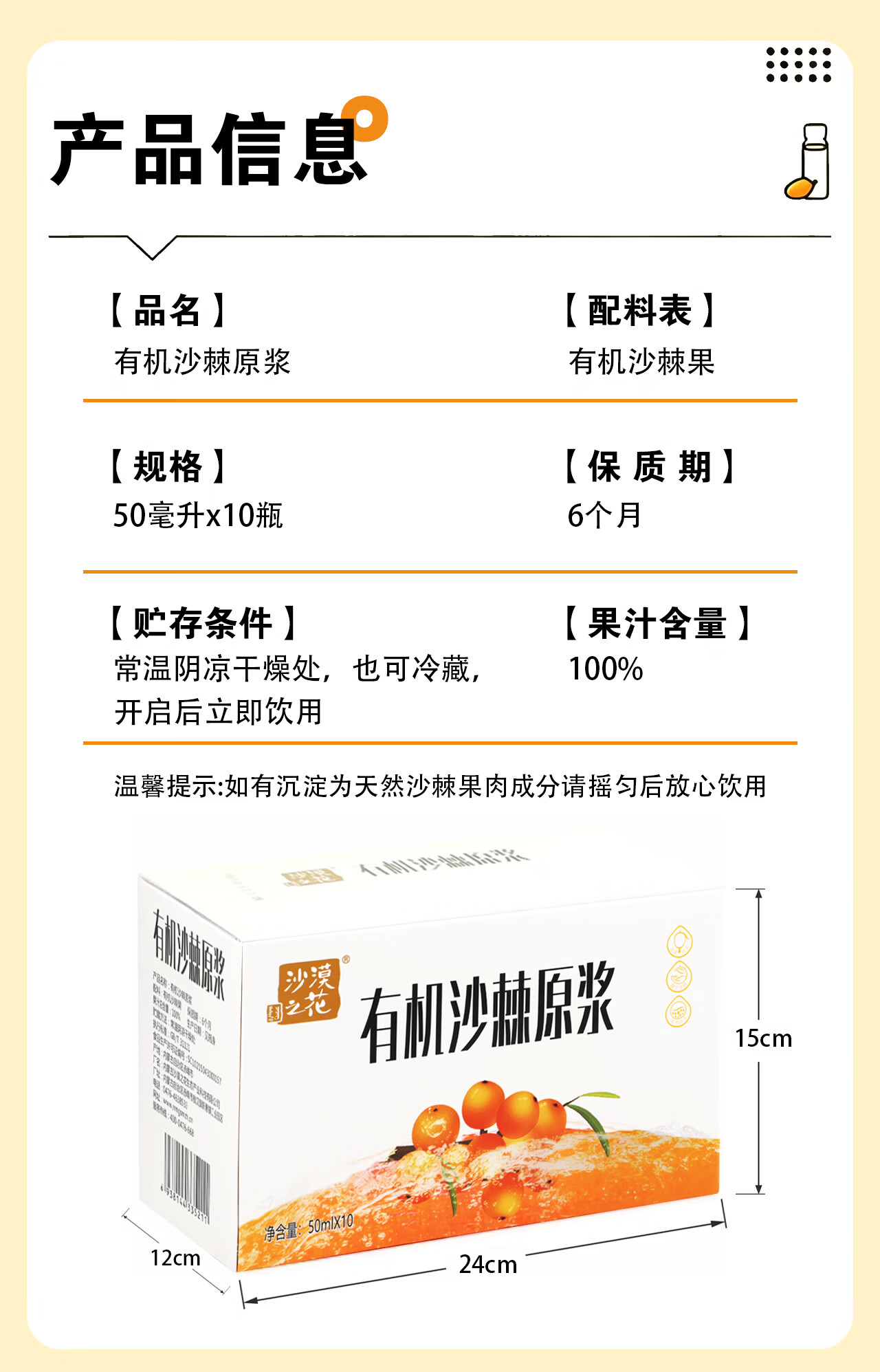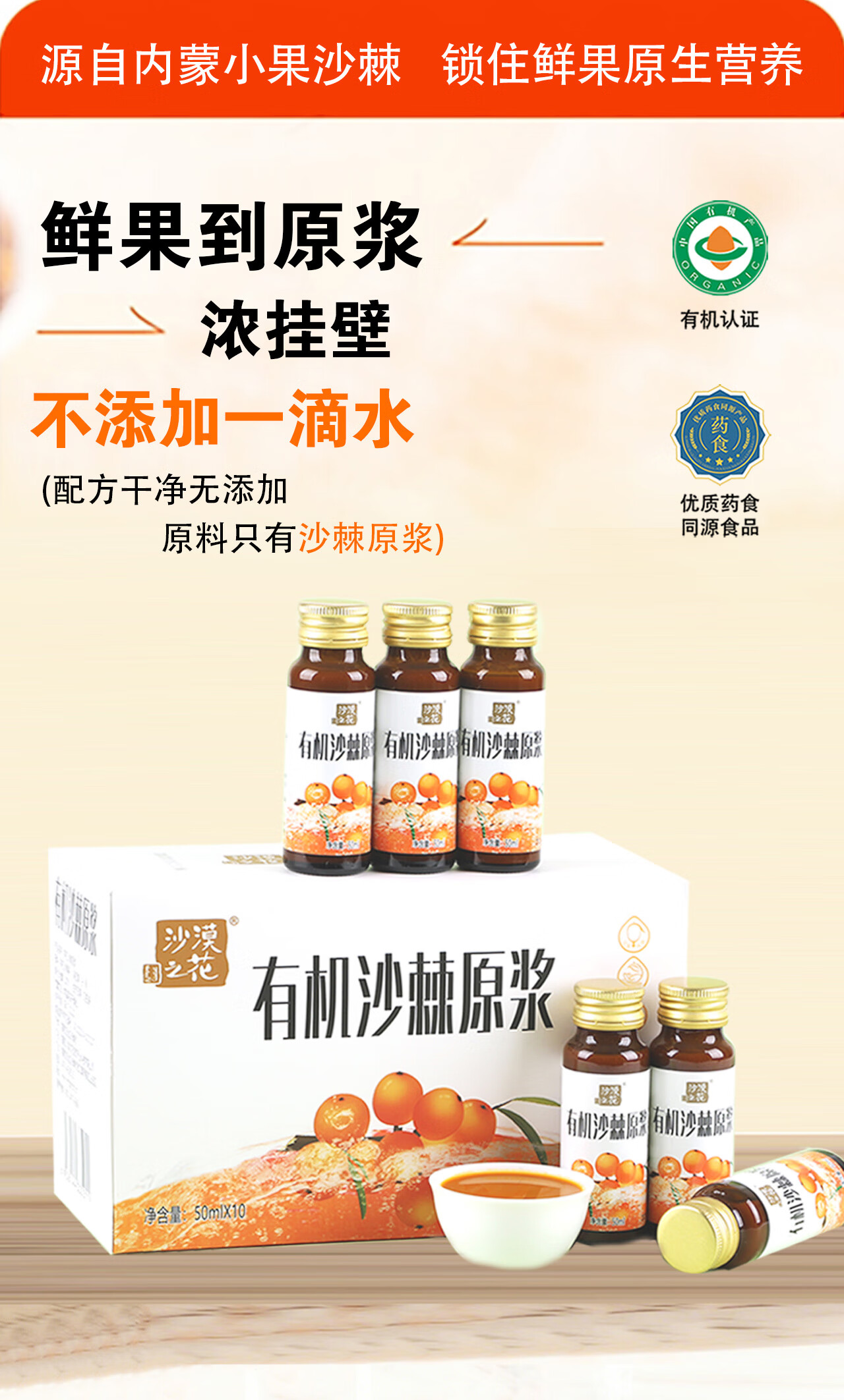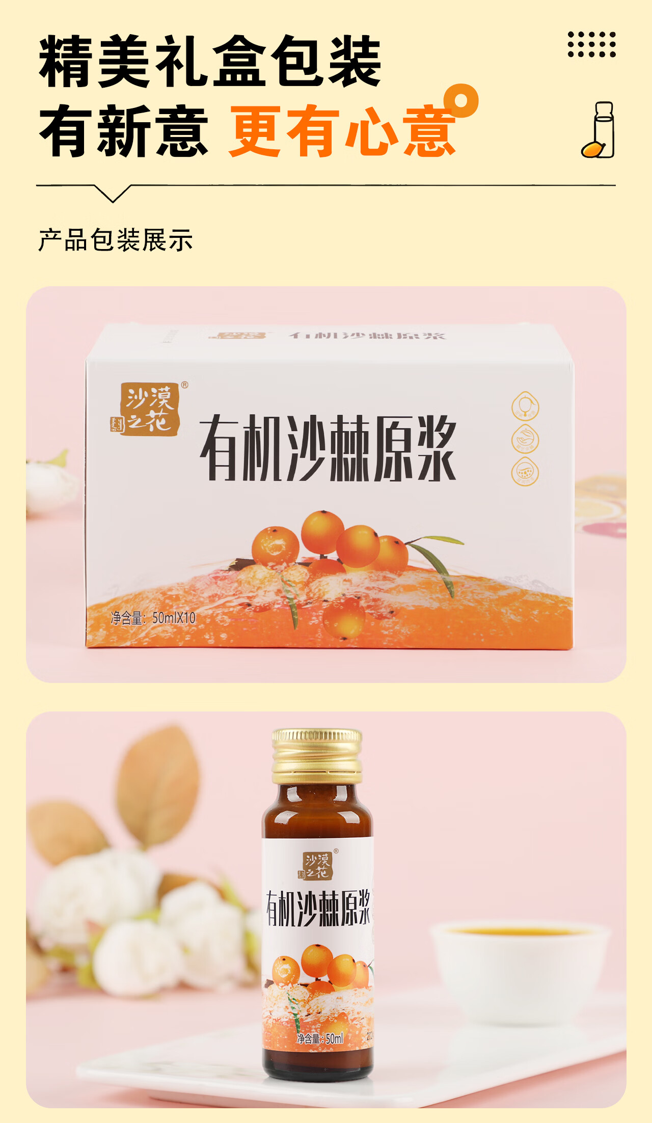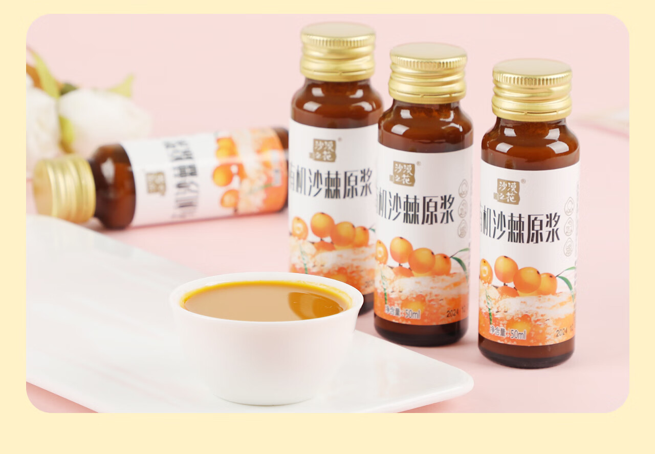 沙漠之花 有机沙棘原浆100%果汁内蒙小果含油不加糖无添加过年礼品礼盒装 10瓶*2盒