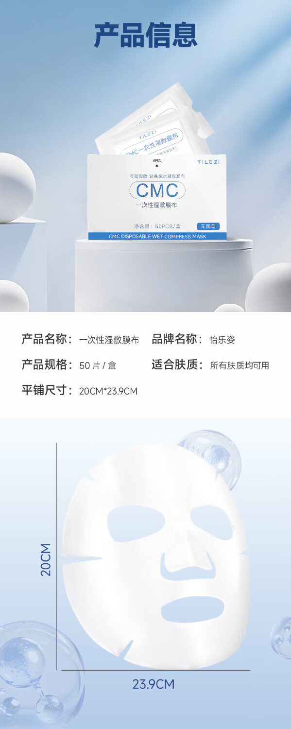 怡乐姿CMC一次性湿敷面膜50片/盒 亲水凝胶膜布超薄院线水疗湿敷面膜纸 3盒(150片)