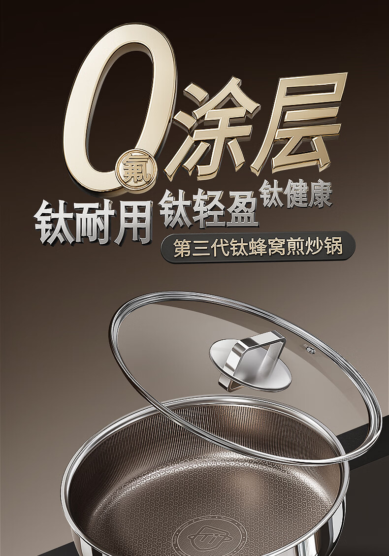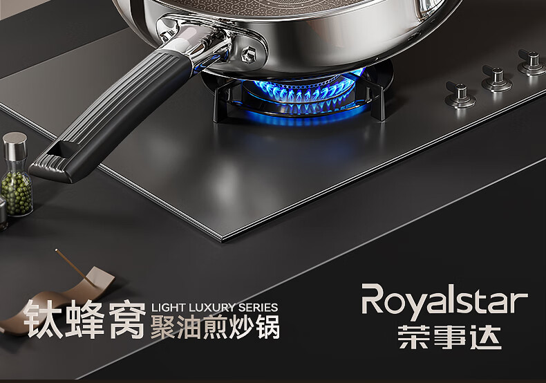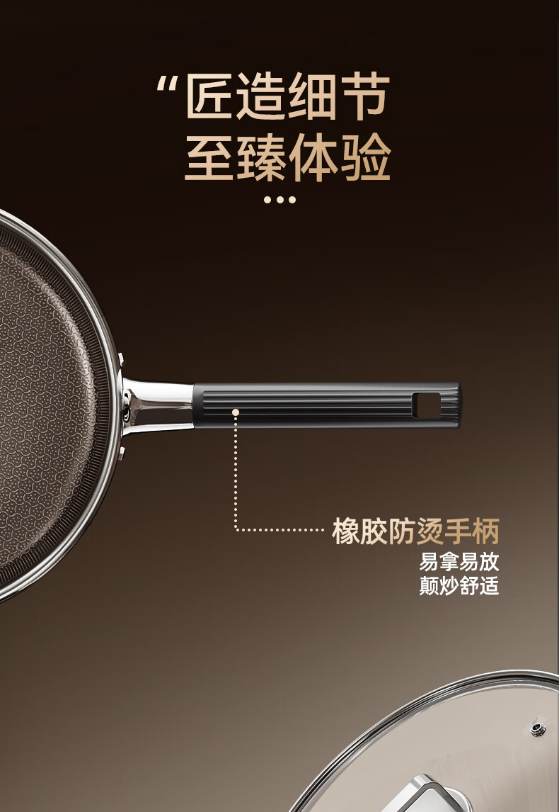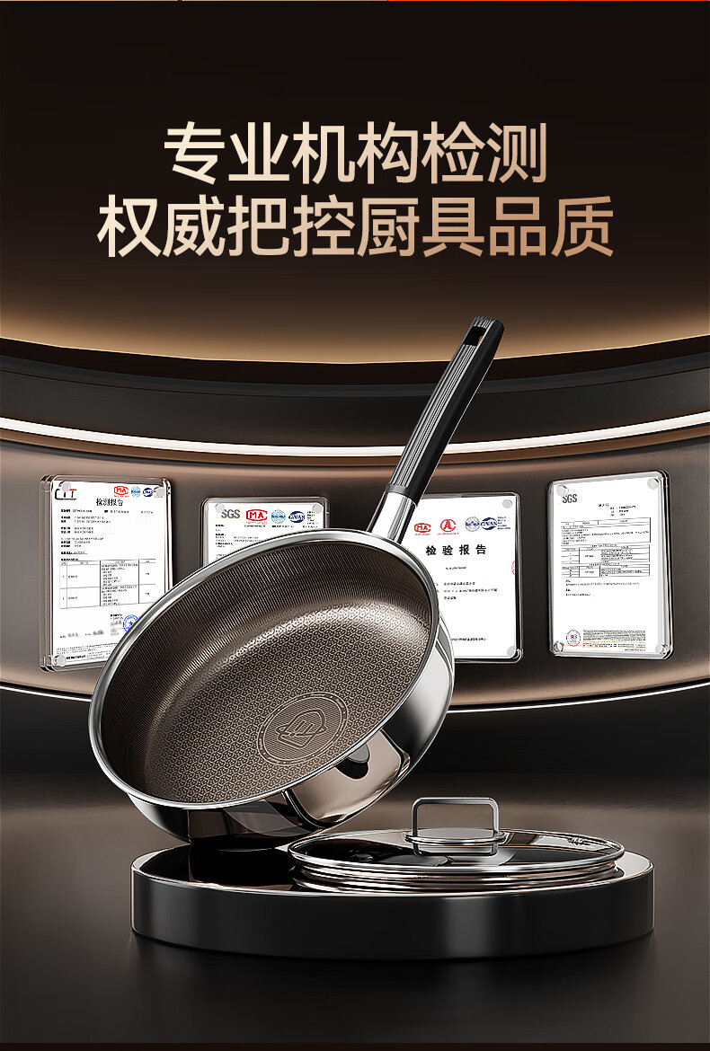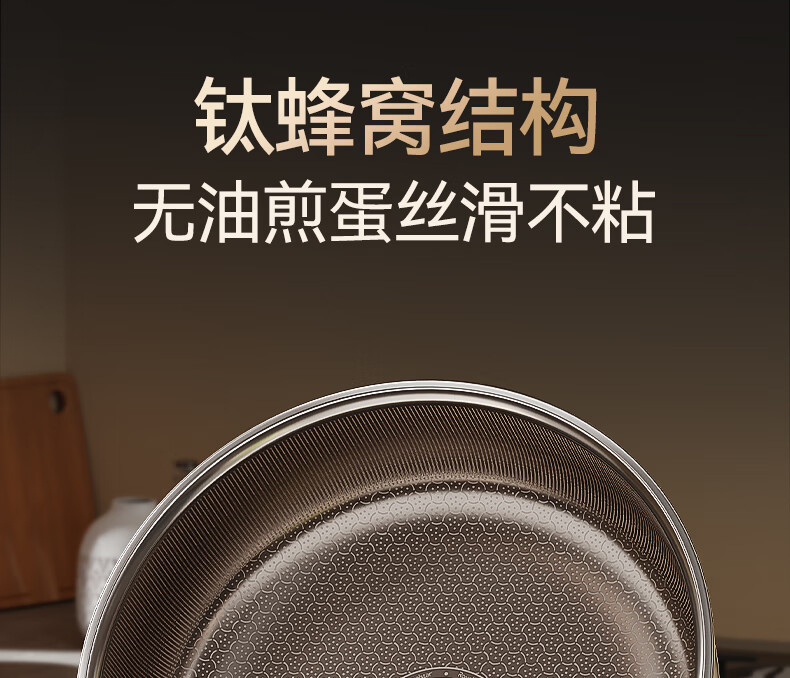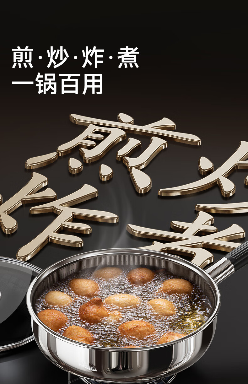 荣事达无涂层钛平底不粘锅家用不锈钢蜂窝电磁炉煤气灶炒菜深煎锅 【带盖】持久不粘 聚油不凸底 2-5人适用 28cm