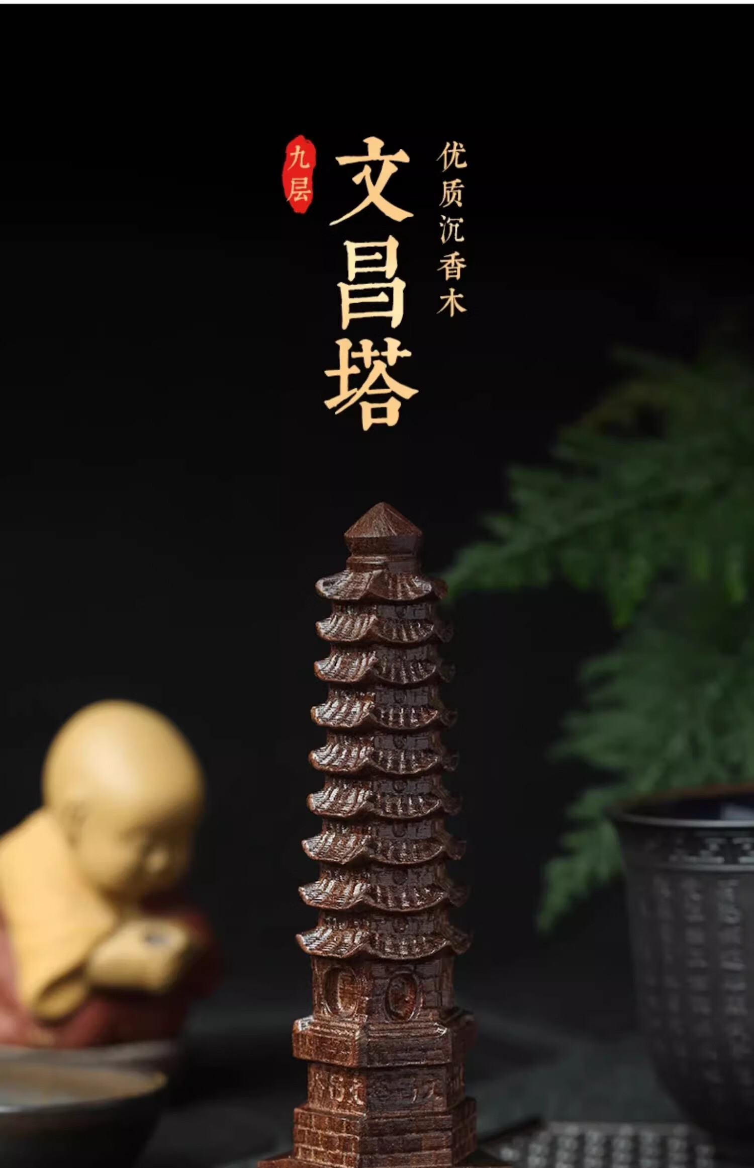 普陀山木制文昌塔九层塔摆件上岸办公室书桌学业顺利 文昌塔摆件