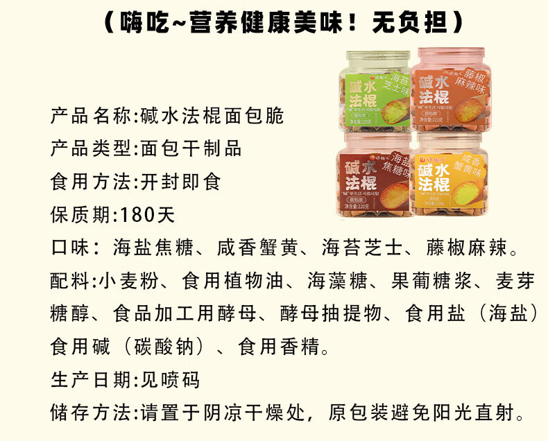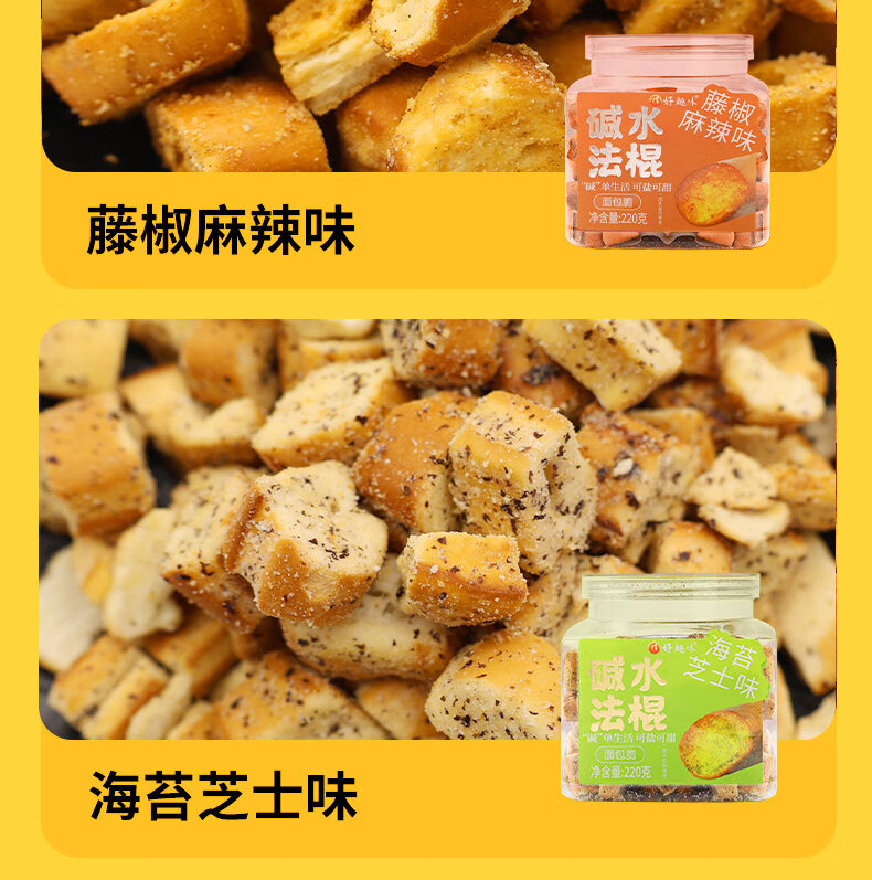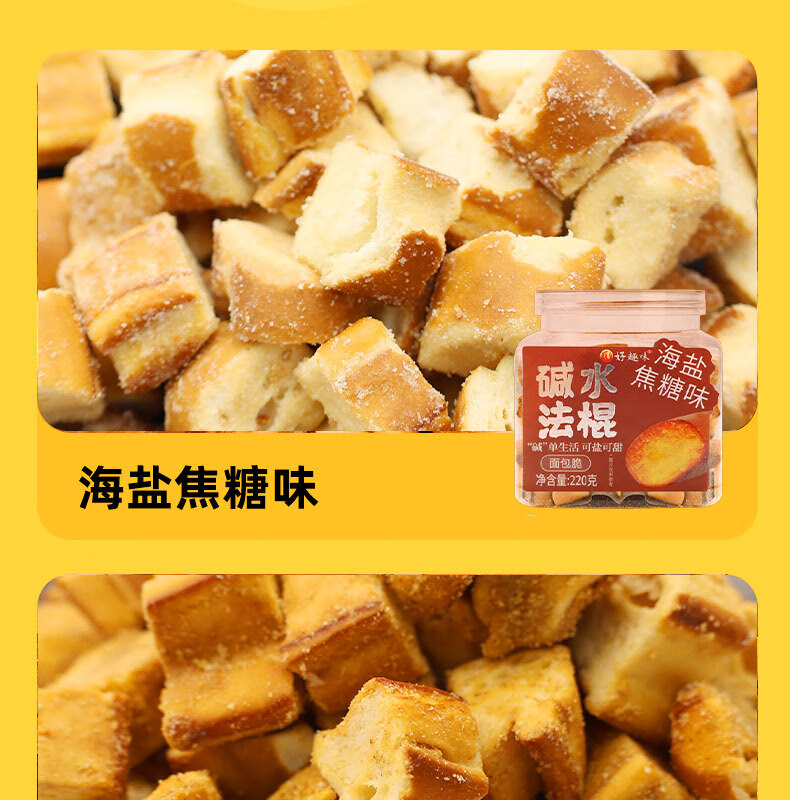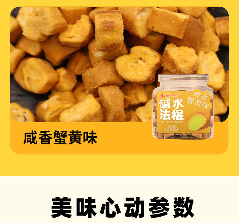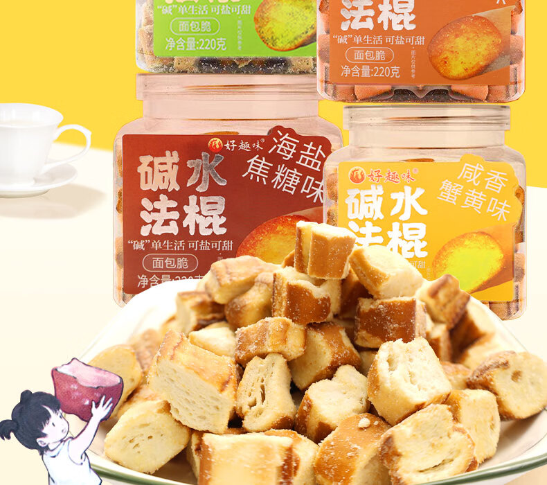 好趣味碱水法棍面包丁220g/罐装香酥脆面包干解馋零食下午茶点休闲小吃 咸香蟹黄味*1罐