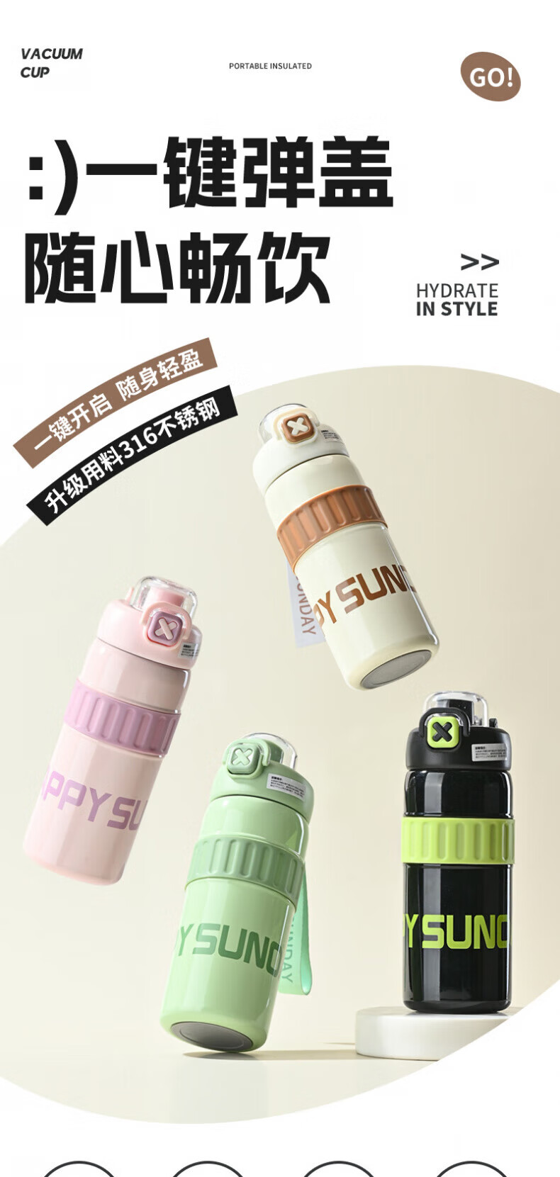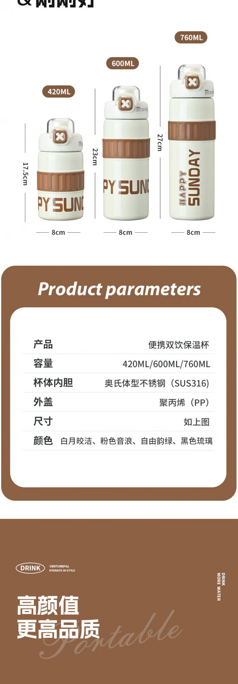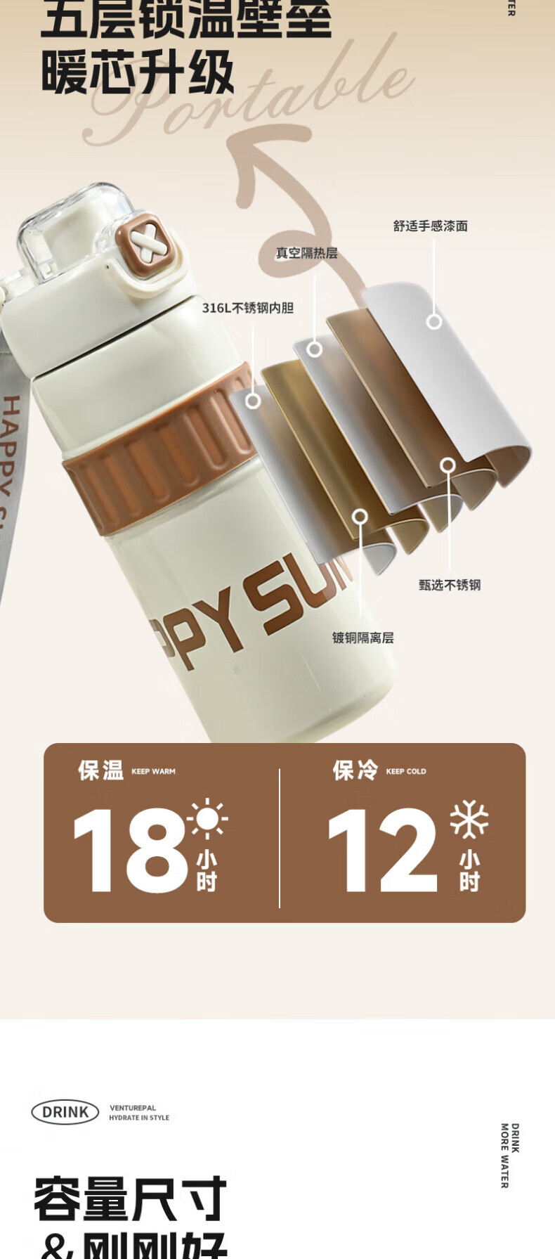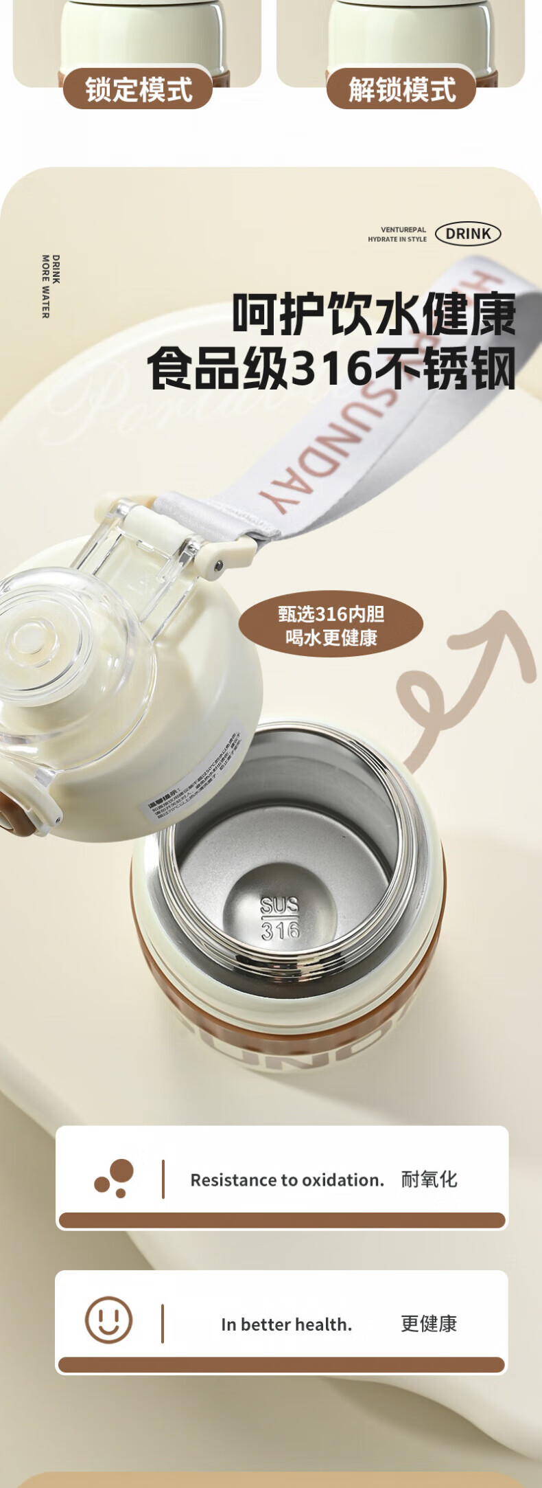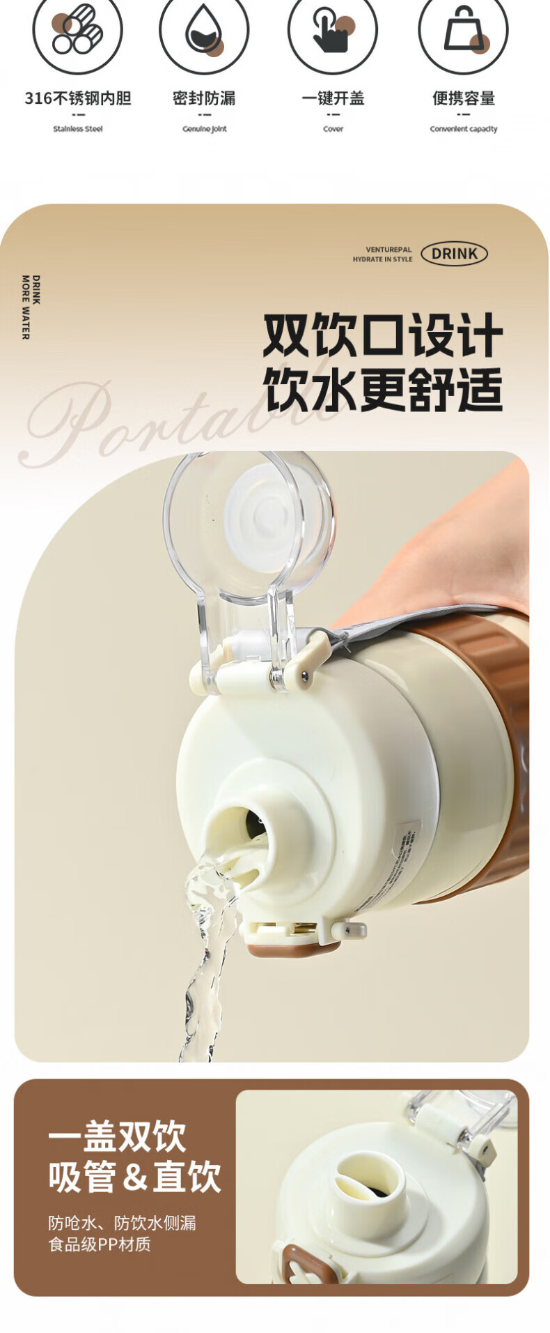 WFFPM德国品牌316不锈钢保温杯高颜值大容量运动杯便携防摔学生水杯 白色760ML 27*8cm