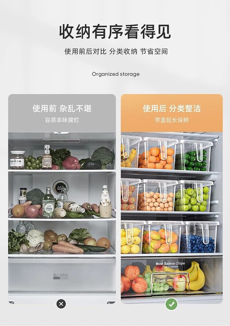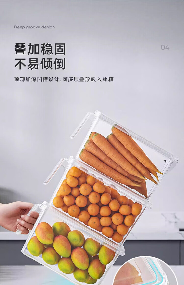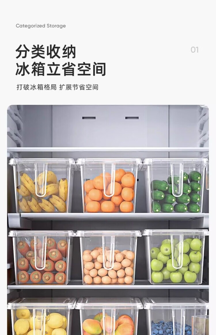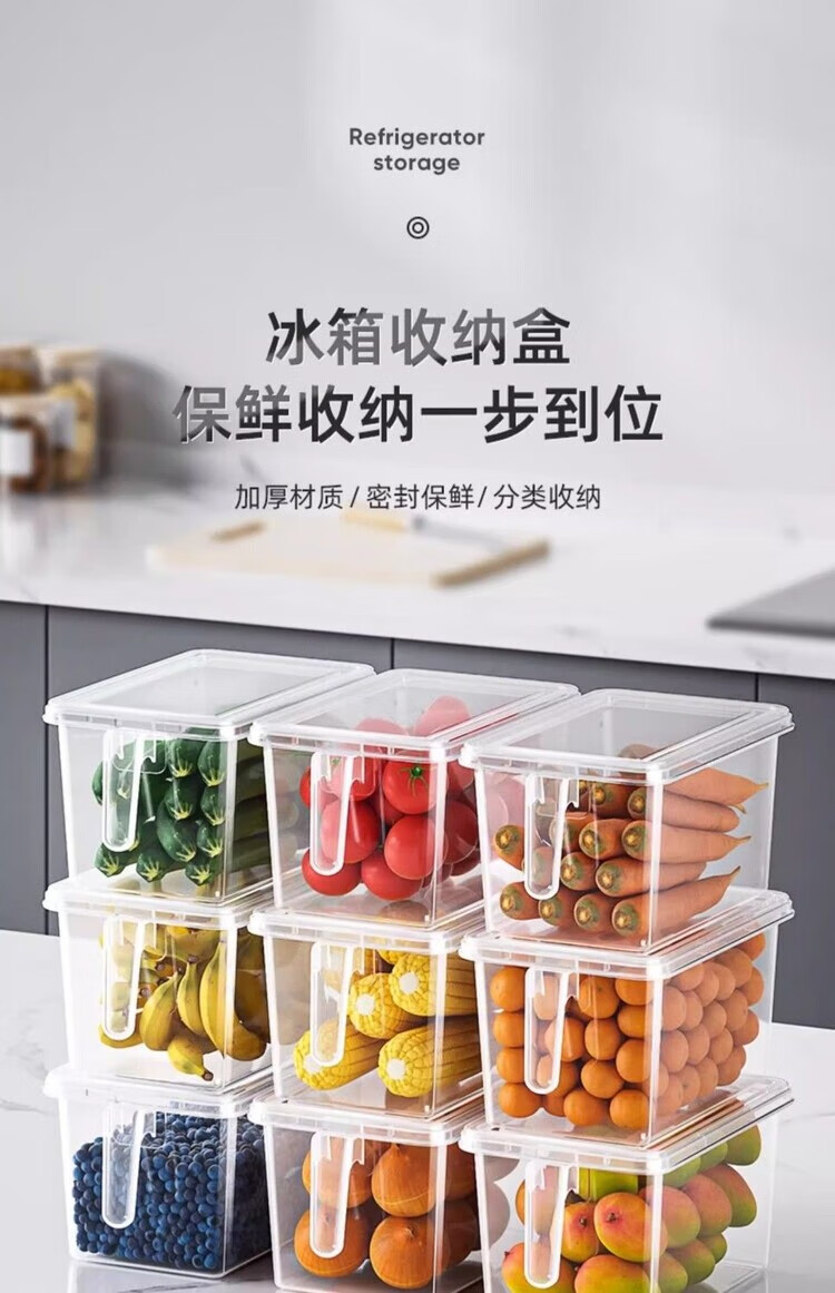 LZJV冰箱收纳盒食品级保鲜盒厨房蔬菜饺子整理神器冷冻专用鸡蛋储物盒 大号4.8L透明带盖6个装