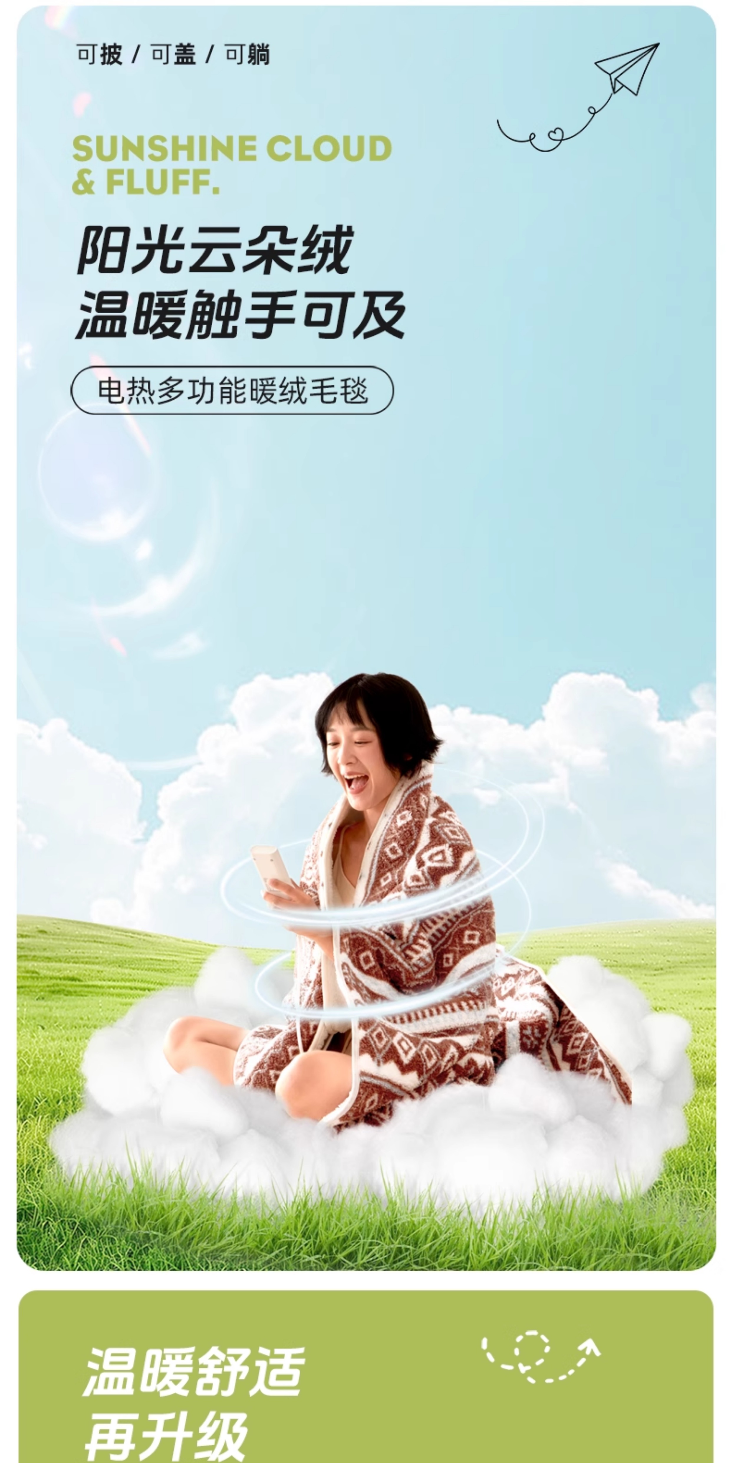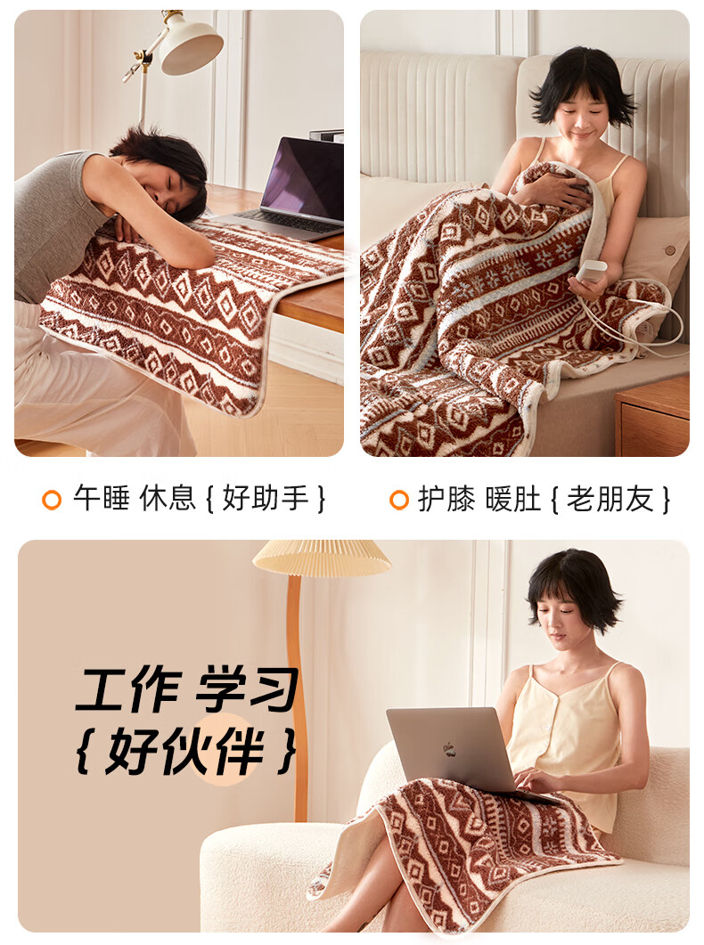 彩阳电热毯暖身毯子披肩毛毯单人电褥子办公披肩取暖器沙发加热坐垫 (9档控温)可水洗云朵绒盖毯150*80cm