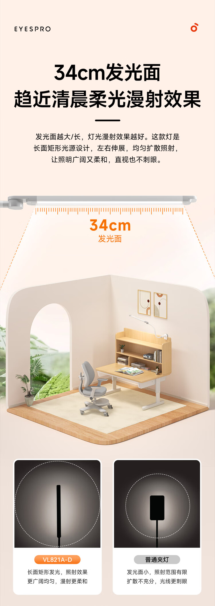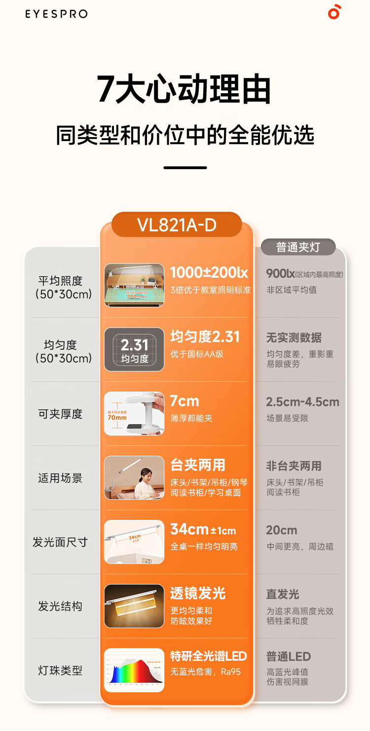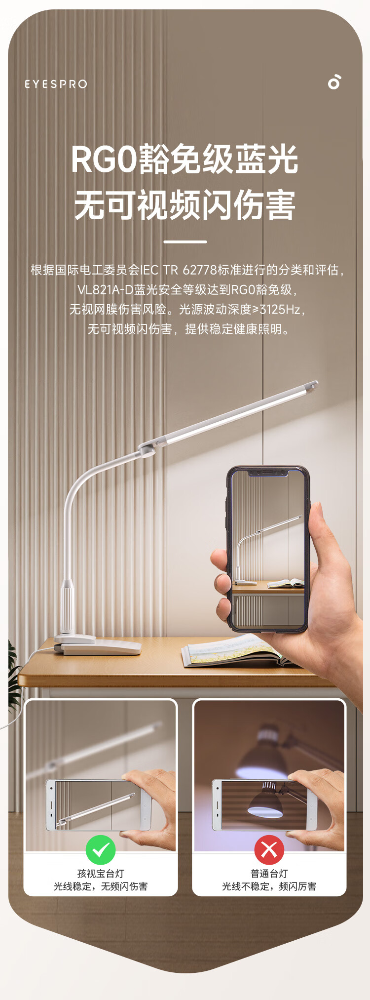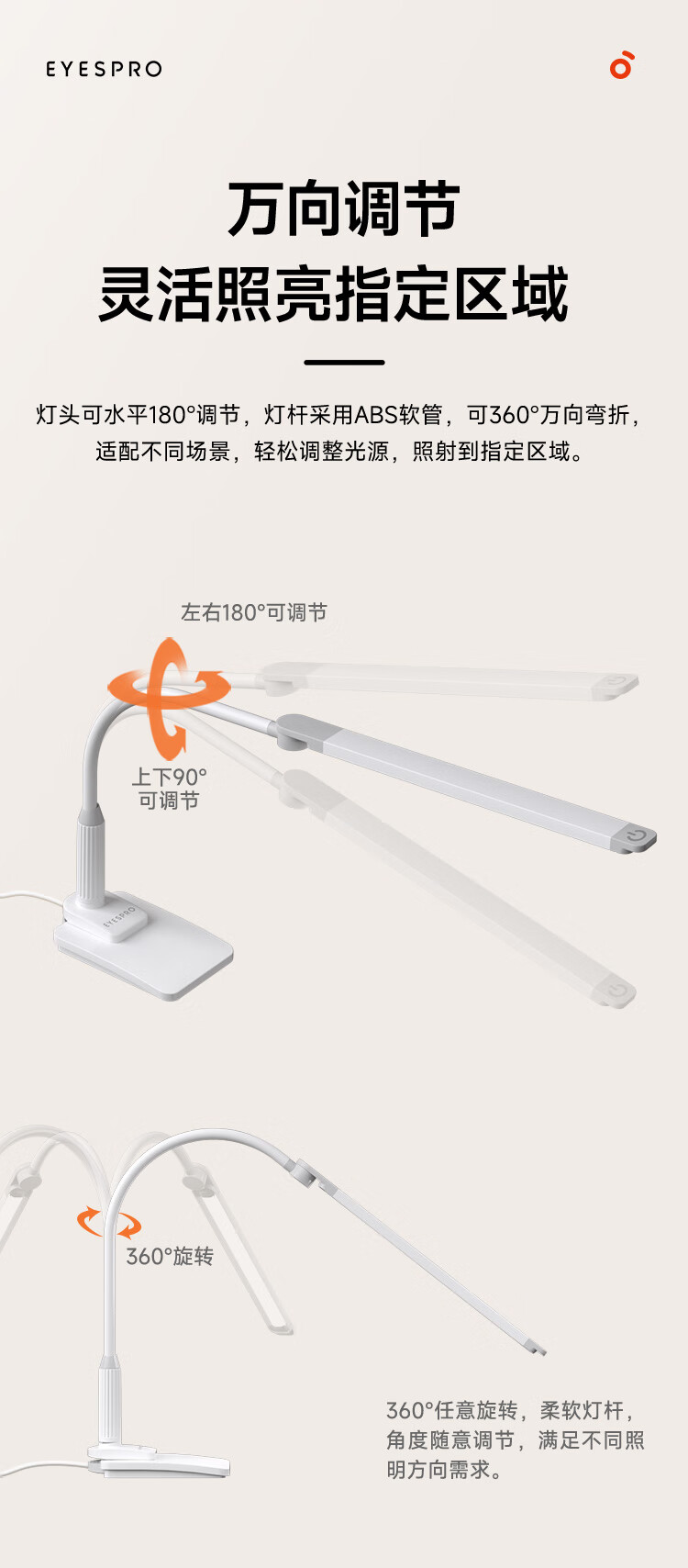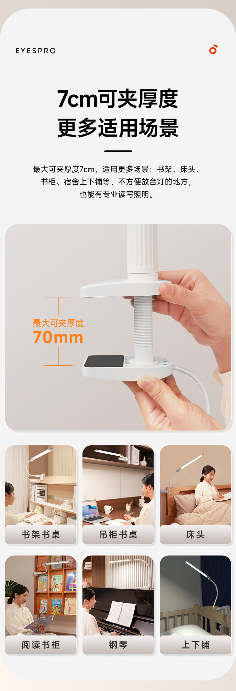 孩视宝夹式护眼台灯夹子灯床头阅读灯学生学习宿舍可调节多场景VL821A-D