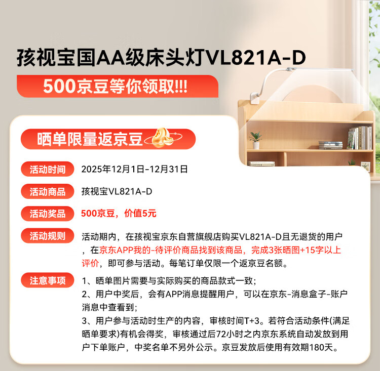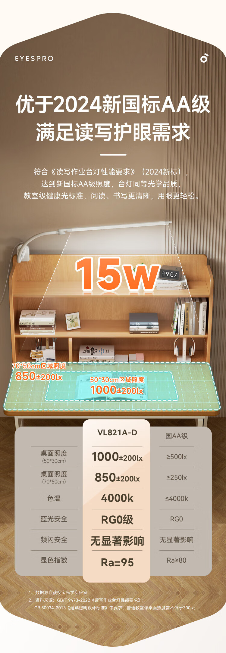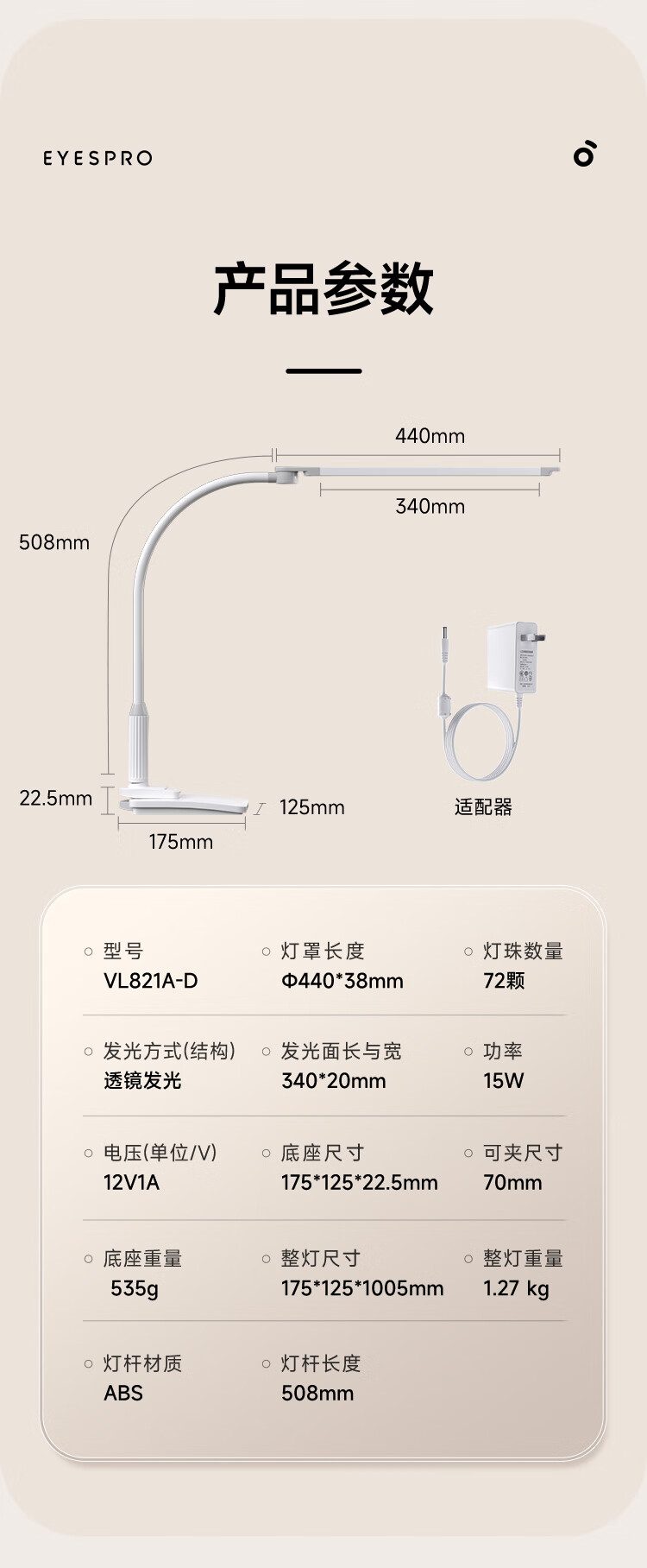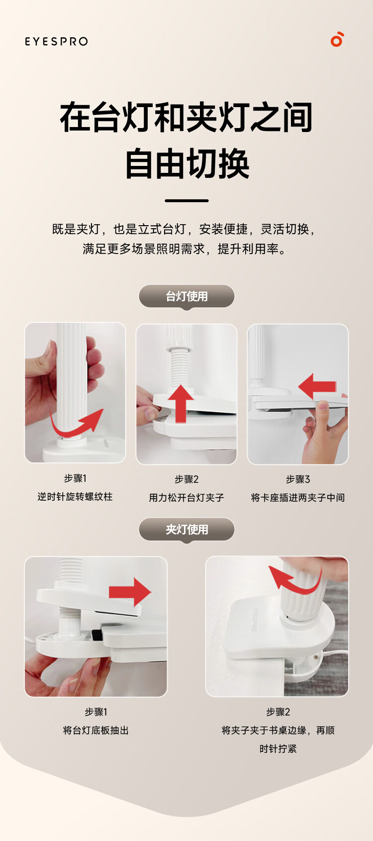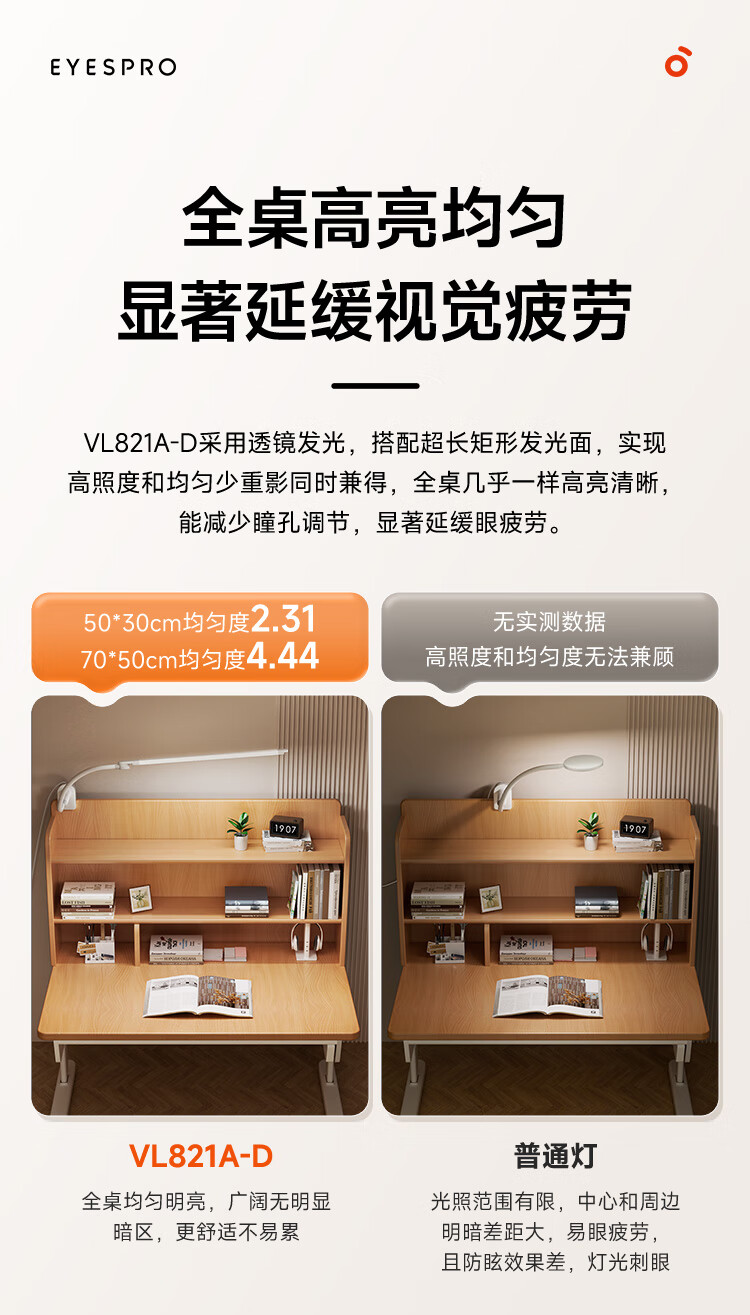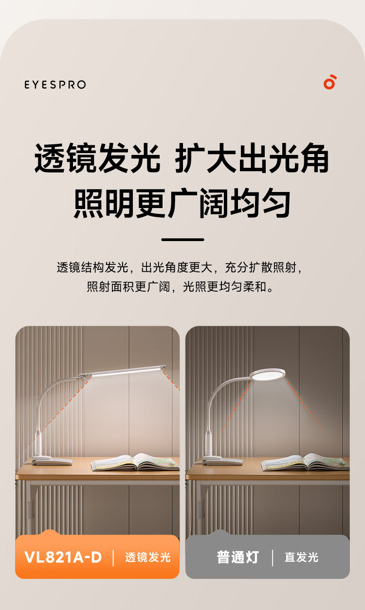 孩视宝夹式护眼台灯夹子灯床头阅读灯学生学习宿舍可调节多场景VL821A-D