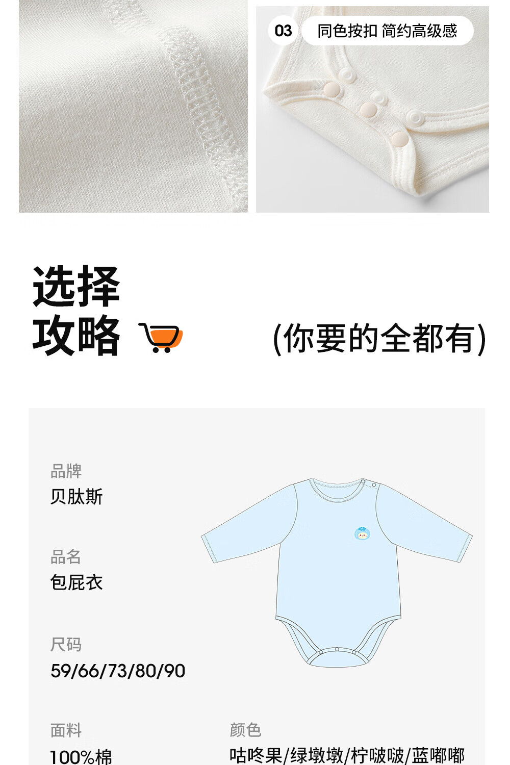 贝肽斯婴儿衣服冬季新款纯棉新生儿包屁衣保暖宝宝长袖连体衣哈衣 柠啵啵 -纯棉 80cm